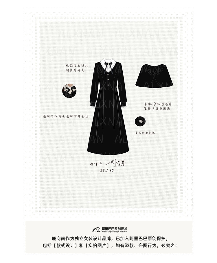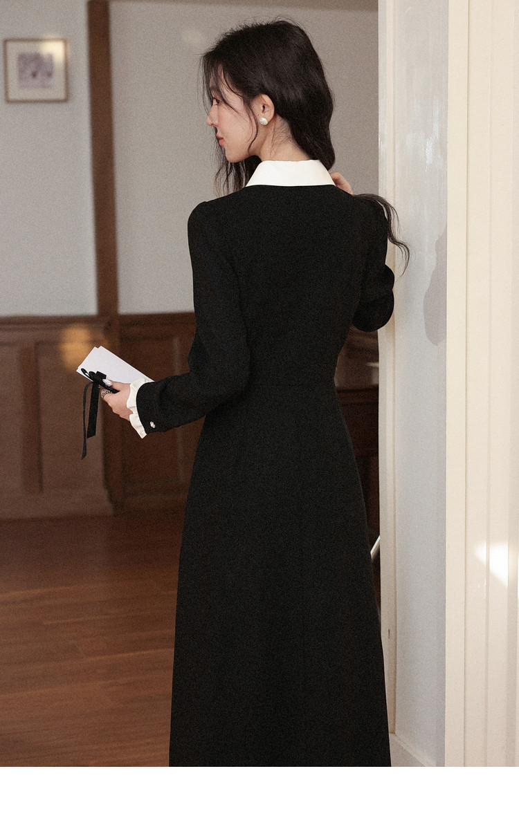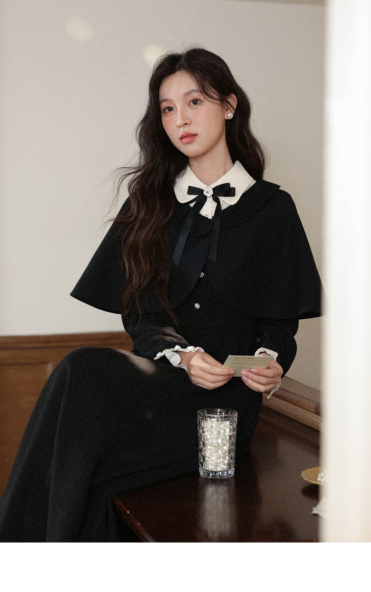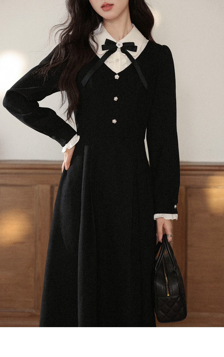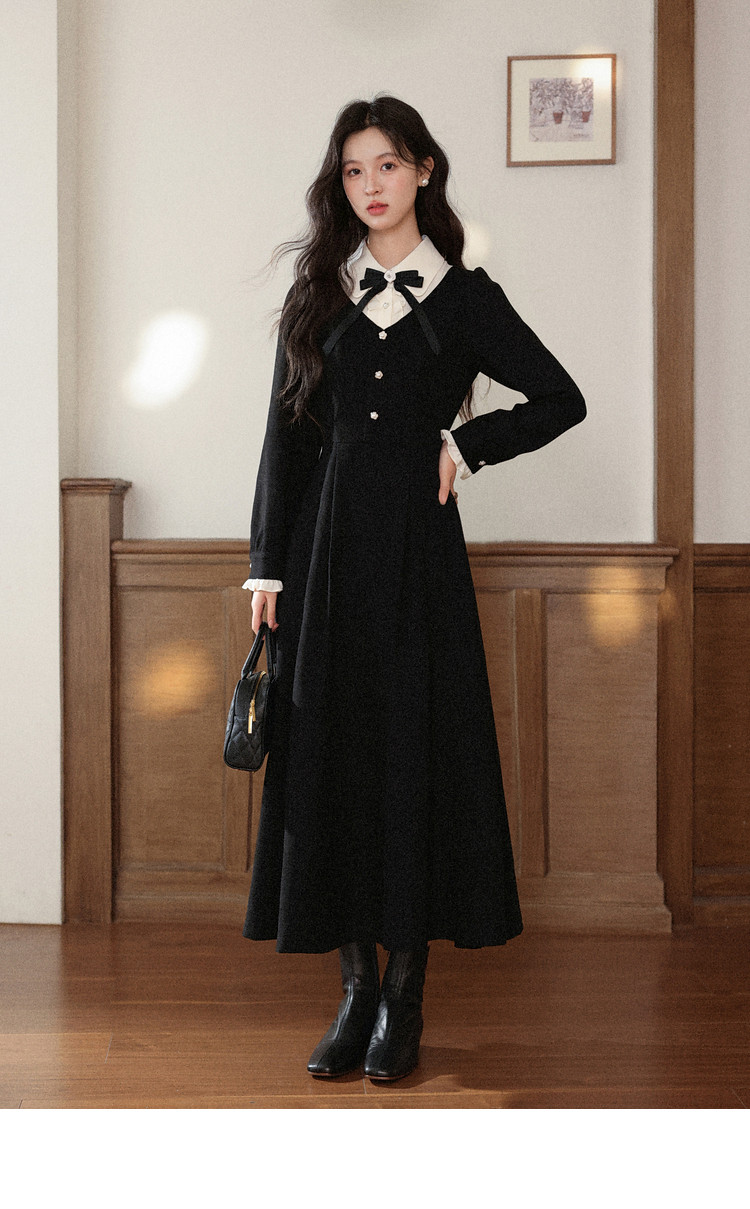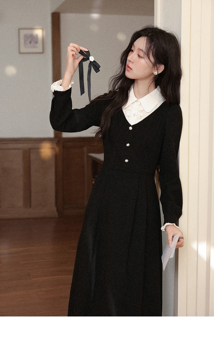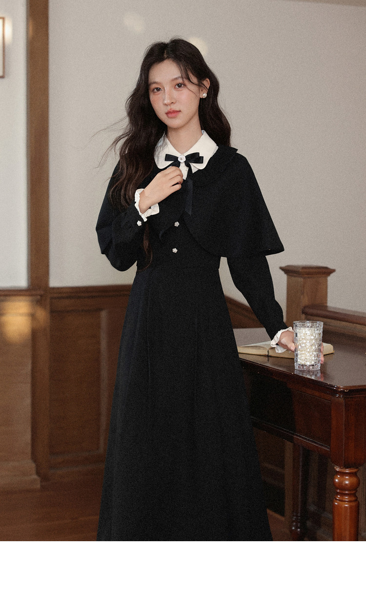 鹿向南「千金可露丽」黑色假两件连衣裙时尚套装秋季新款两件套女