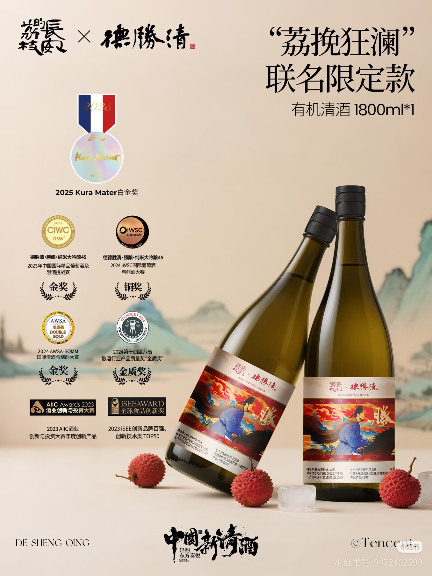 【德胜清】德胜清X长安荔枝联名礼盒 纯米大吟酿38有机清酒1800ml礼盒装