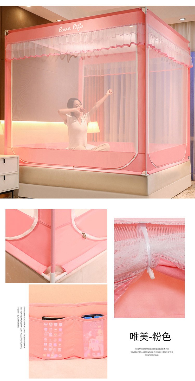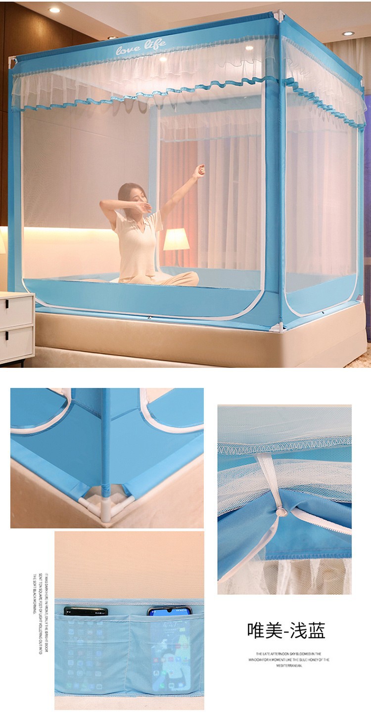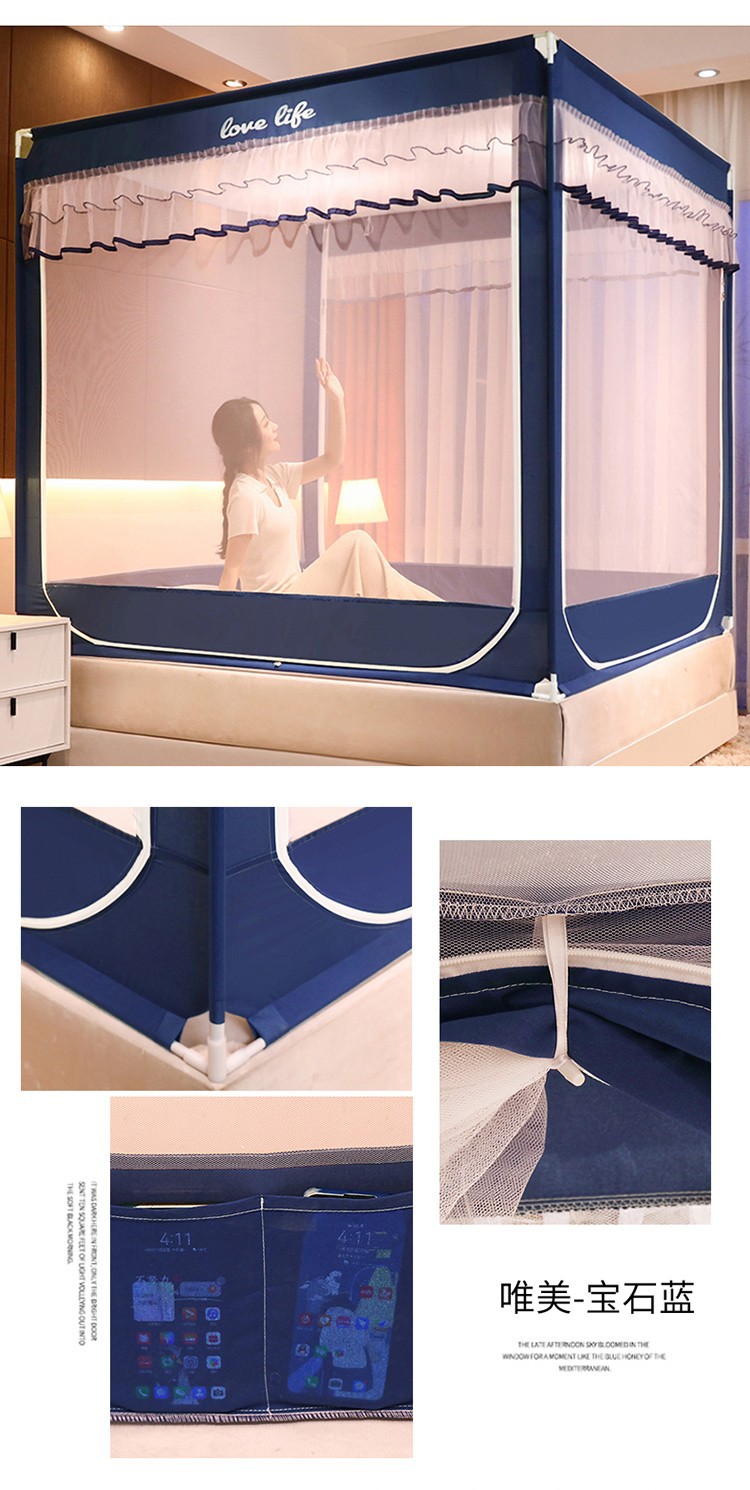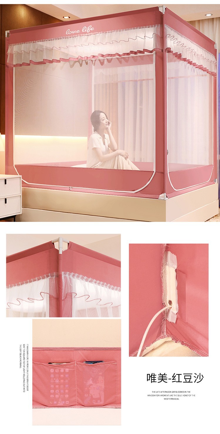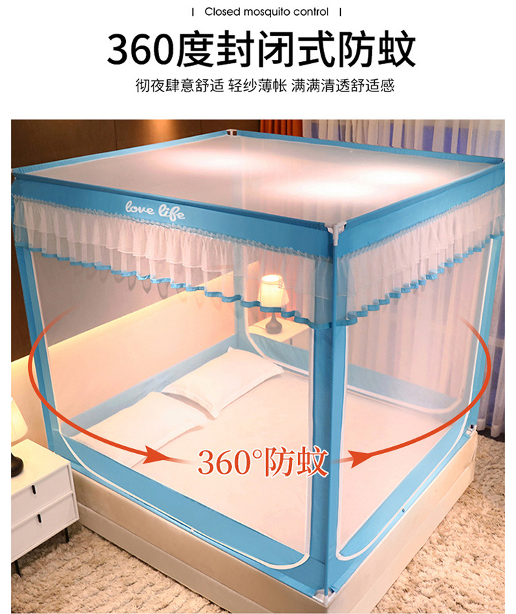 梦妮人夏季蚊帐三开门高端外穿杆坐床式蚊帐儿童防摔家用方形帐