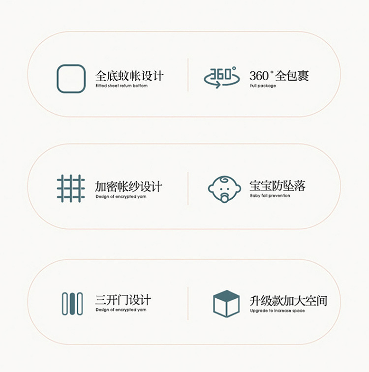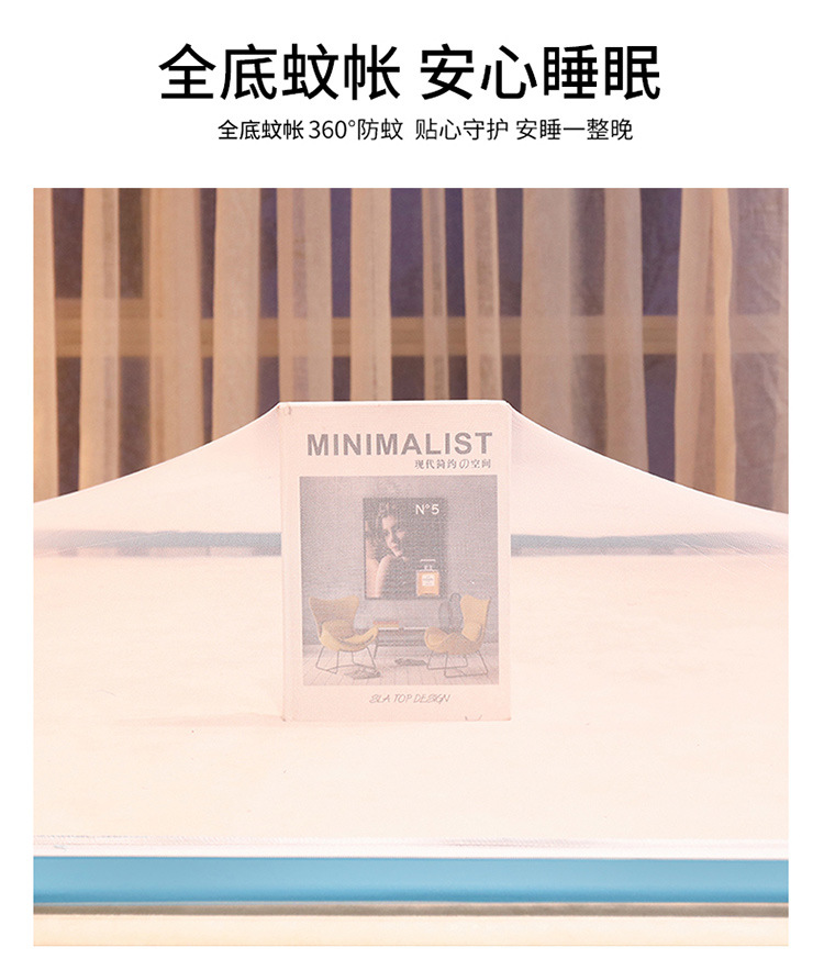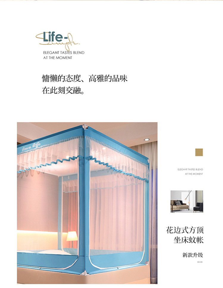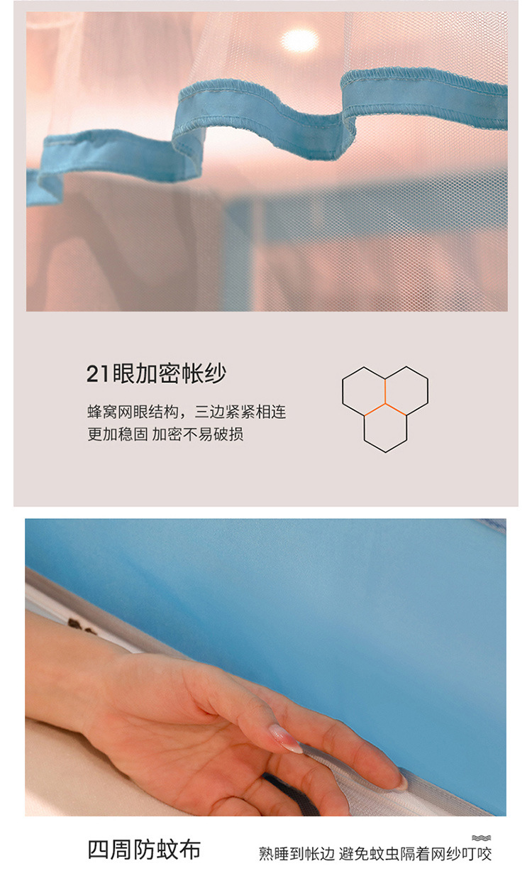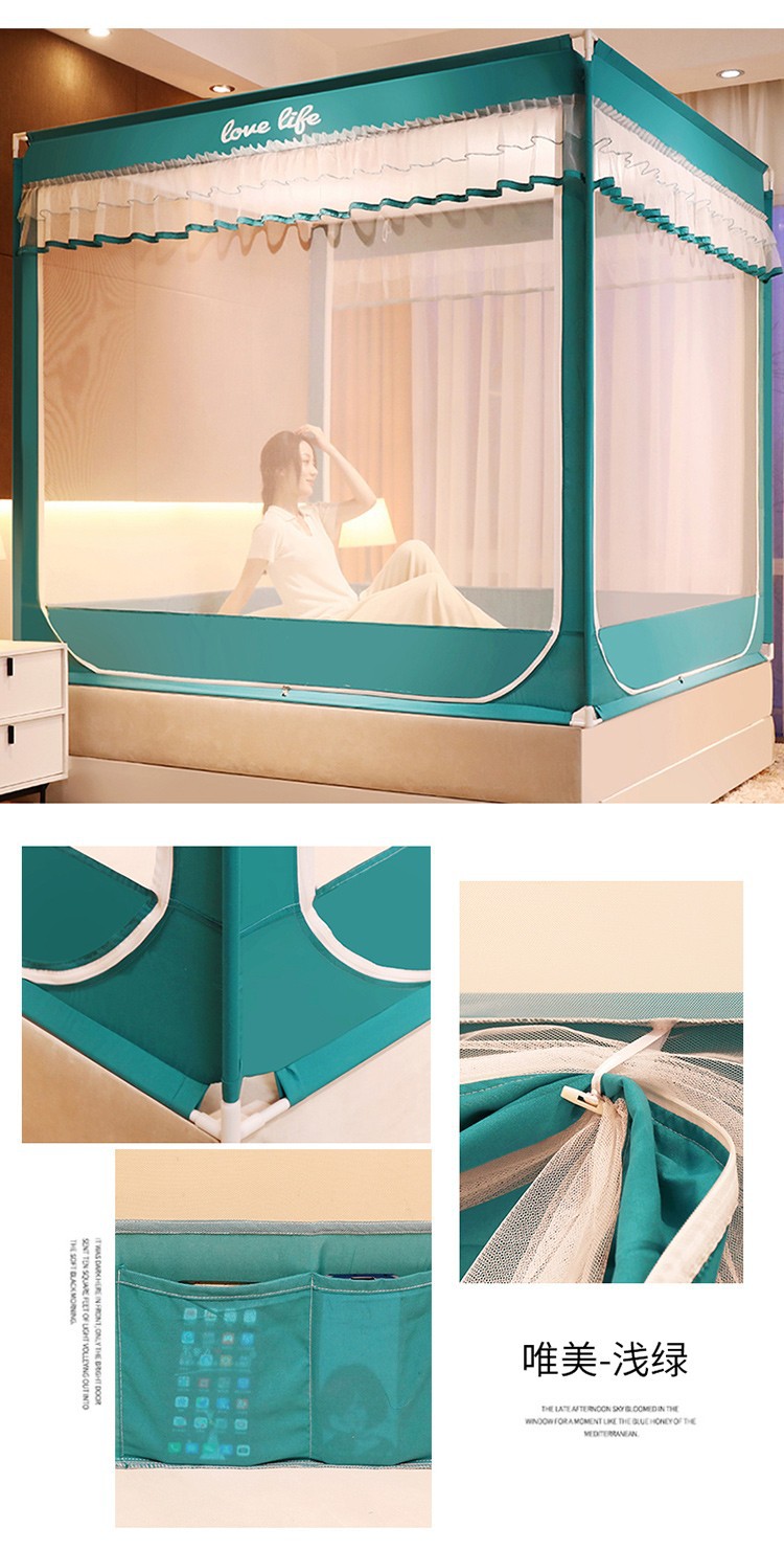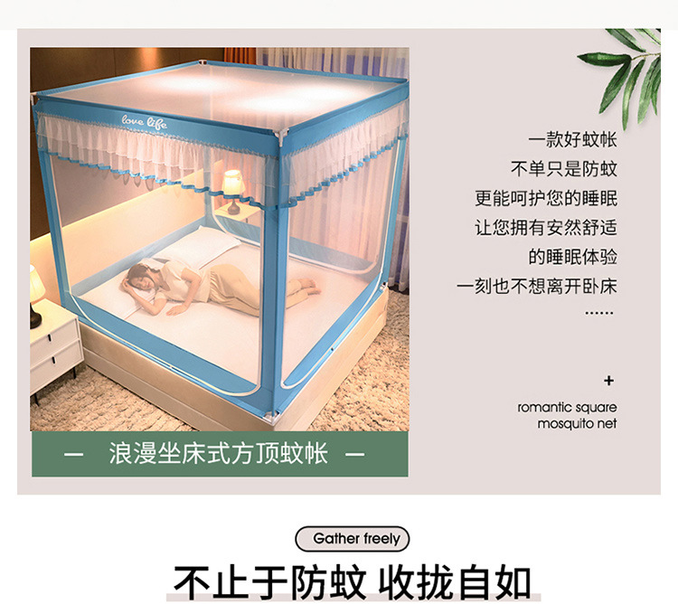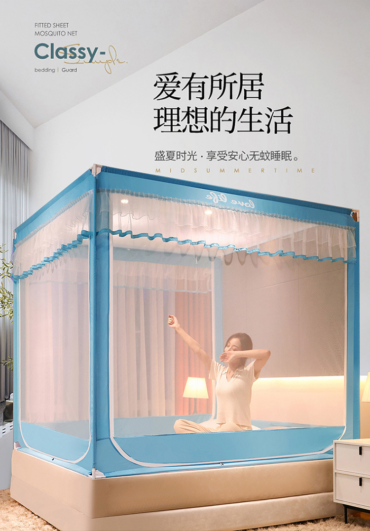 梦妮人夏季蚊帐三开门高端外穿杆坐床式蚊帐儿童防摔家用方形帐
