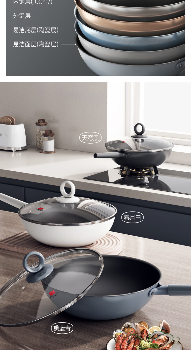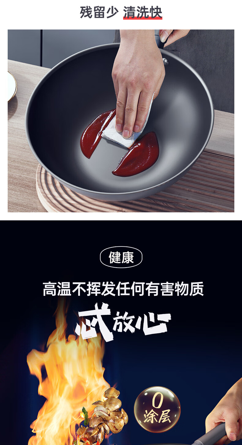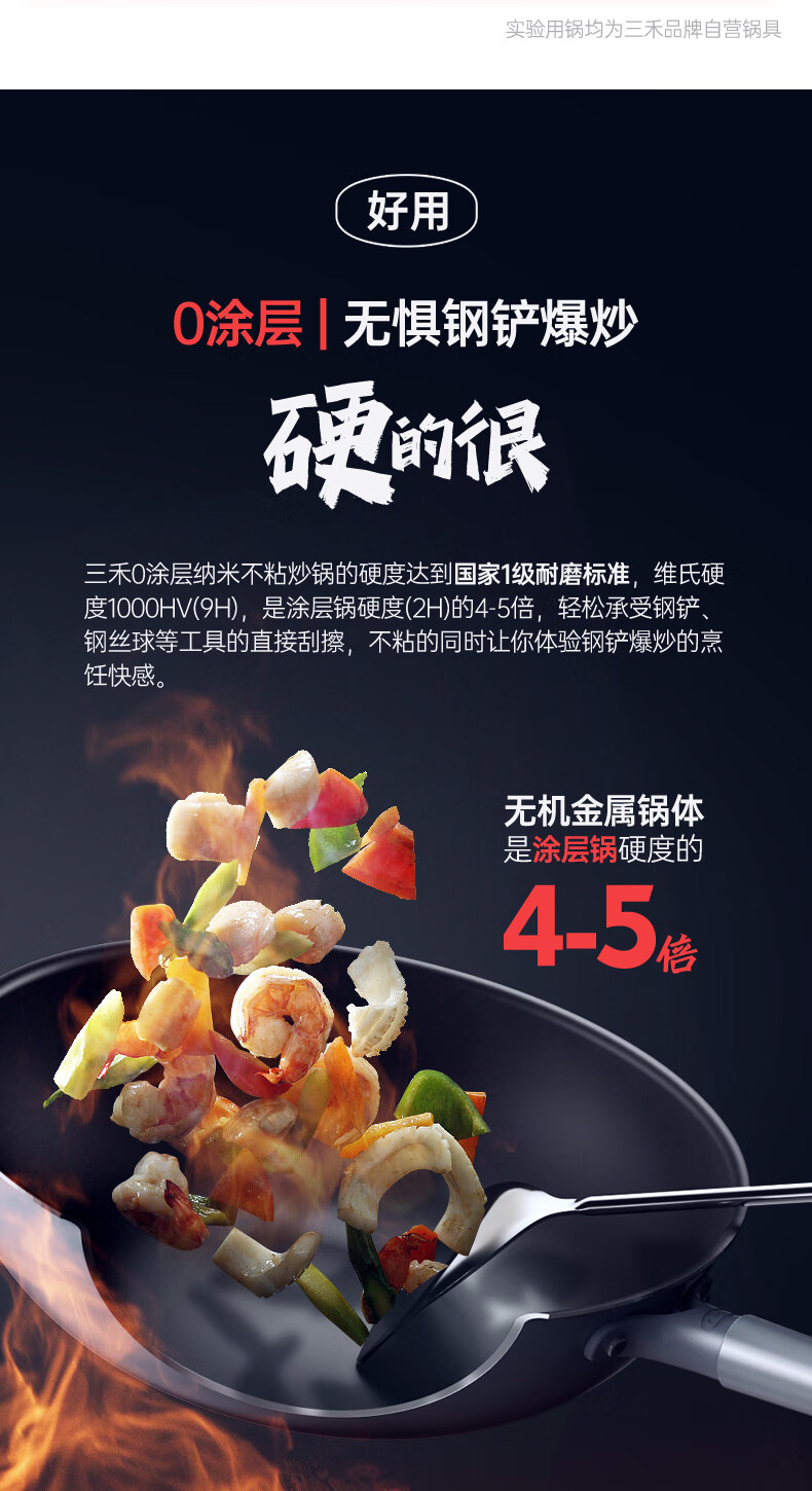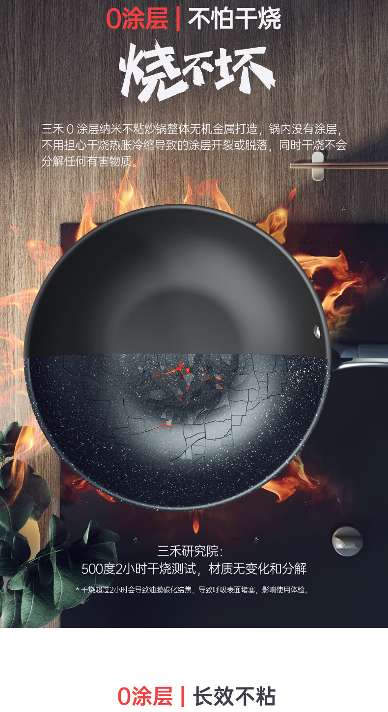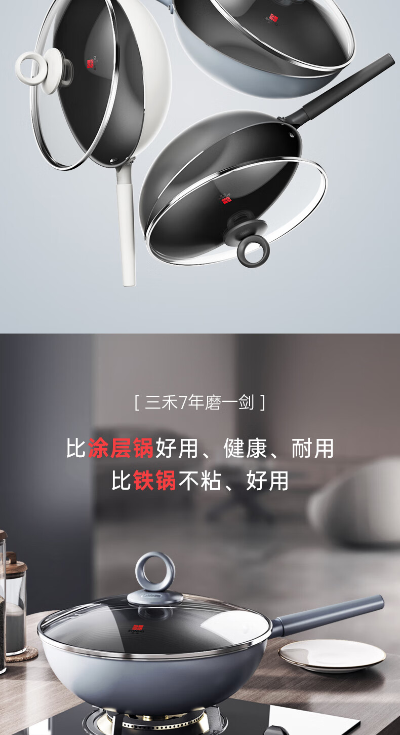 三禾0涂层微纳不粘炒锅LC32S1(铁黑)