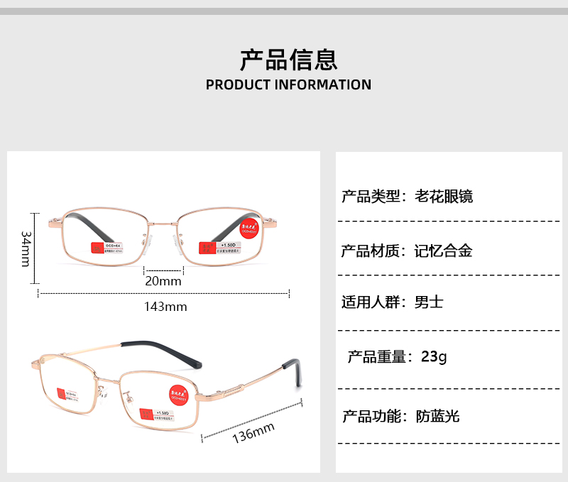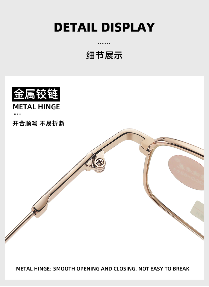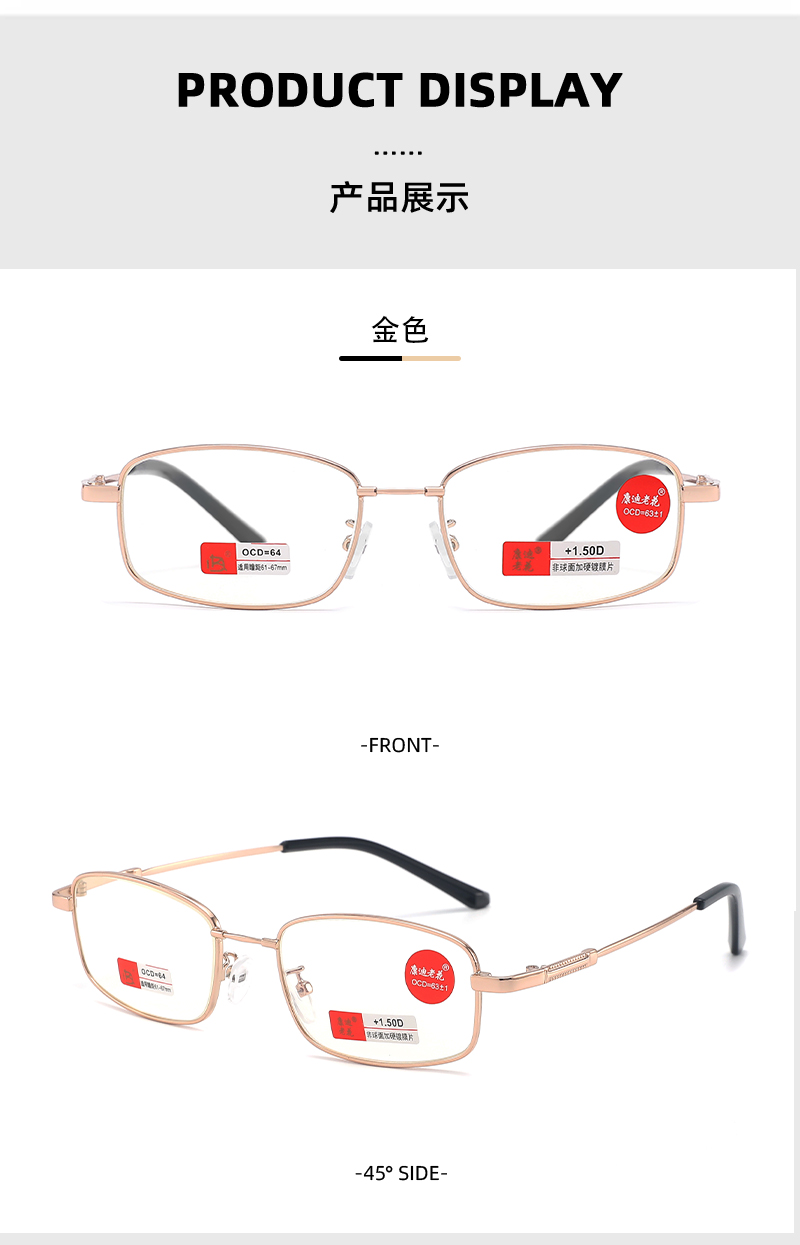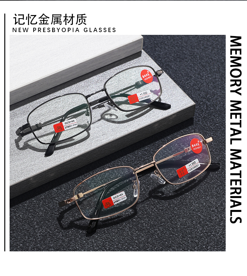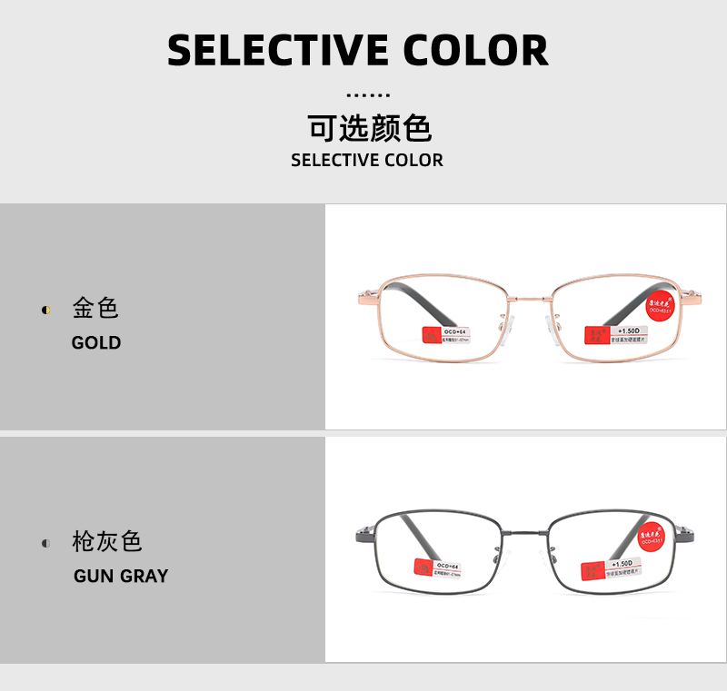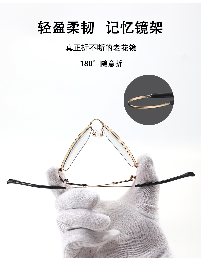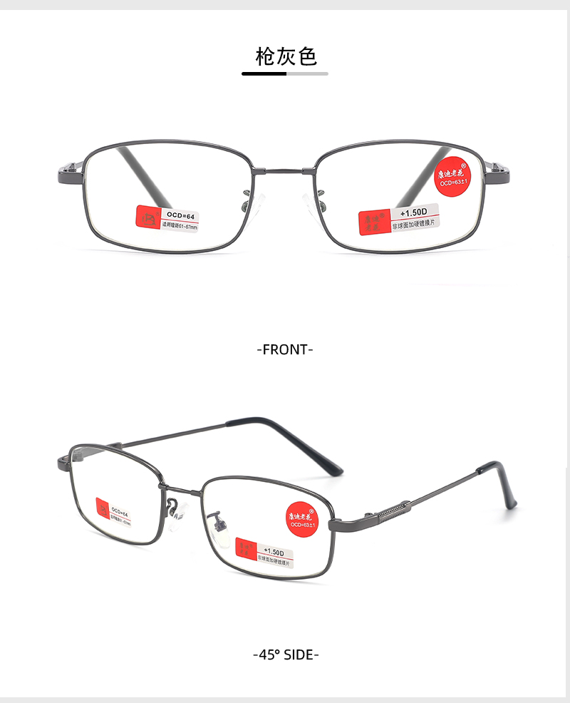 【轻盈柔韧】康迪 老花记忆钛合金时尚显年轻方框防蓝光老花眼镜820(男款)枪灰色/玫瑰金色 记忆金属材质