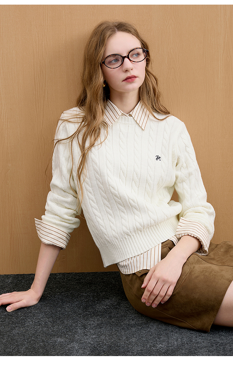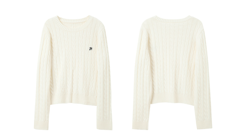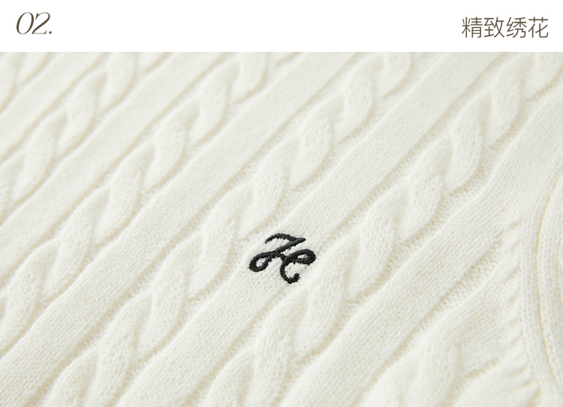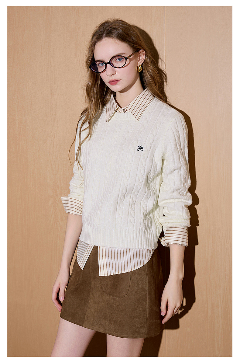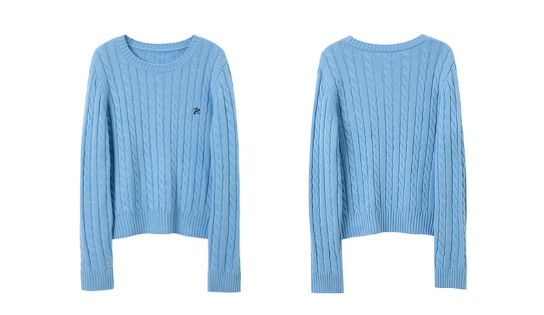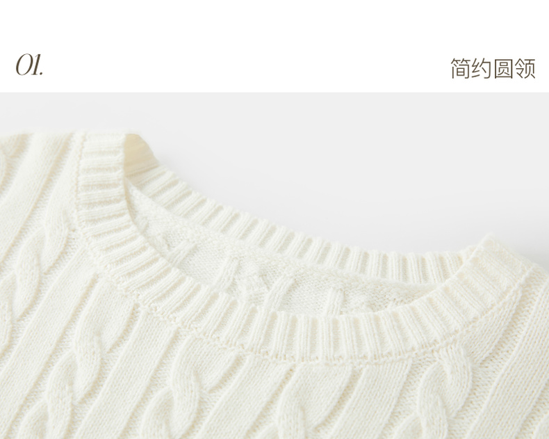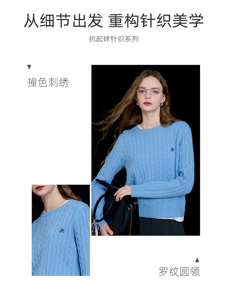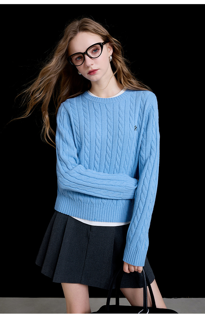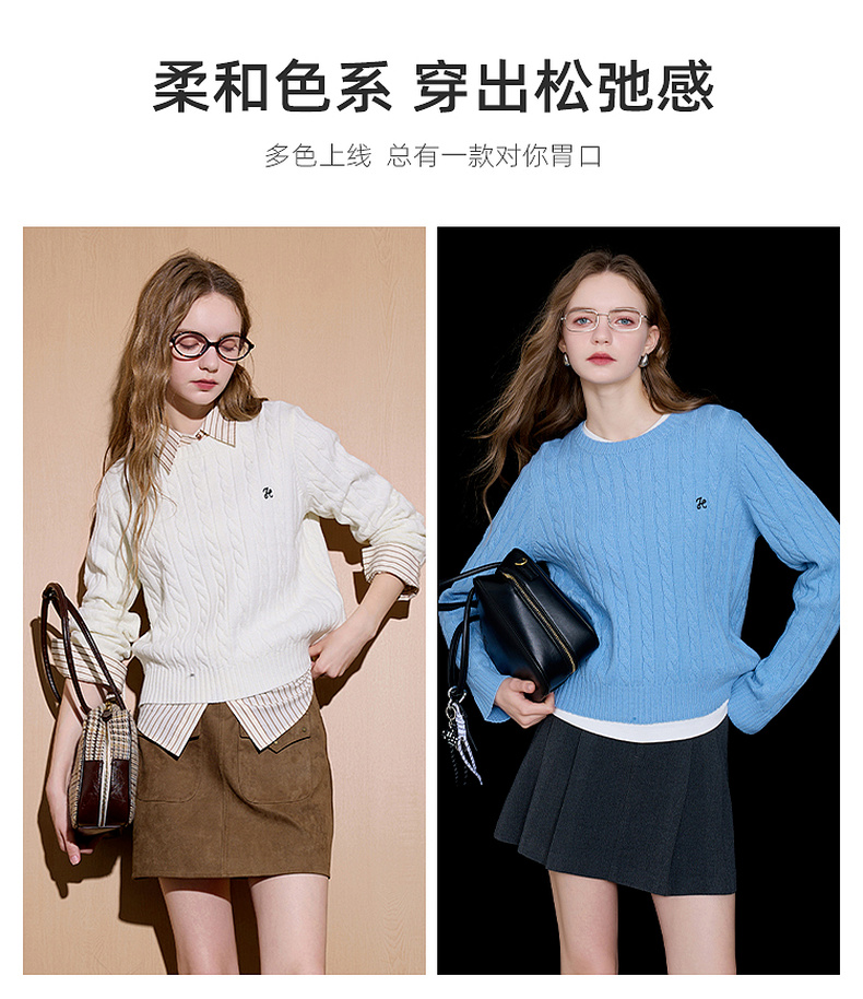三彩2026春季新款绣花绞花针织衫圆领毛衫长袖M