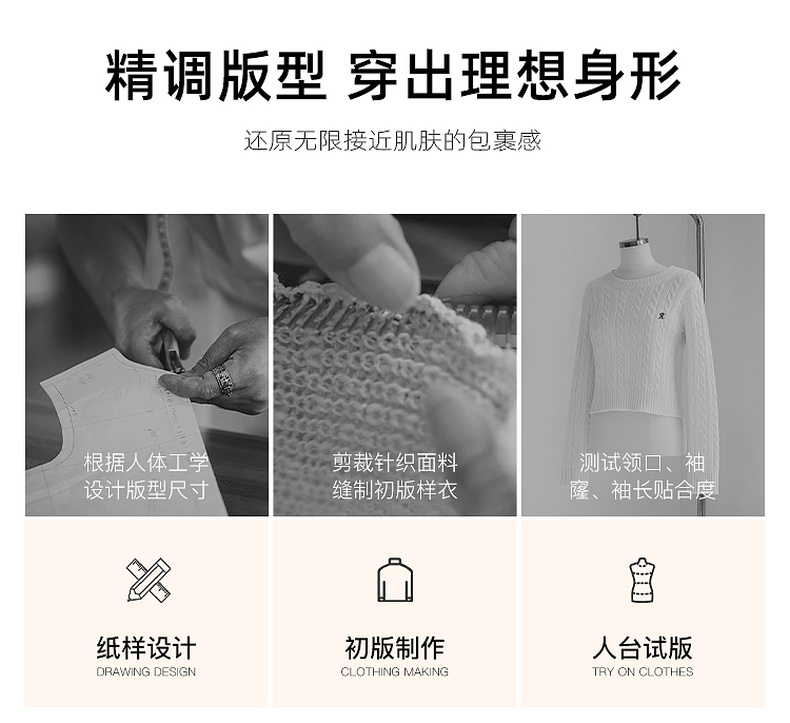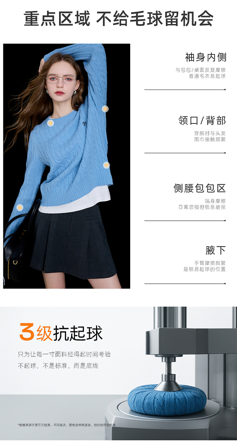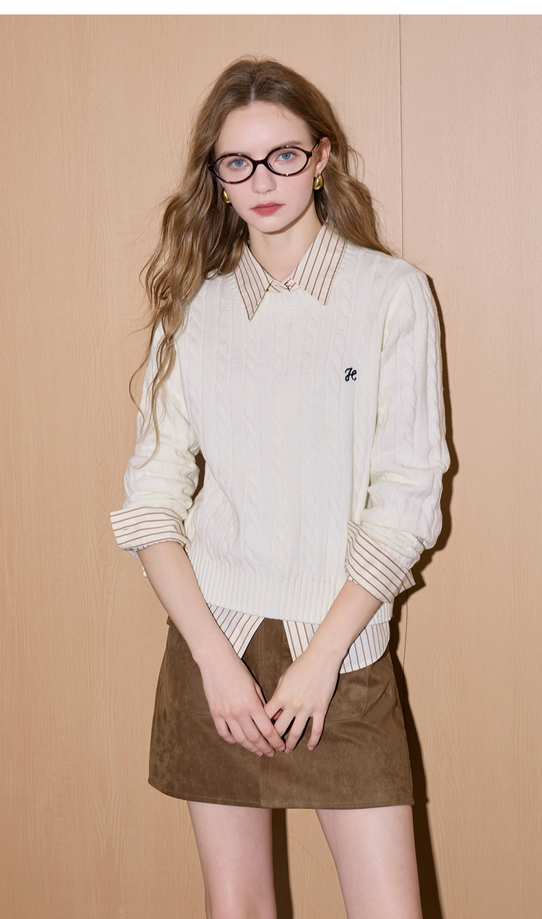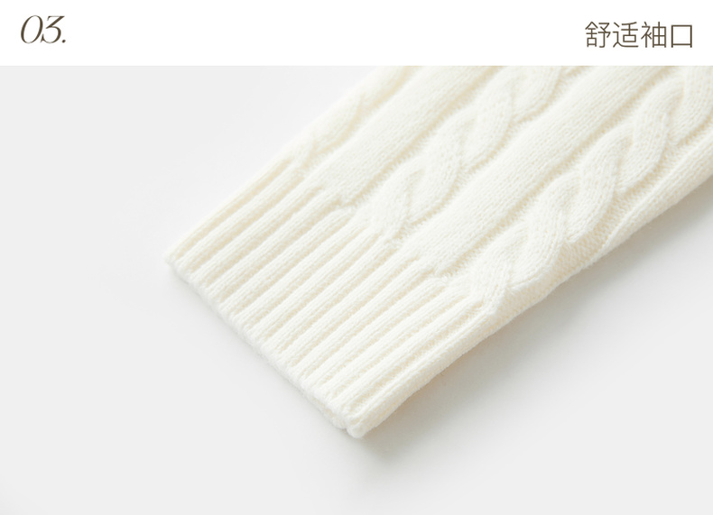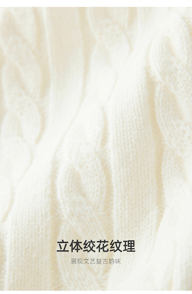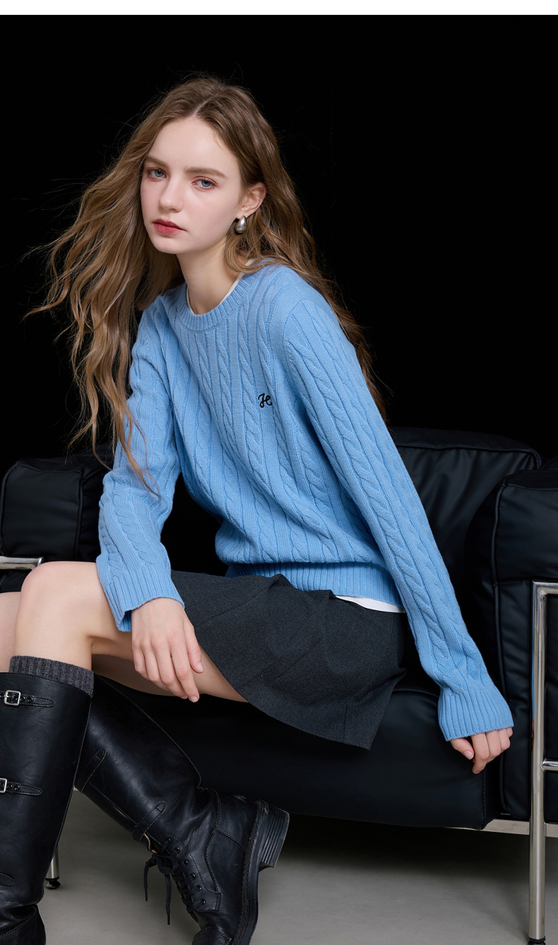 三彩2026春季新款绣花绞花针织衫圆领毛衫长袖M