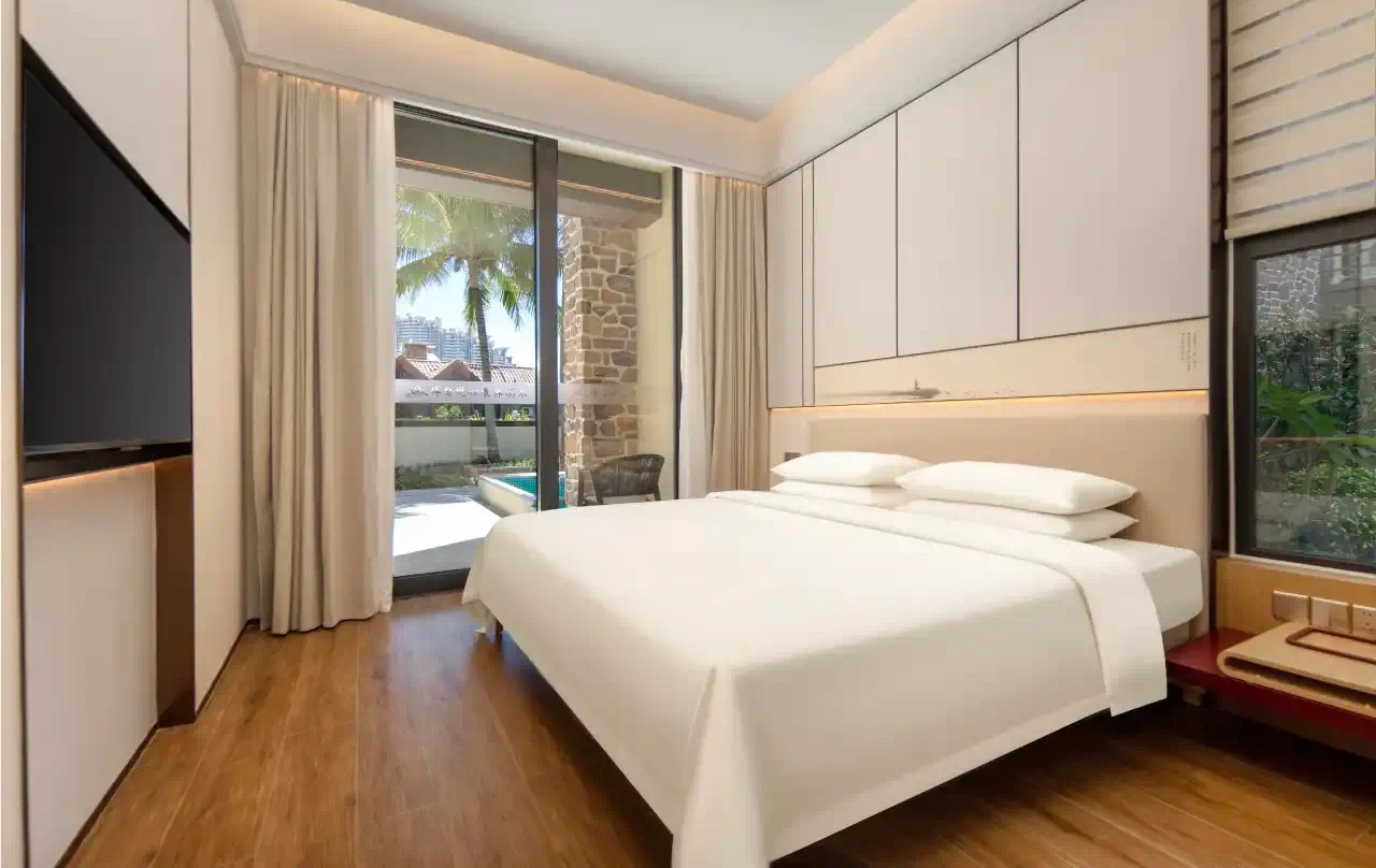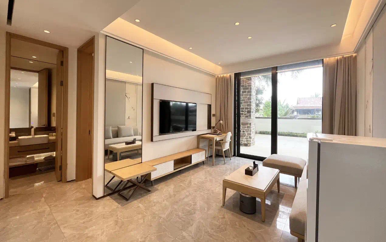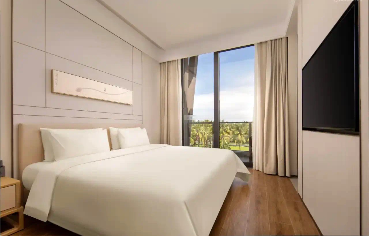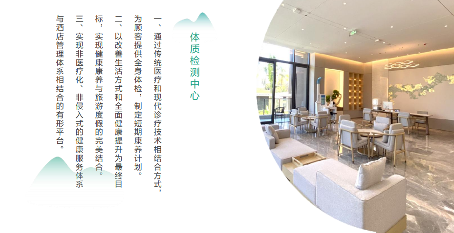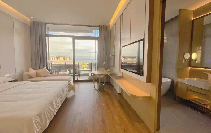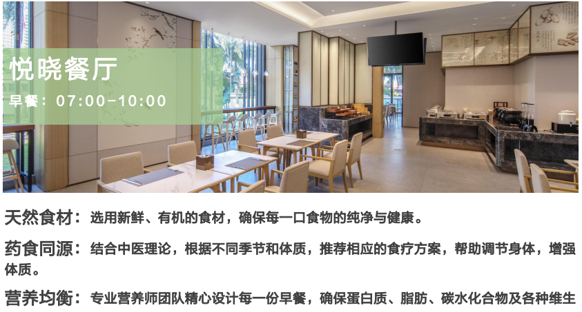 酒店客房由一栋高层酒店和六栋墅质养生公寓构成,共计236间套,房型包含悦禅双床房、悦海大床房、悦海至尊大床房、悦康豪华套房、悦心行政套房、悦栖一房一厅和悦心两室两厅墅质养生公寓,房间面积46㎡-211㎡不等;配有悦晓餐厅、悦膳食府、星座酒吧三个餐饮场所;配备禅茶堂、体测中心、运动健养中心、生活超市、食养供应站、中西理疗、水疗SPA、瑜伽室、禅修堂、研培室等。