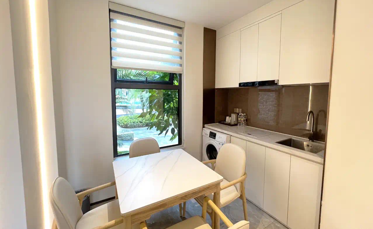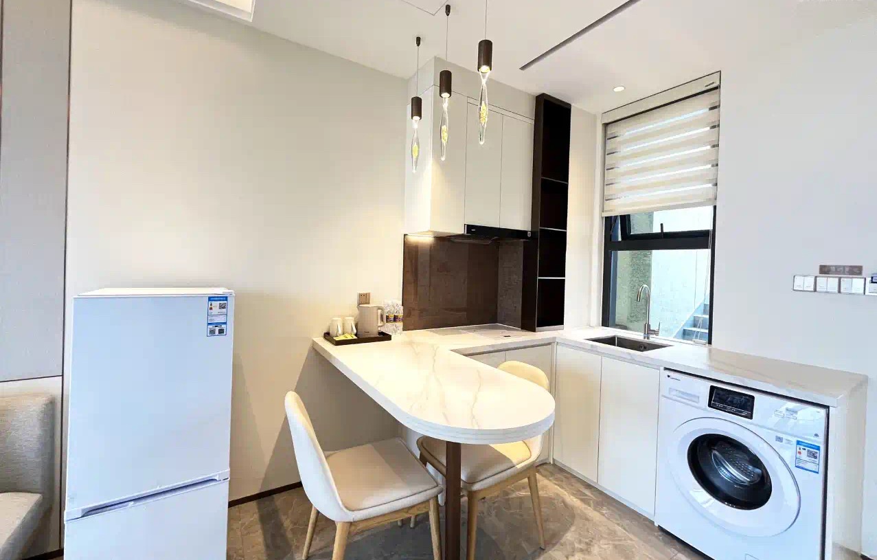 房间配套:阳台、24小时热水、空调、电视、衣柜、洗衣机、沙发等