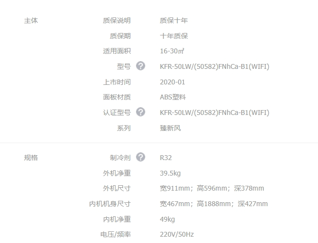 格力/空调/KFR-50LW/(50582)FNhCa-B1(WIFI)/臻新风 2匹 新风空调 新一级能效 变频冷暖 柜机空调