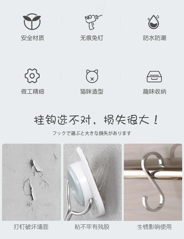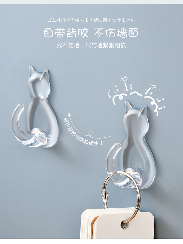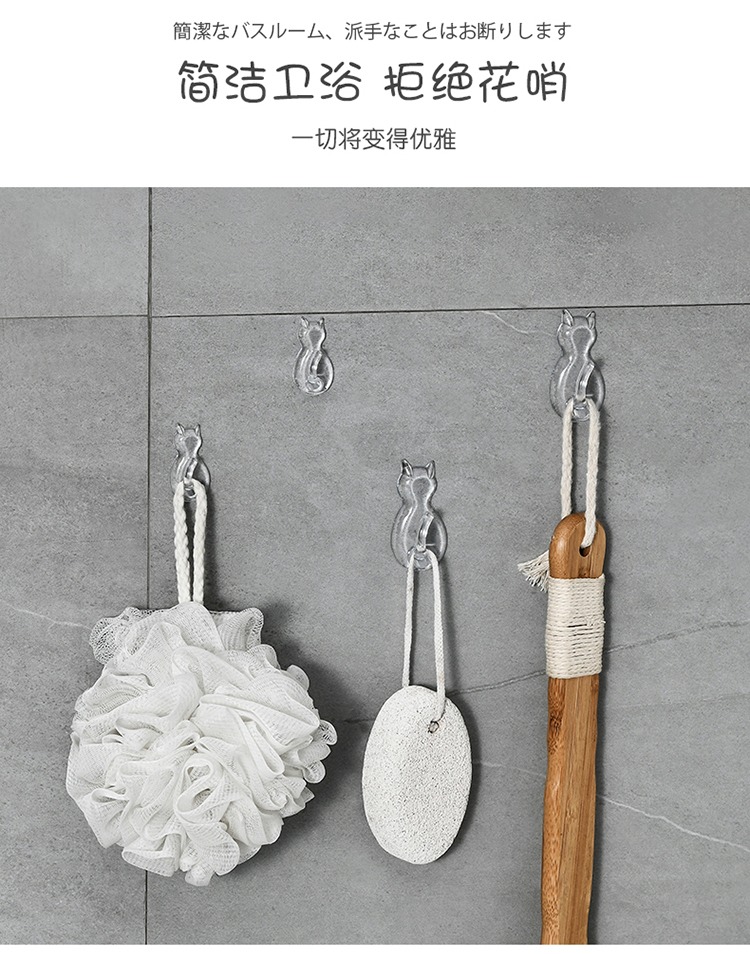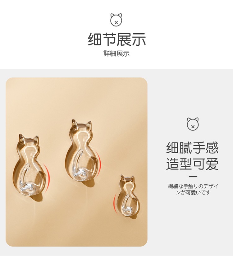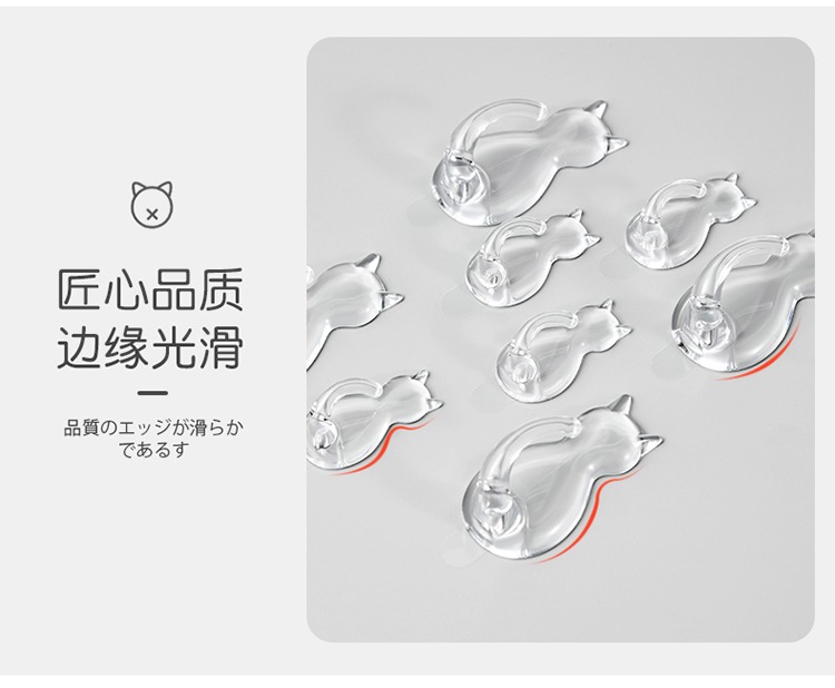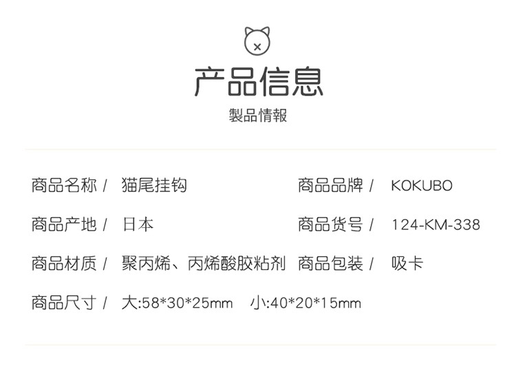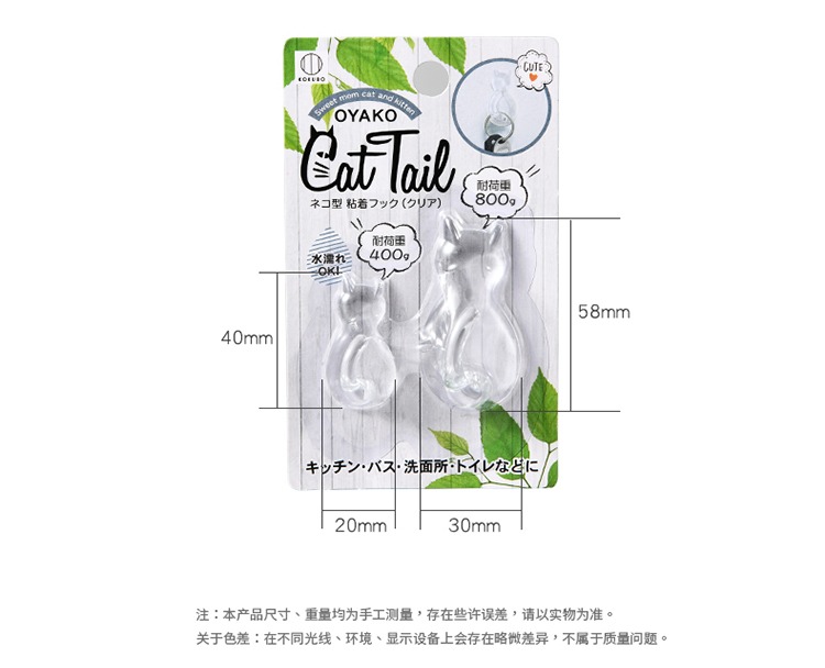 日本进口小久保工业所猫尾猫形粘钩大・小(透明)