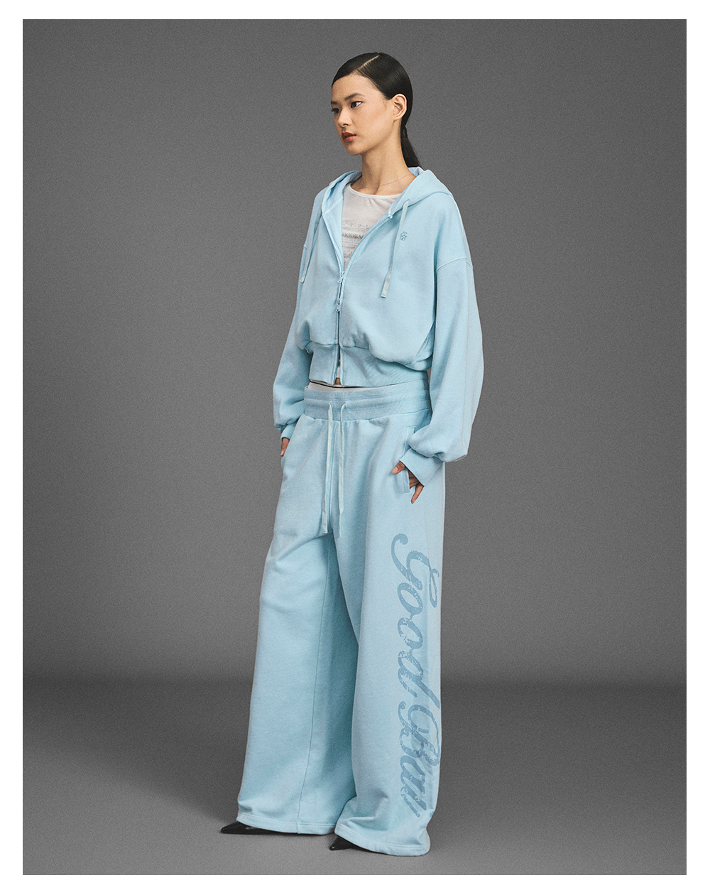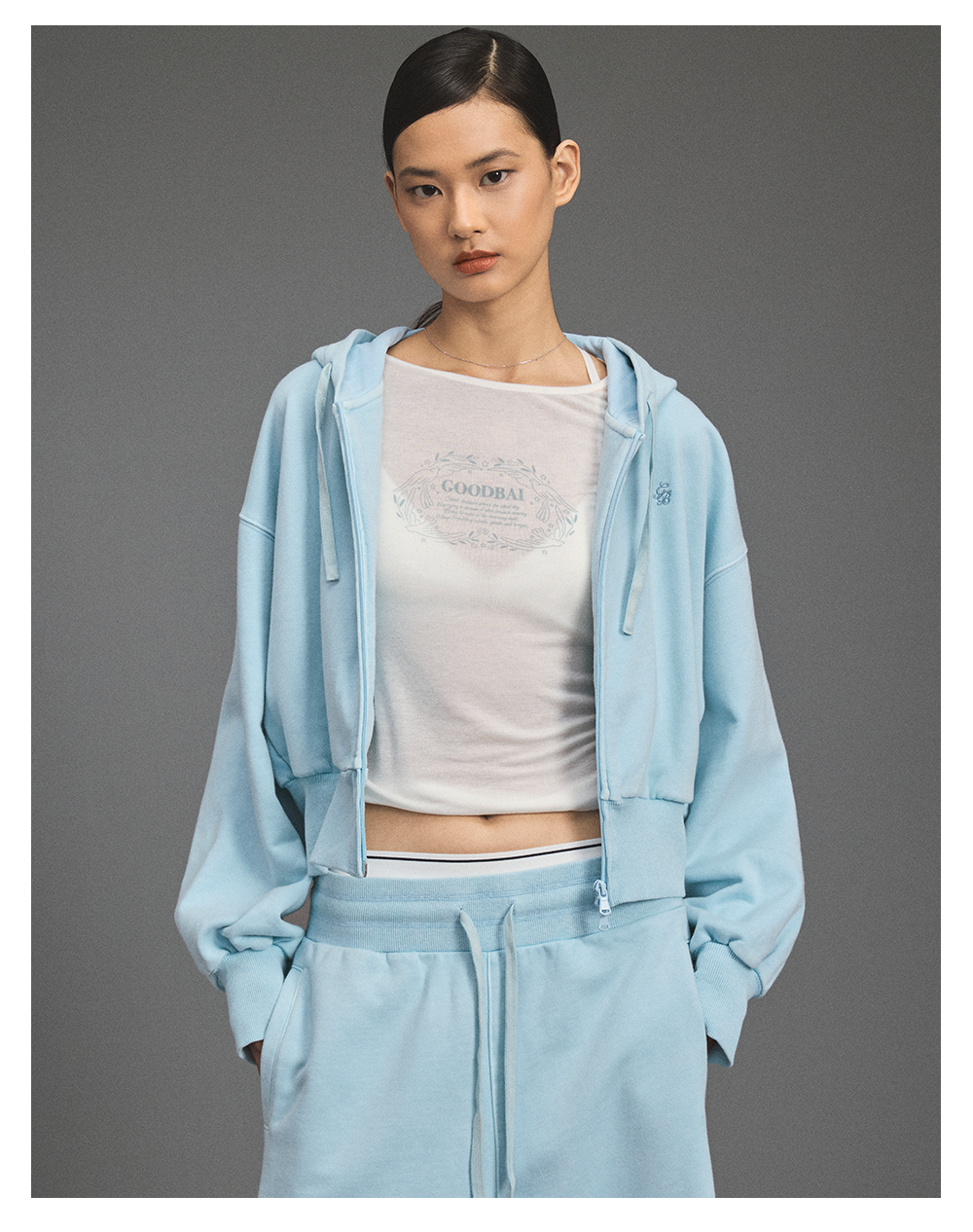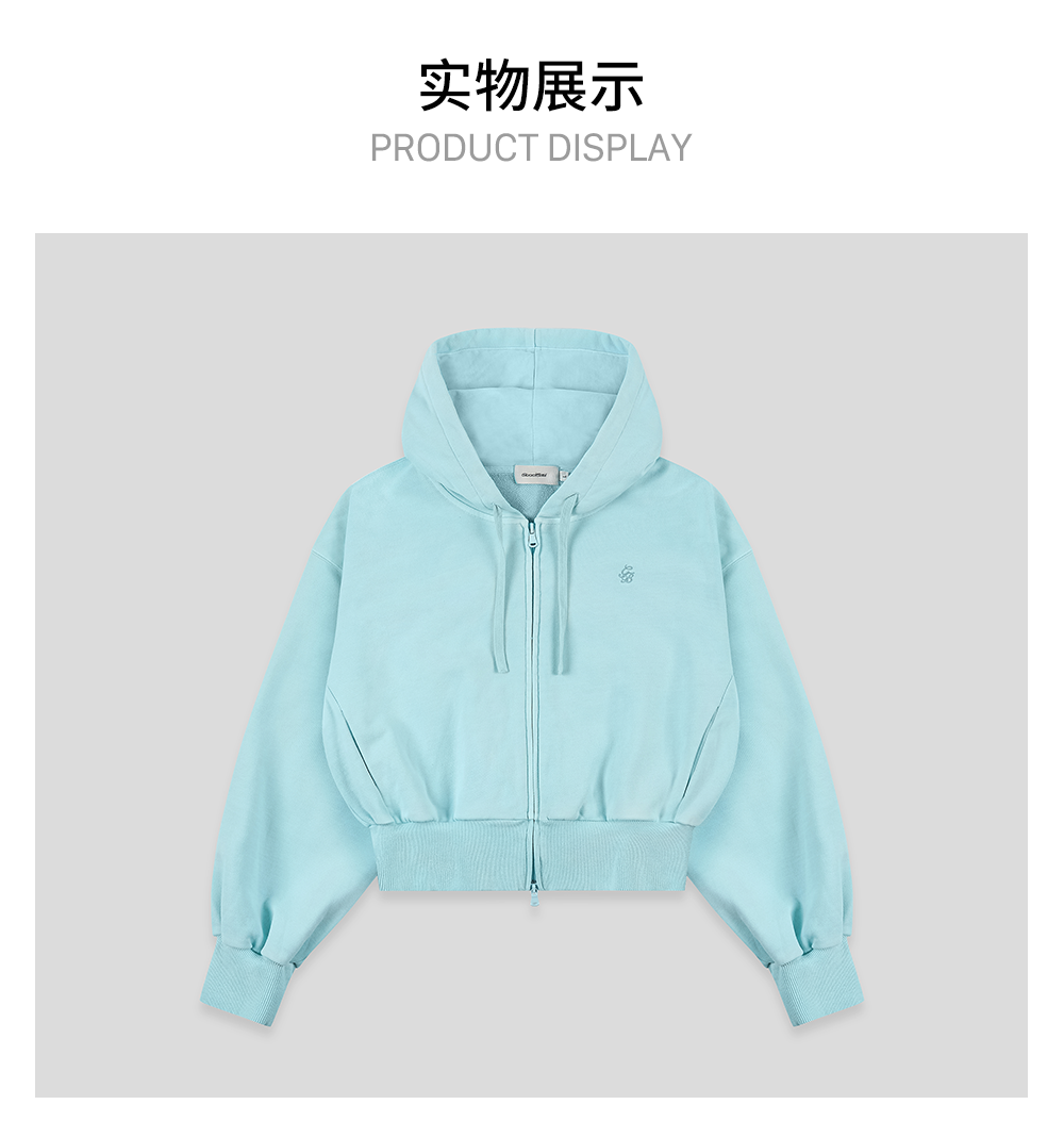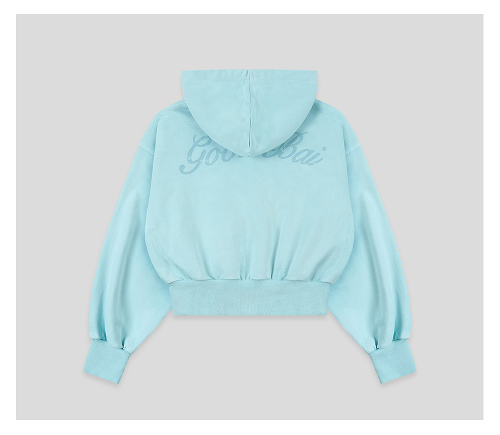 GOODBAI 新款做旧花体印花logo短款连帽长袖拉链外套女