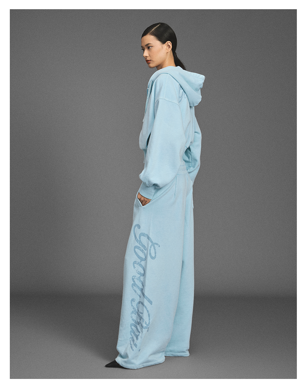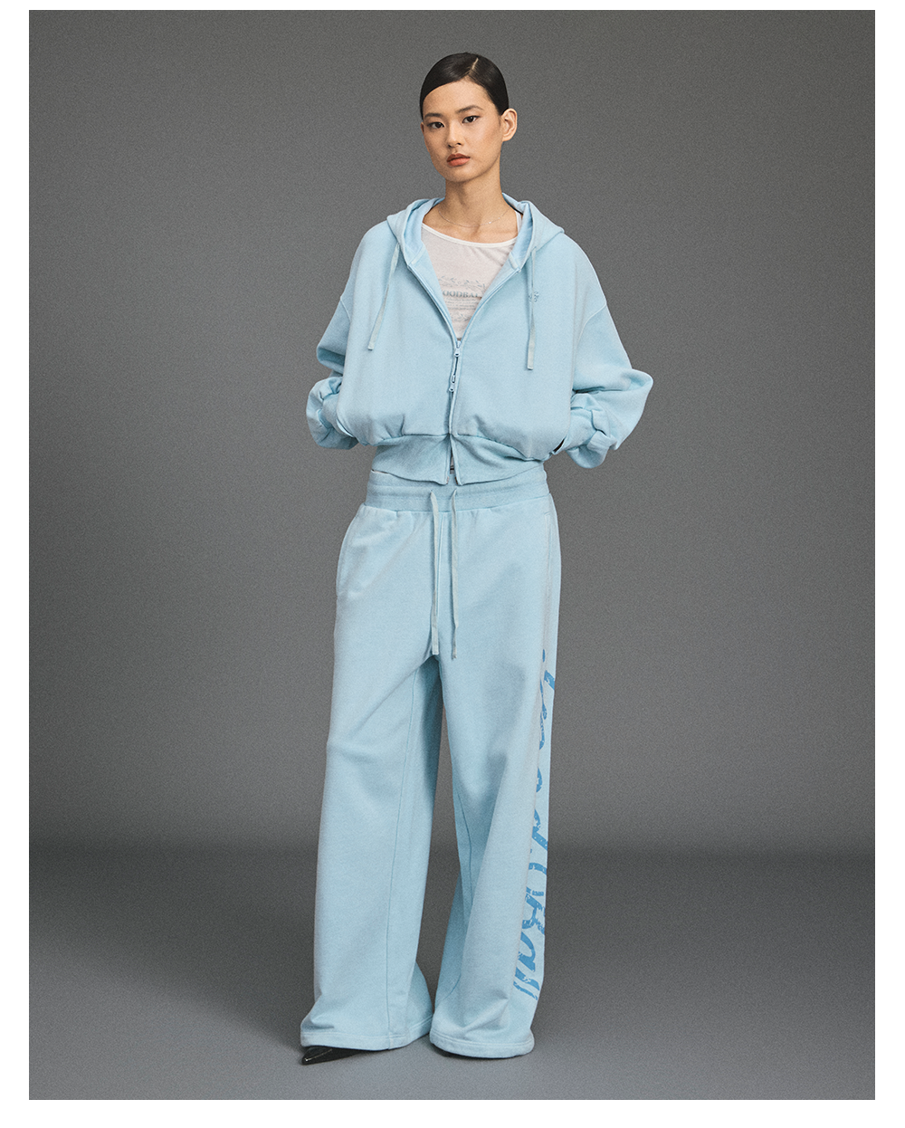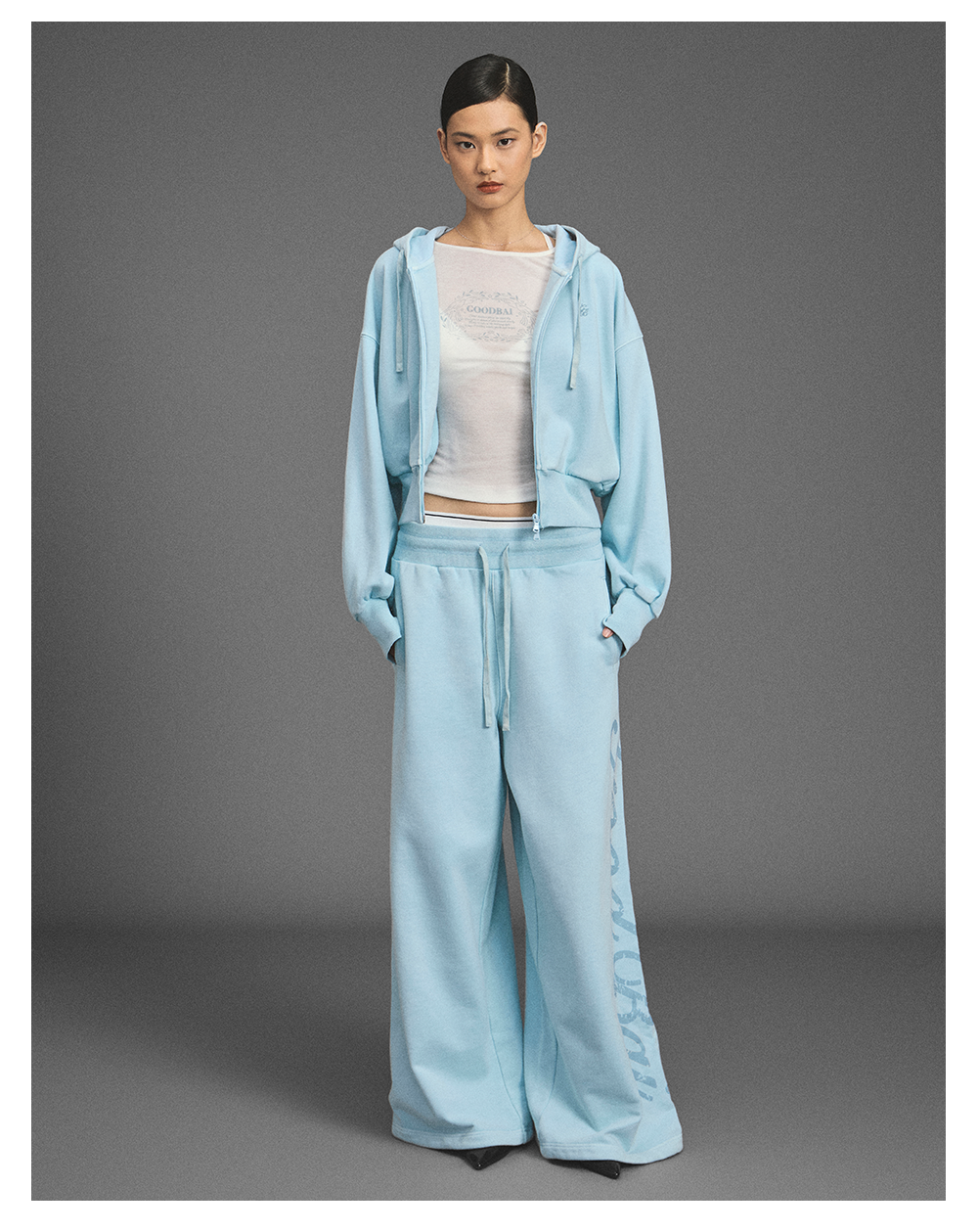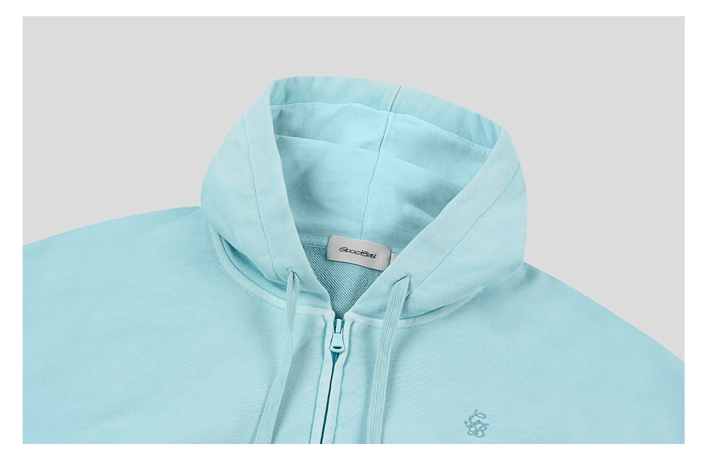 GOODBAI 新款做旧花体印花logo短款连帽长袖拉链外套女