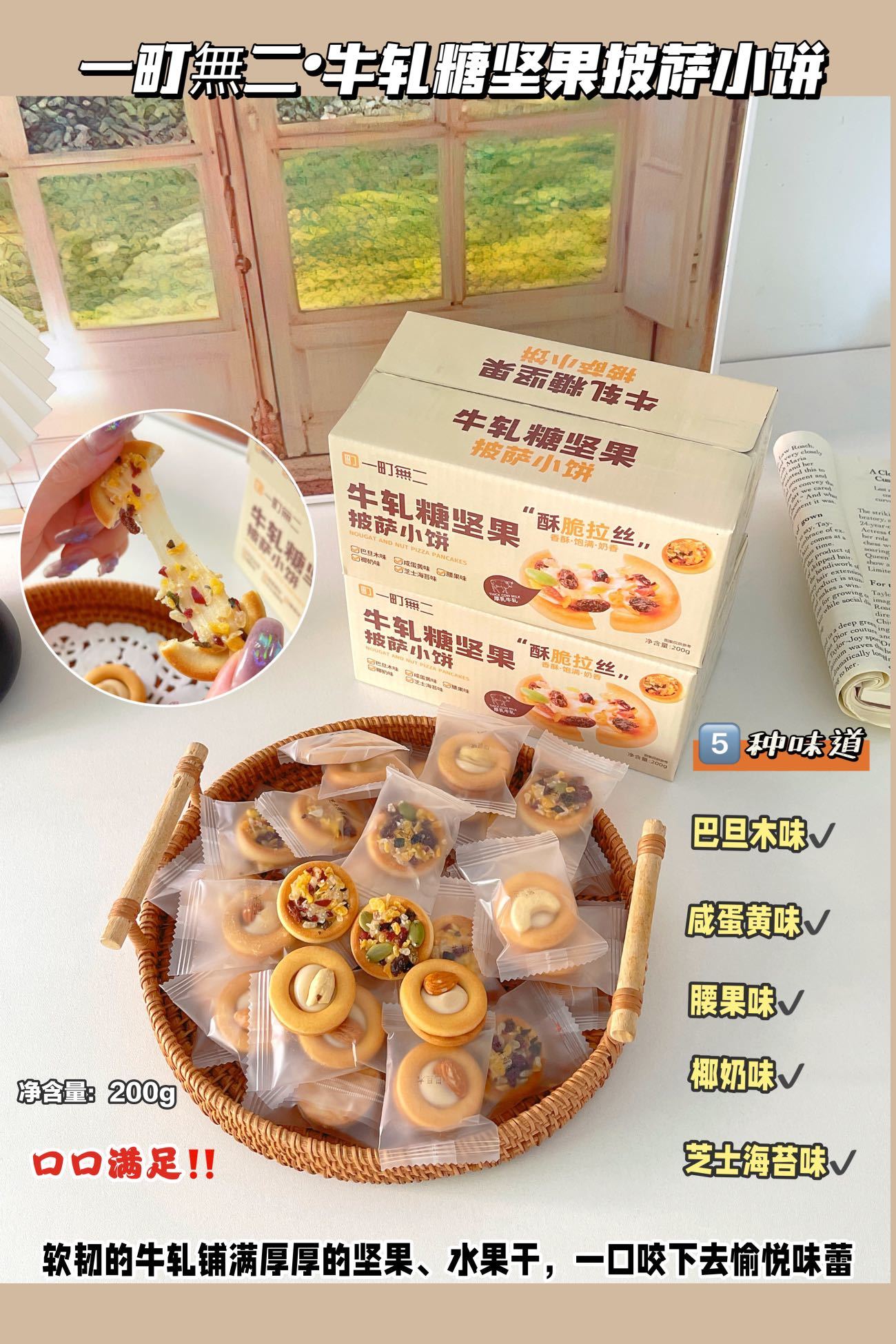【一町無二牛轧糖坚果披萨小饼】💥怎么这么好吃😋❗一款几种坚果跟果脯搭配的坚果小饼🙀🙀 ✅独立包装 方便携带 ✅营养丰富 口感酥脆 ✅绵密拉丝 奶香浓郁