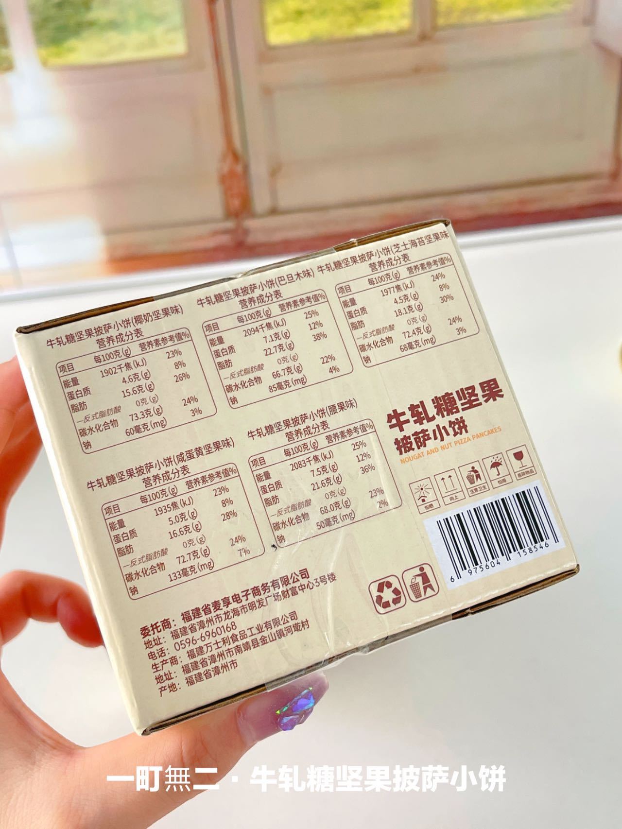 💫精美盒装,里面独立小包装 混搭5⃣种味道,有巴旦木味、咸蛋黄味、腰果味、椰奶味、芝士海苔味❗ 抓一把三四个很方便就当早餐了 不会很甜很腻,口感刚刚好 饿了来一两个刚刚好 【品牌】一町無二 【商品名称】牛轧糖坚果披萨小饼 【规格】200g*1箱 【储存方式】存放于阴凉干燥处,避免阳光直射 【产地】福建漳州 【保质期】6个月 【加费地区】北京、上海、+1元/件;内蒙古、甘肃、青海、宁夏+5元/件 【不发地区】新疆、西藏、港澳台 【售后标准】由于食品品类特殊性,所以本产品不允许拒收或者无理由退货,如有疑问,请在签收24小时进行理赔!! 所有商品订单出单号后 买家因个人原因产生的拒收件或拦截件,及顾客原因造成的退回件,快递需收取3元的费用 知悉 由于发货和上传运单有24-48小时时差,没有运单/单号无物流 不代表没有发货。仓库流程复杂,请不要添加麻烦引起不必要的失误,更不要引起不必要的纠纷