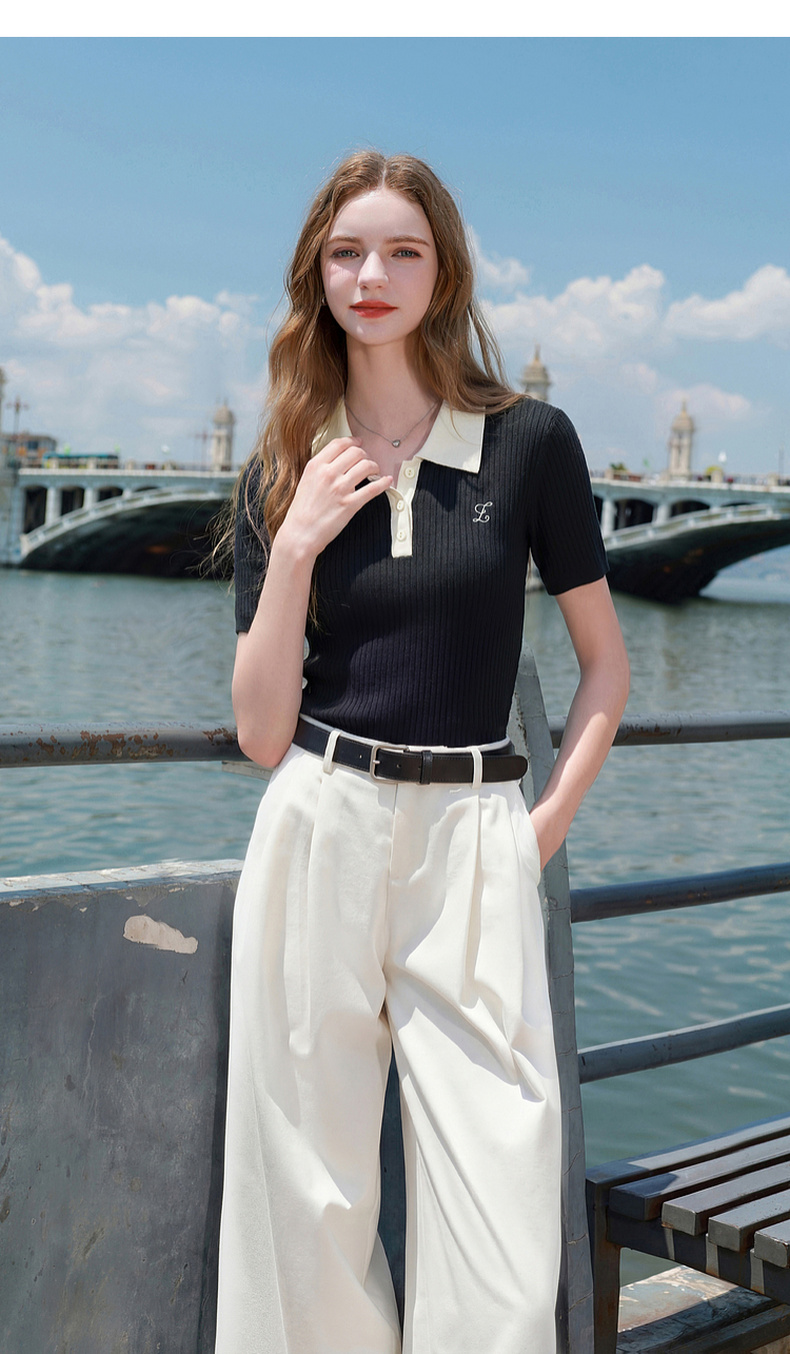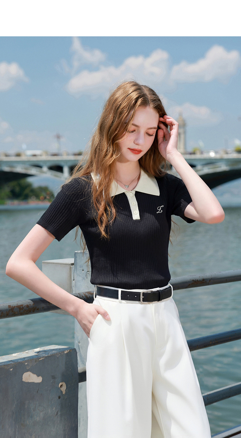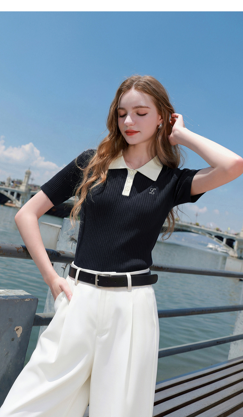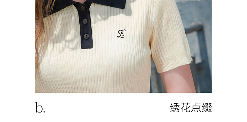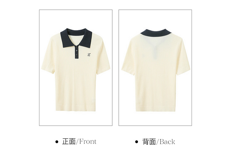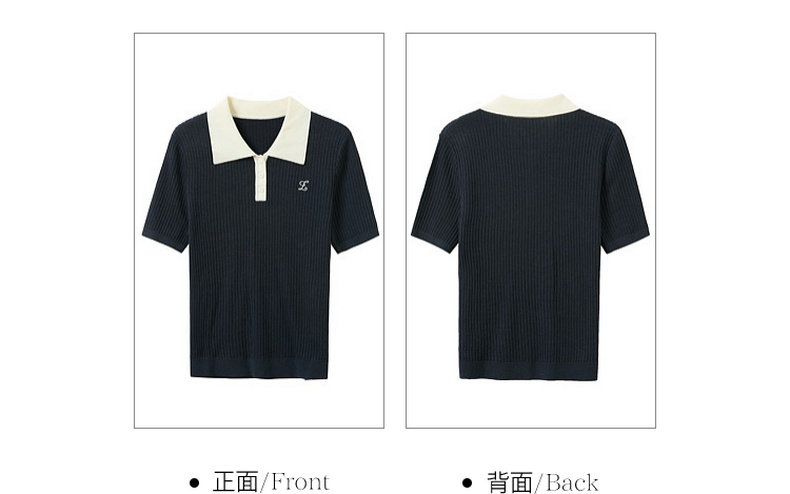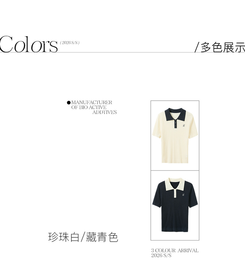 【莱赛尔】三彩2026夏季新款撞色翻领针织衫短袖上衣套头Polo衫M