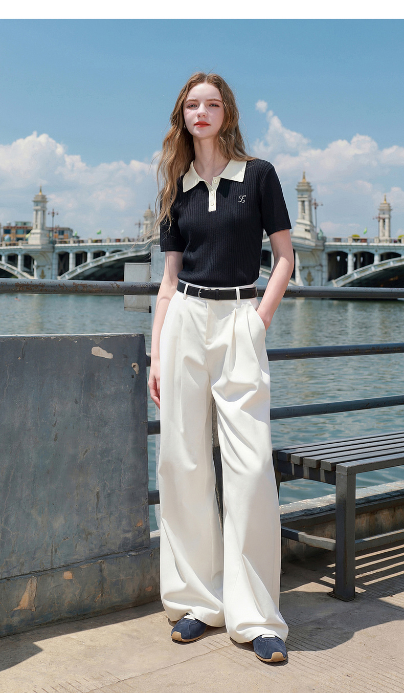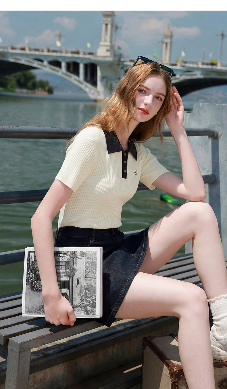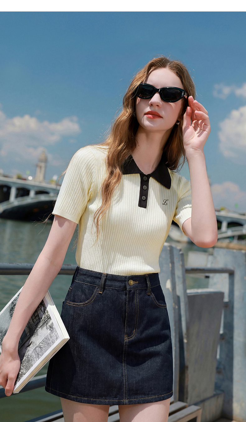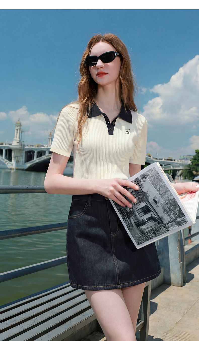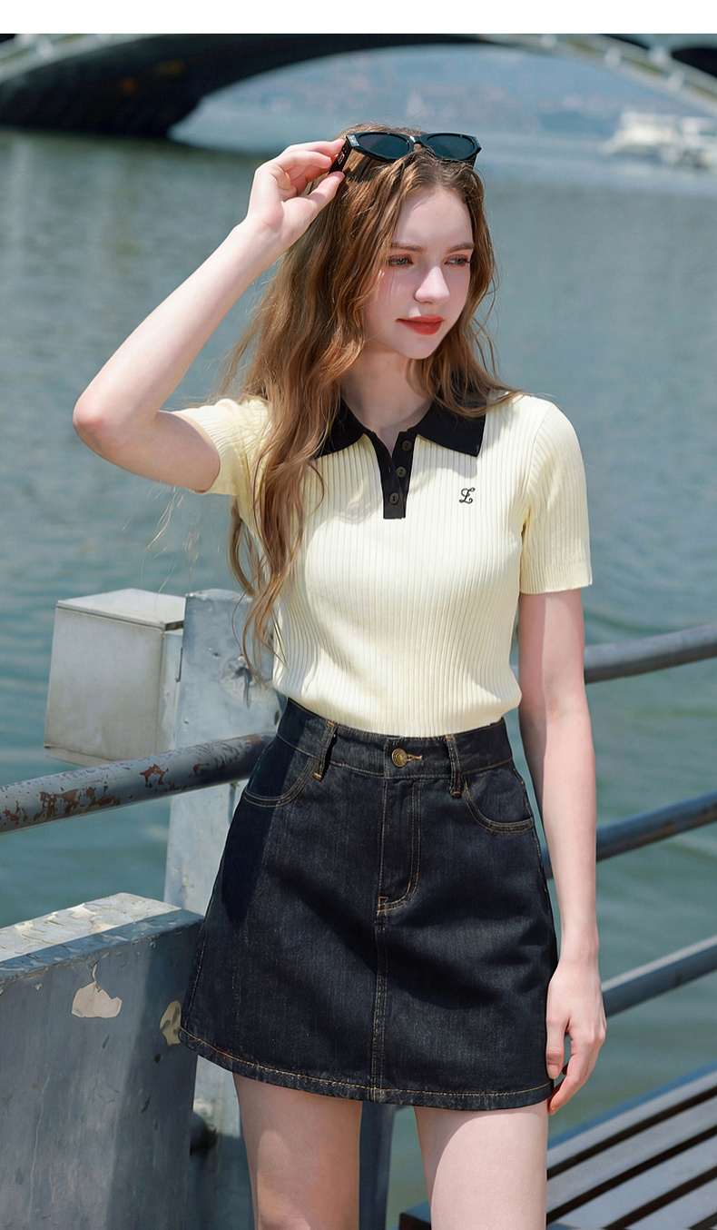 【莱赛尔】三彩2026夏季新款撞色翻领针织衫短袖上衣套头Polo衫M