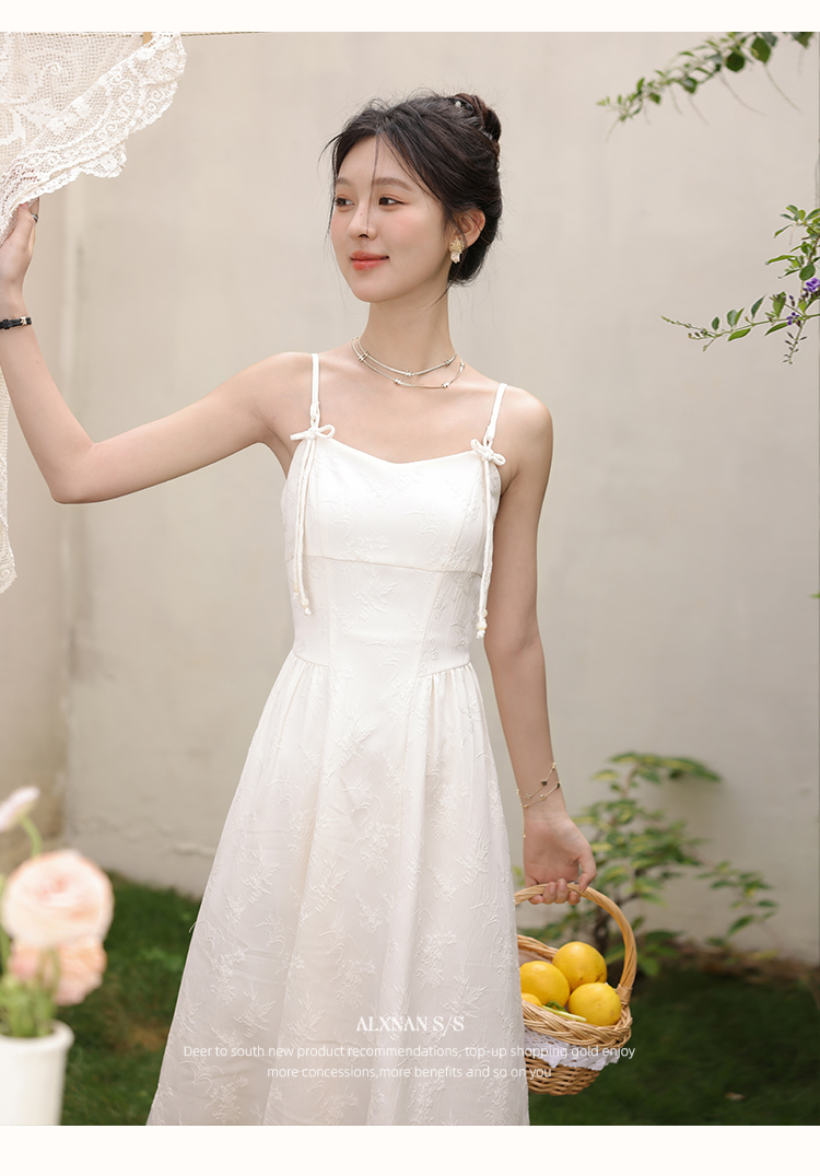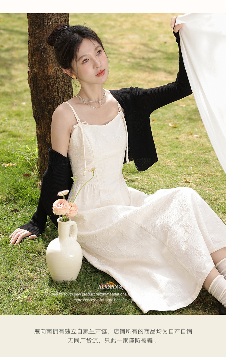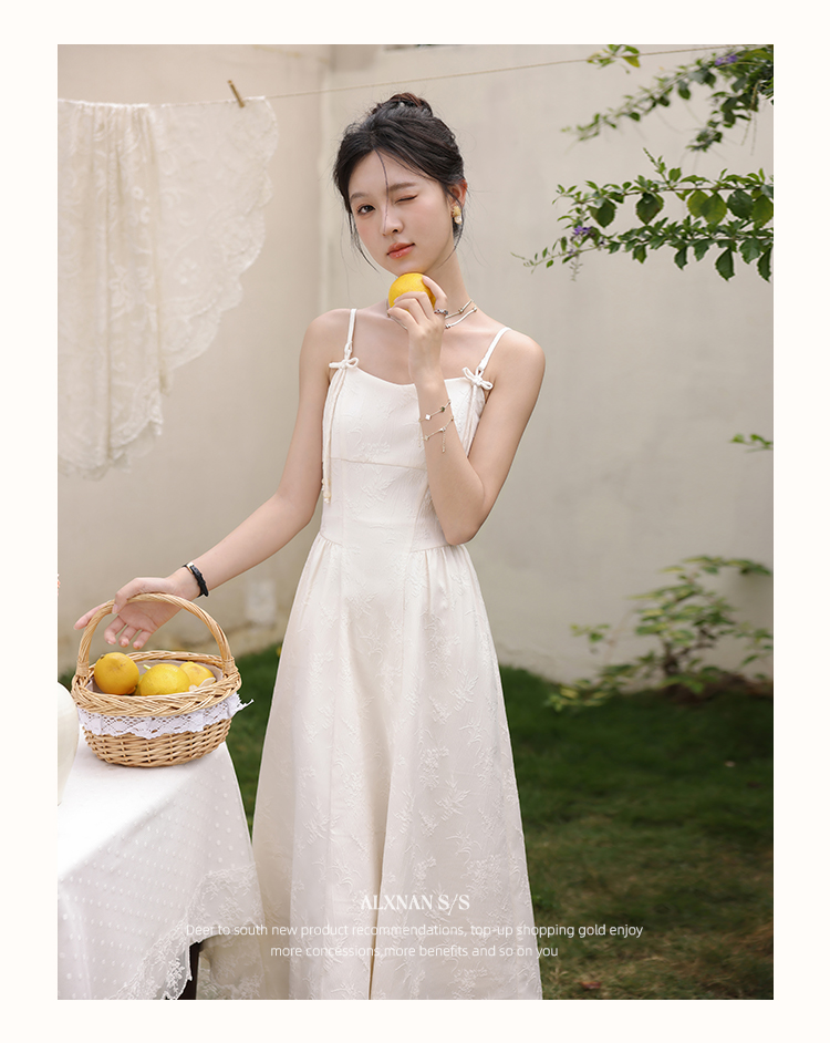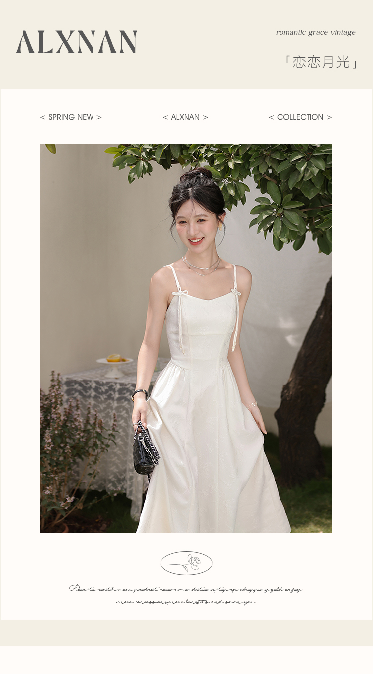 【65折秒杀】鹿向南「恋恋月光」法式甜美吊带连衣裙女夏气质别致收腰长裙子