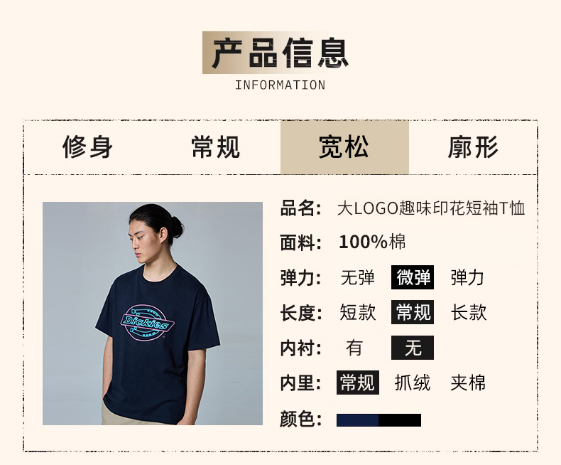 Dickies经典大LOGO趣味印花短袖T恤 休闲百搭男女同款短袖 DK0A88DY