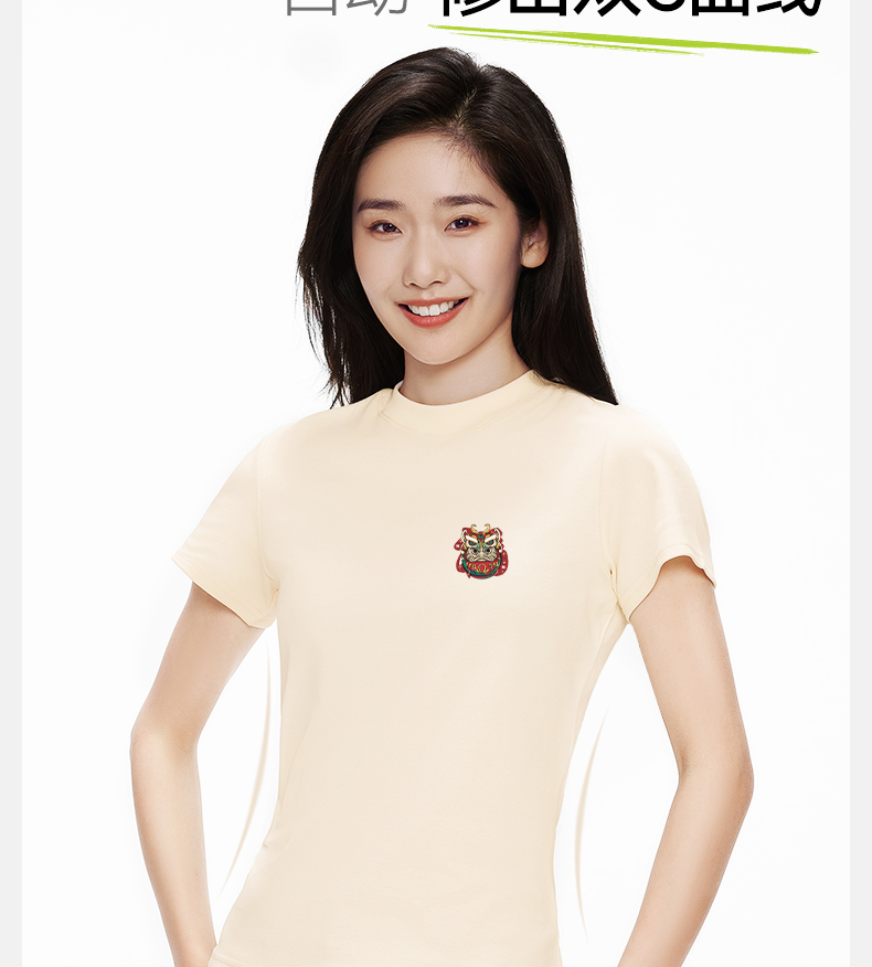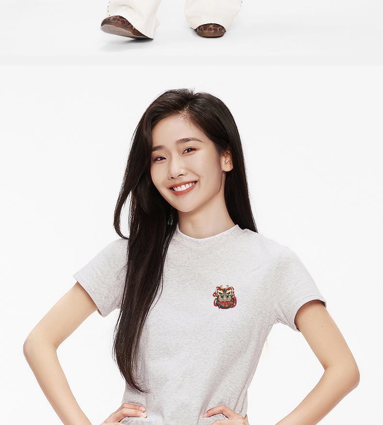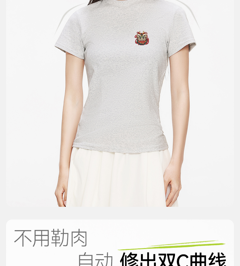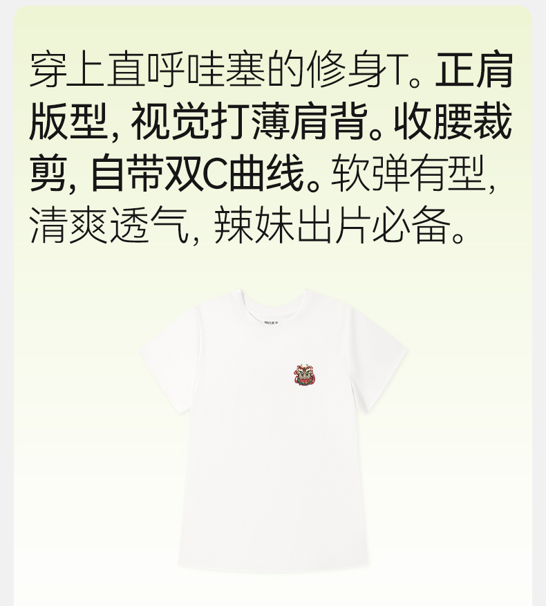 「棉的美学」正肩圆领收腰显瘦T恤女小众设计印花百搭小个子上衣