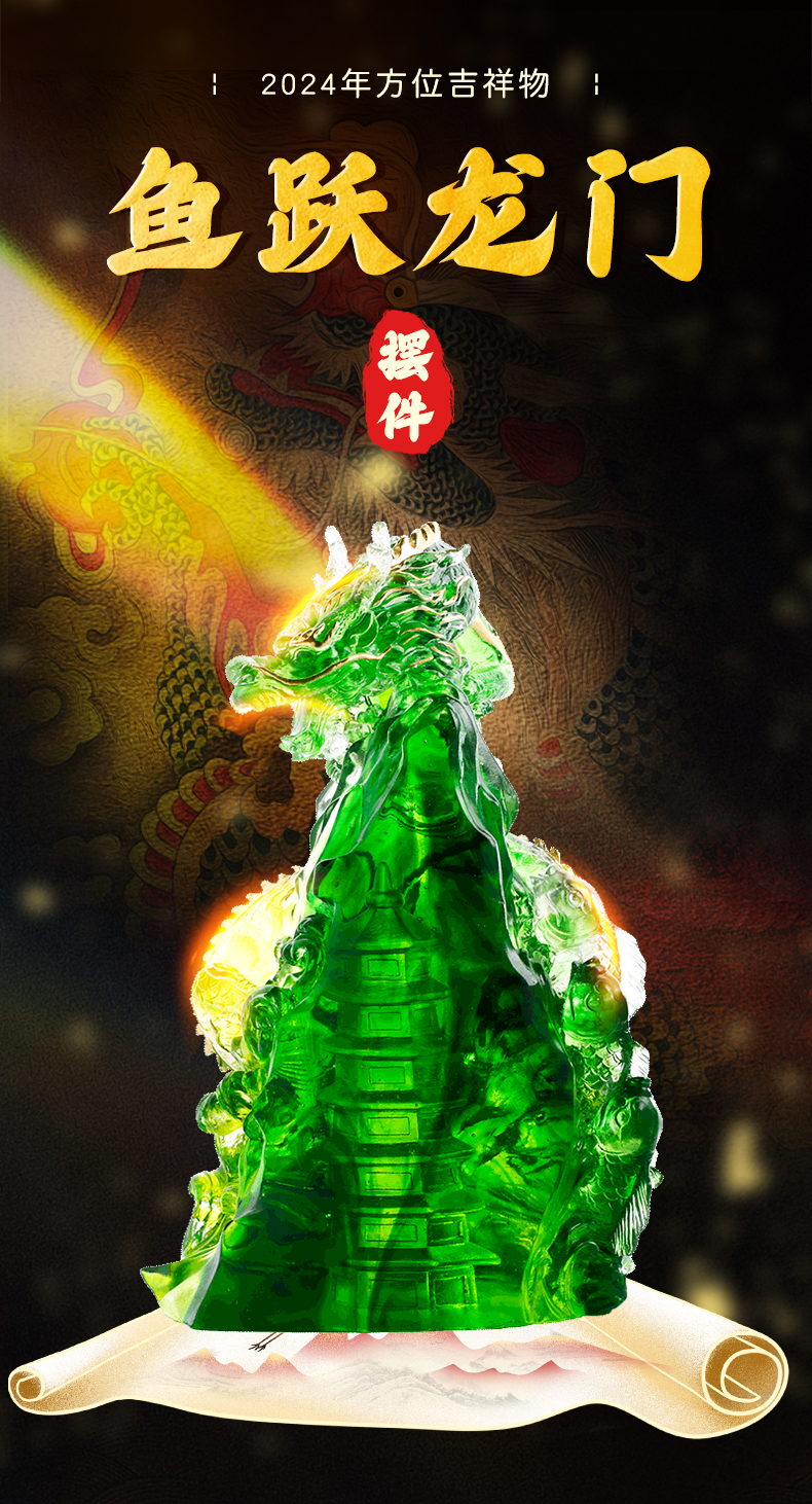 慈元阁2024年方位吉祥物鱼跃龙门琉璃摆件家居玄关摆设