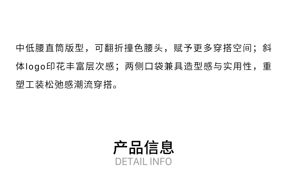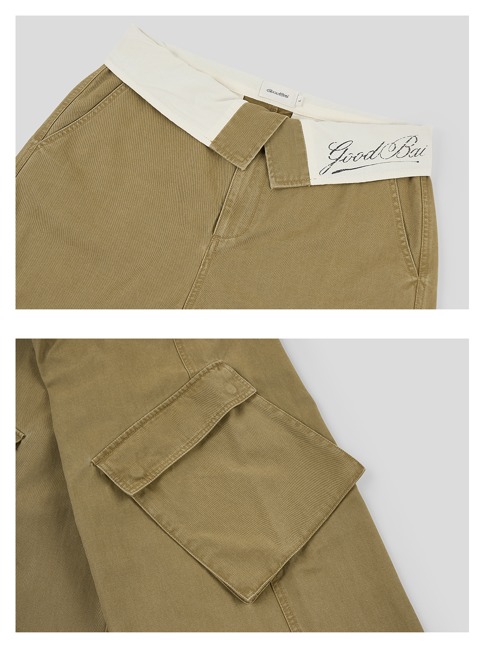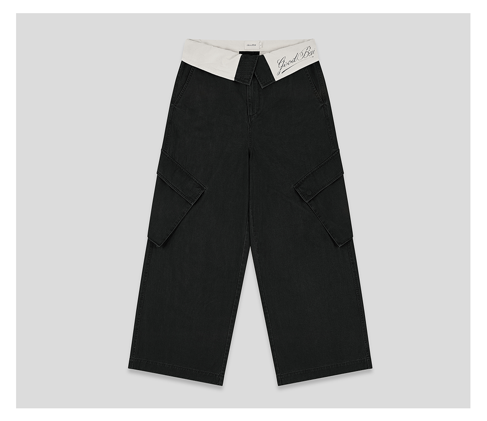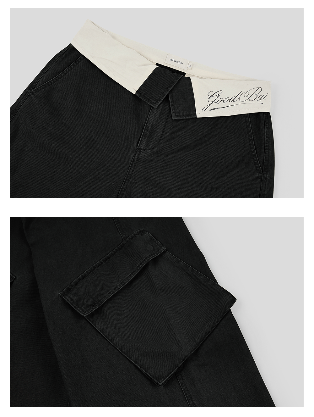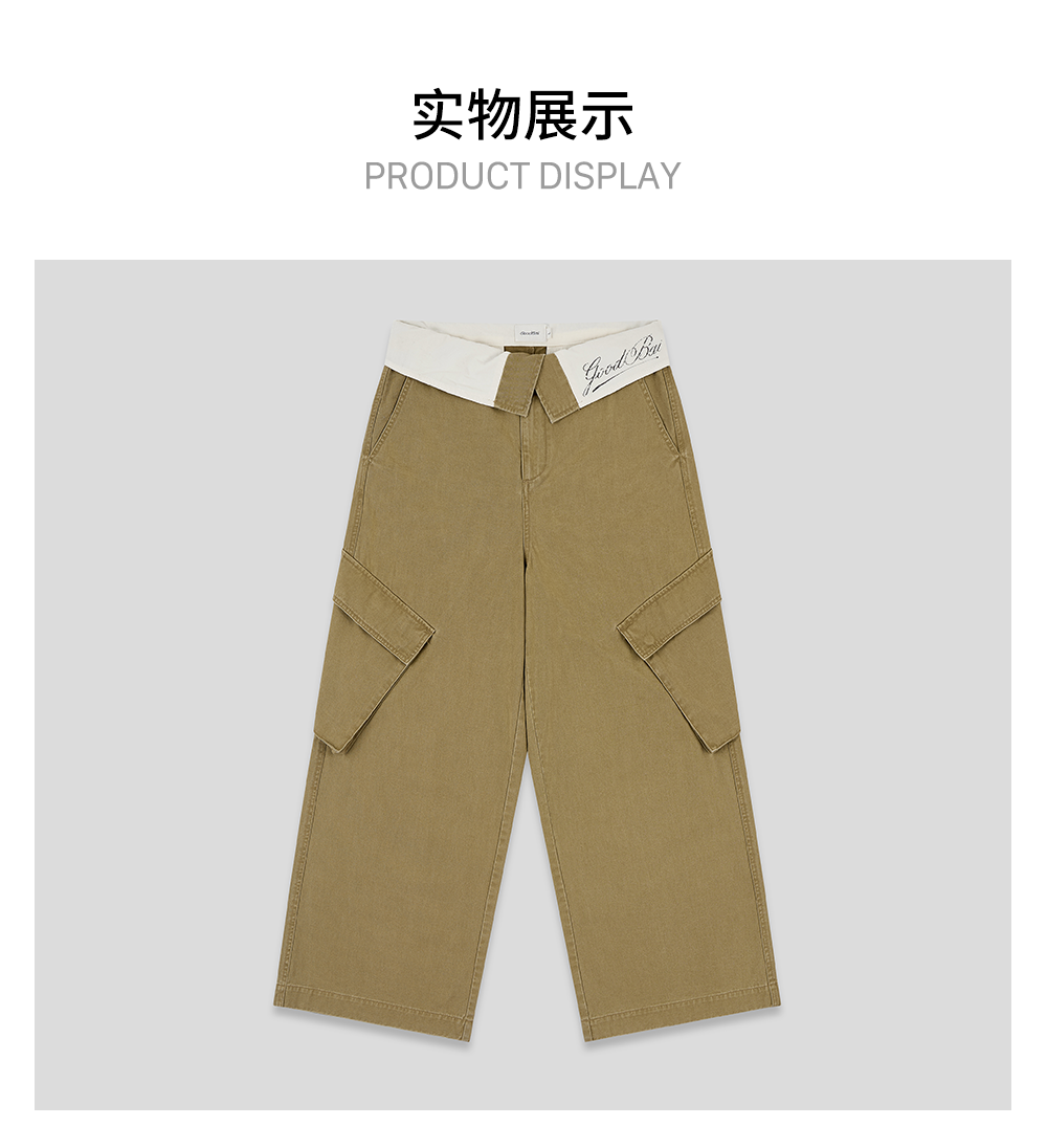 GOODBAI 斜体logo印花撞色翻腰中低腰直筒工装休闲长裤