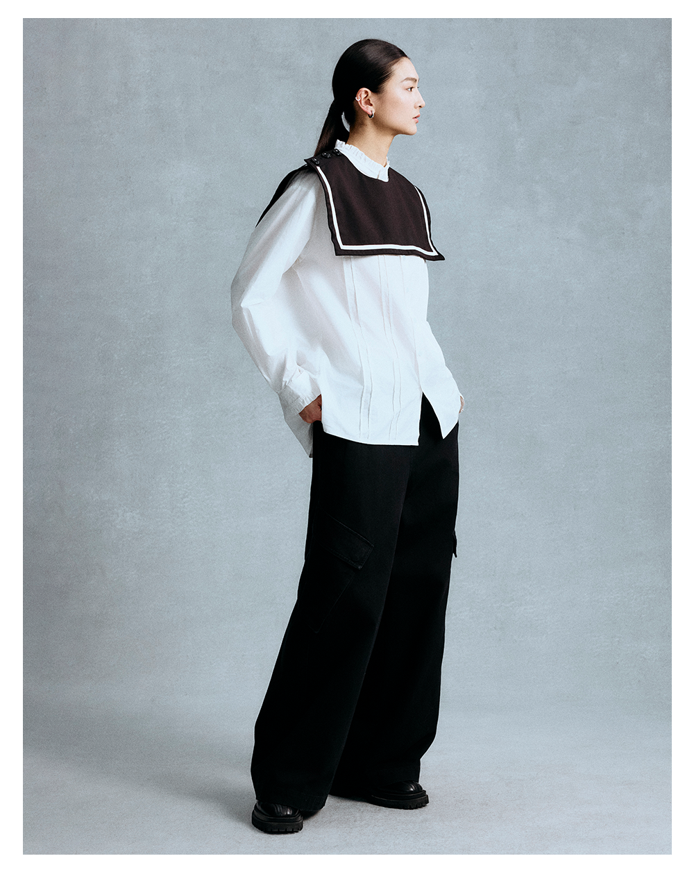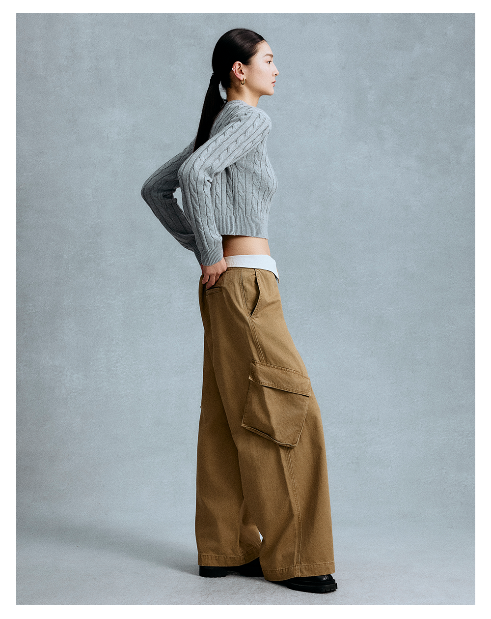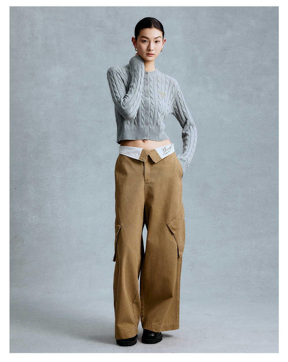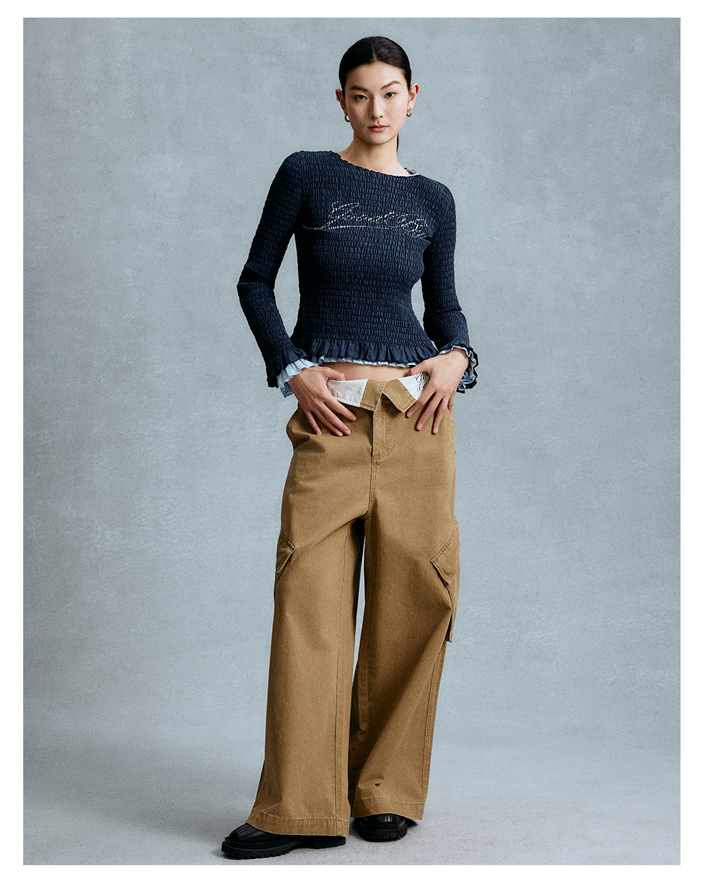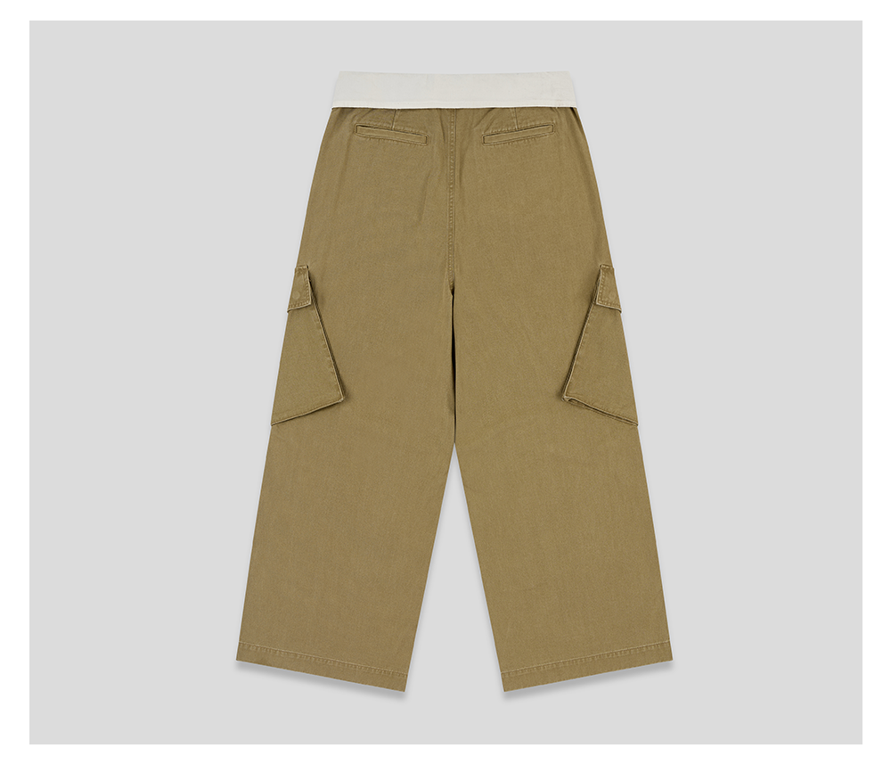 GOODBAI 斜体logo印花撞色翻腰中低腰直筒工装休闲长裤