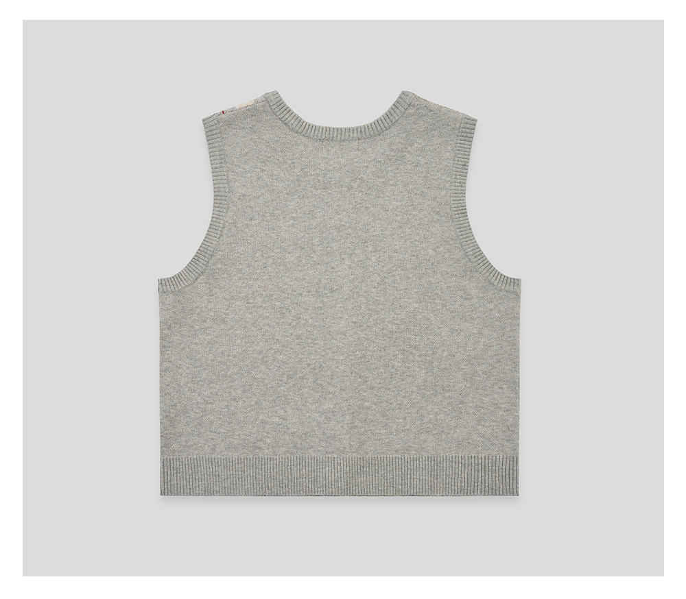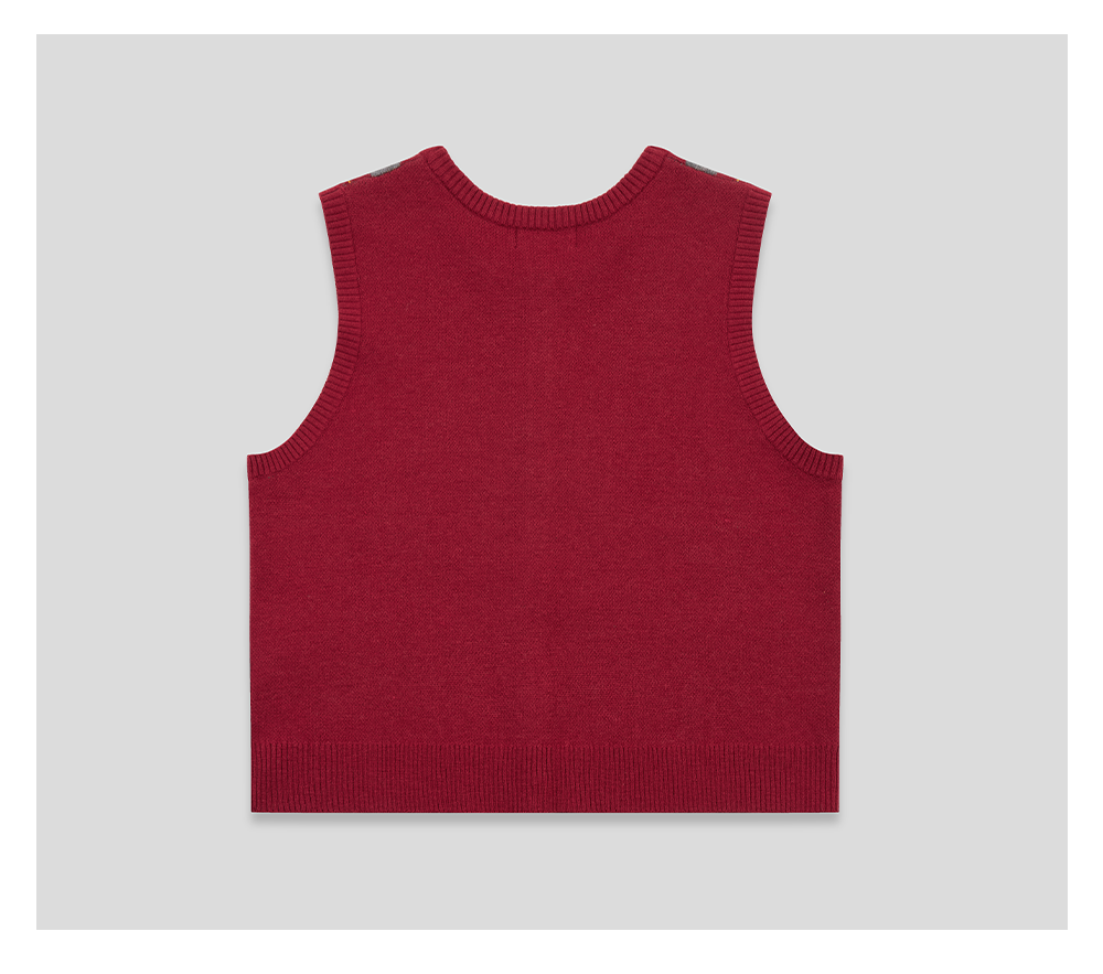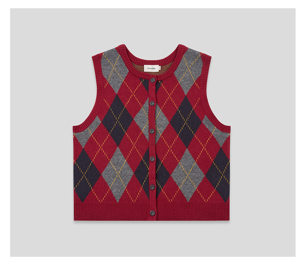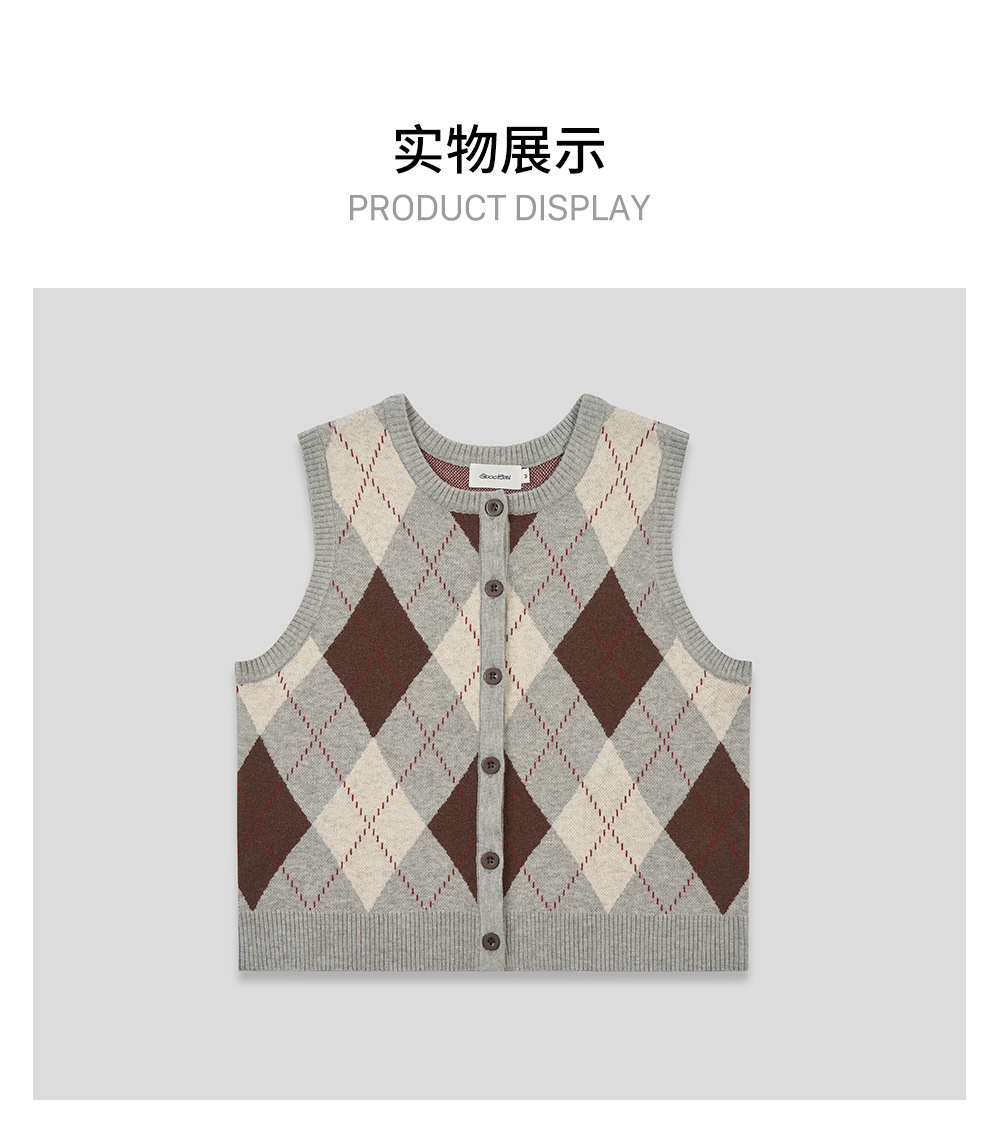 GOODBAI 菱格纹撞色提花圆领纽扣宽松针织背心