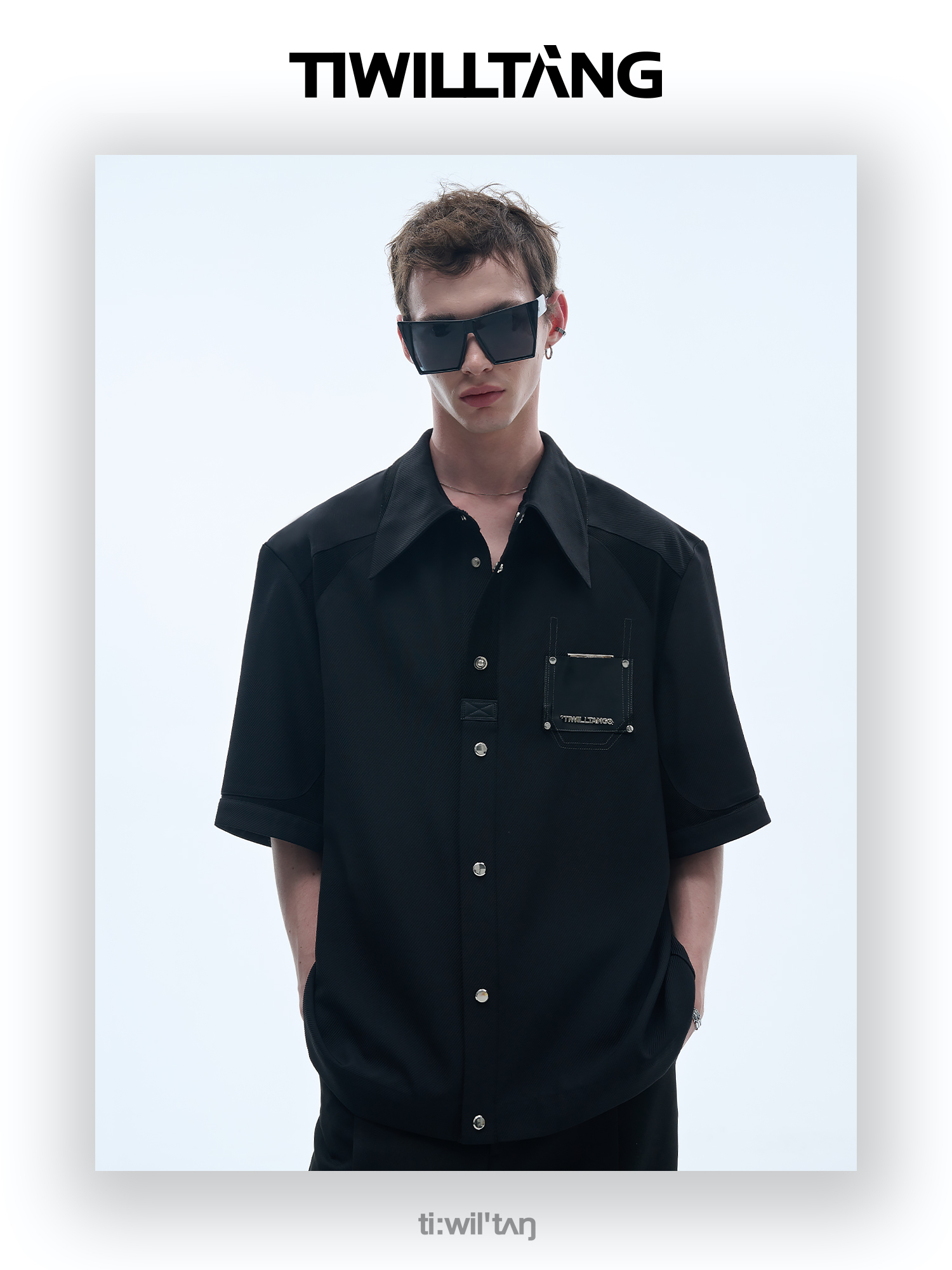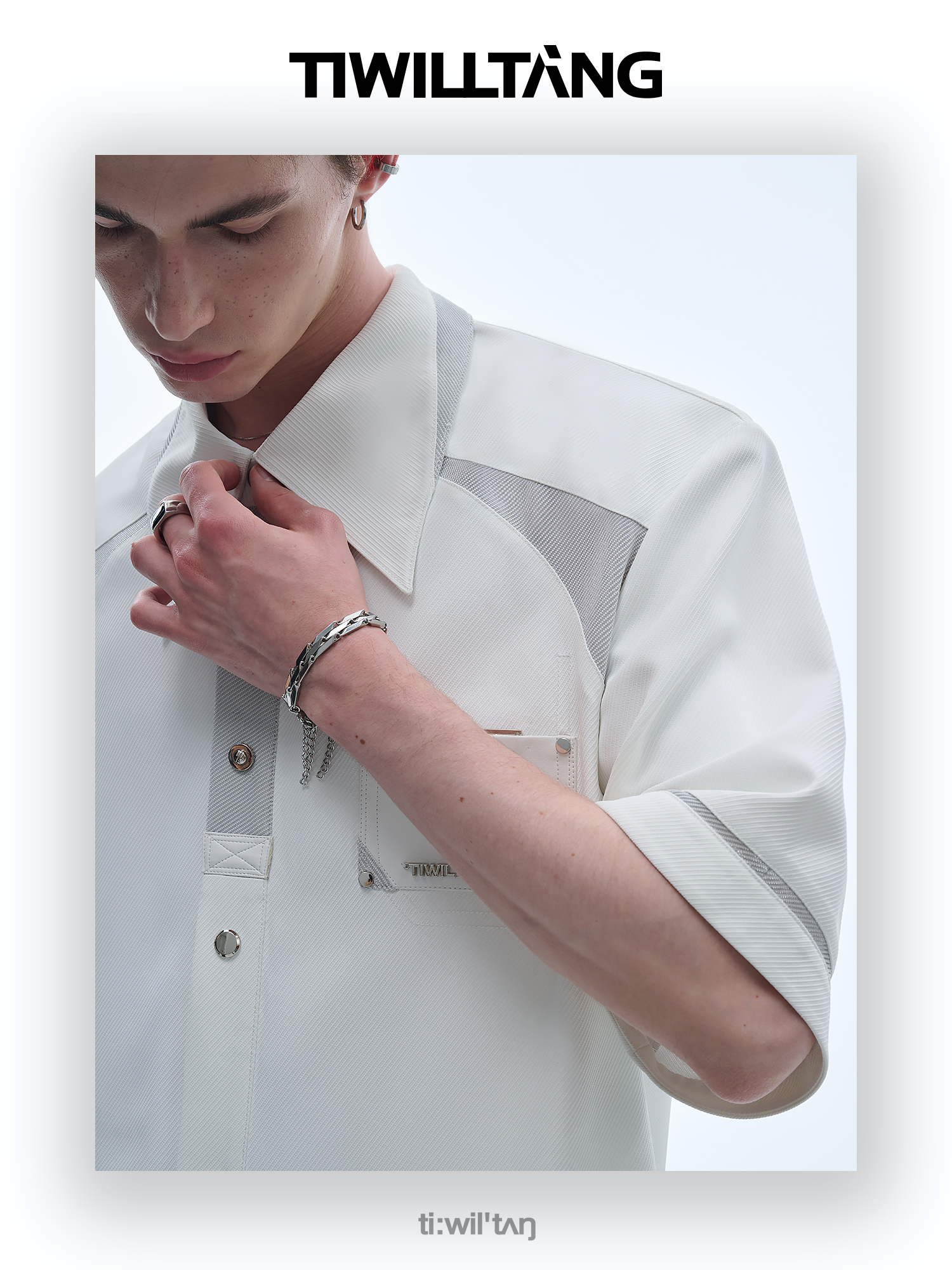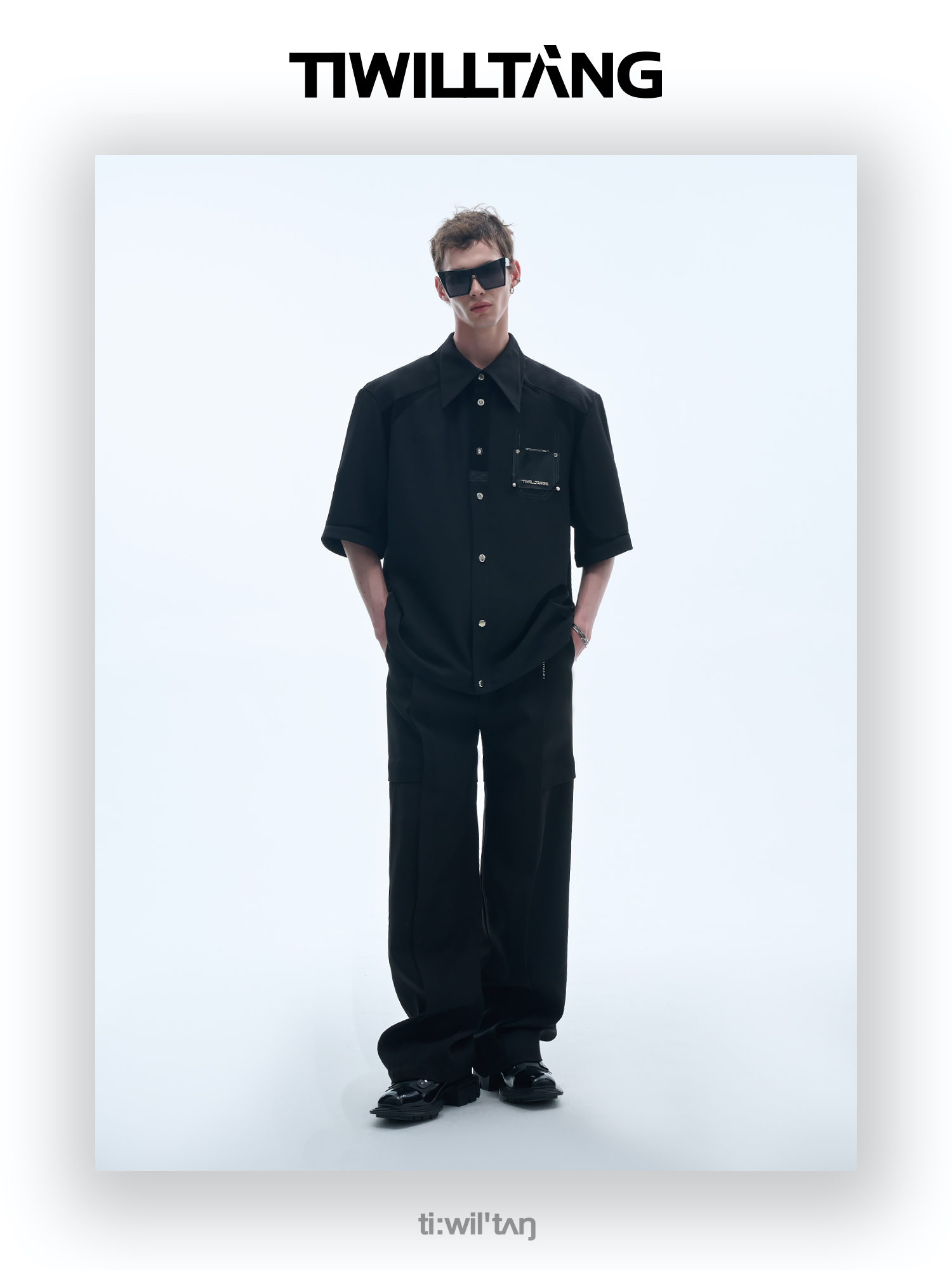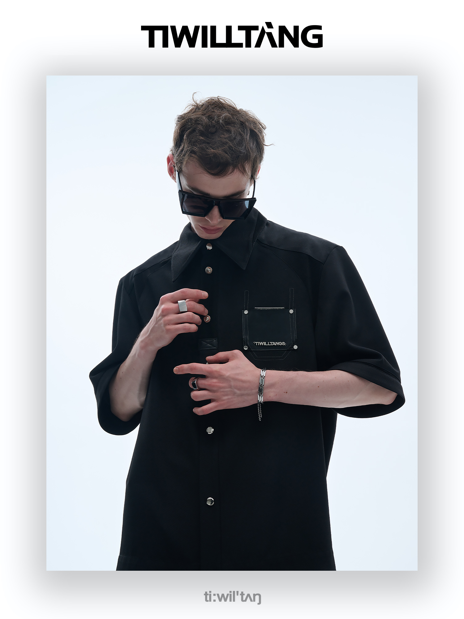 TIWILLTANG 启世录“瀚翊”拼接压线口袋衬衫夏季高级短袖衬衣潮