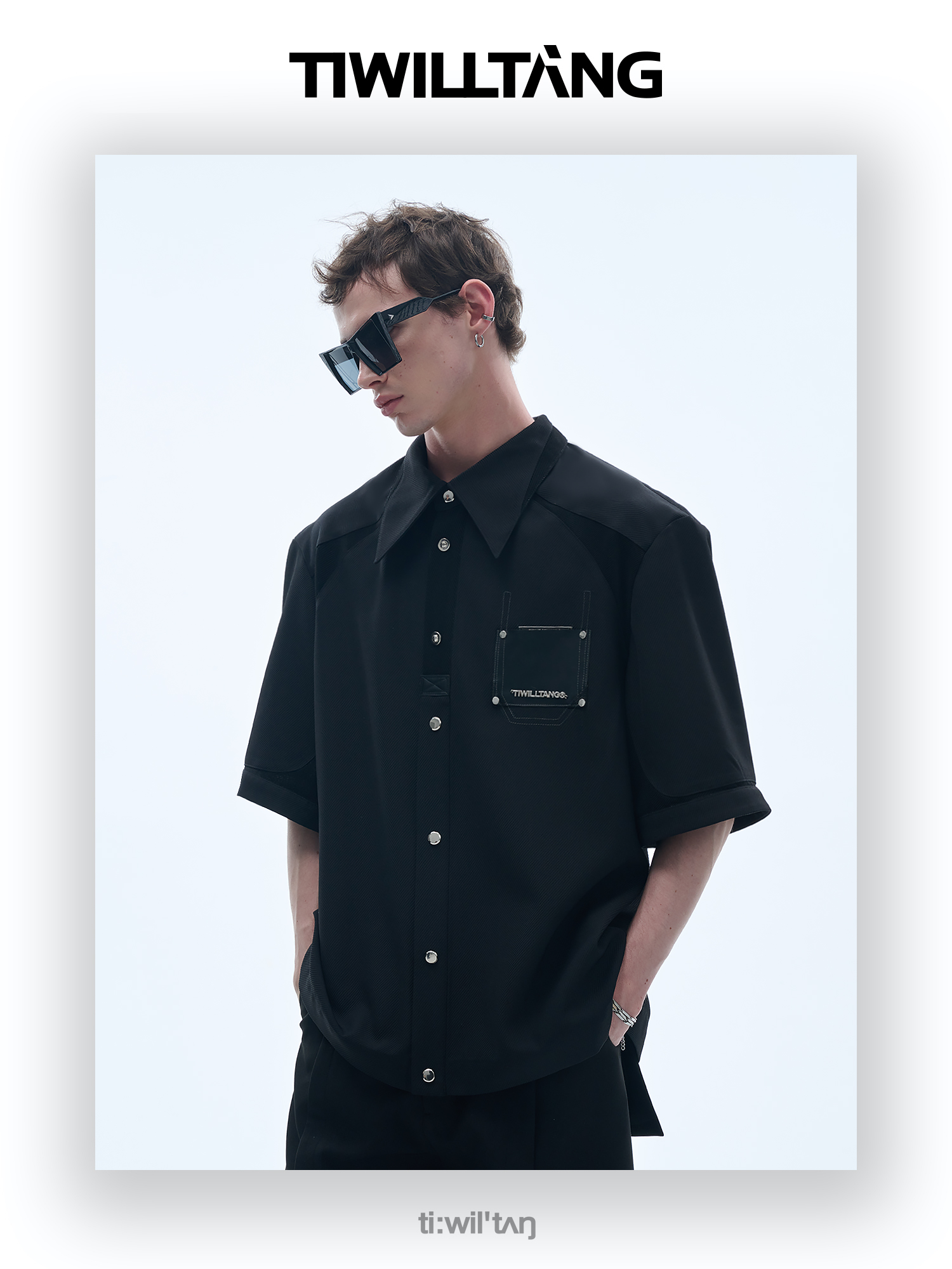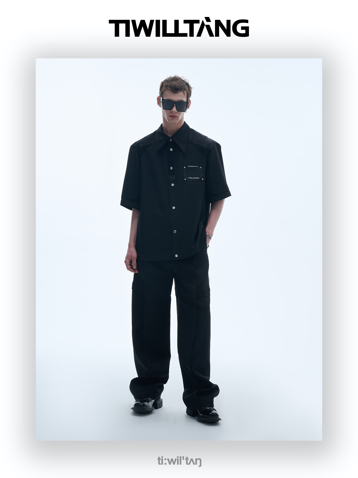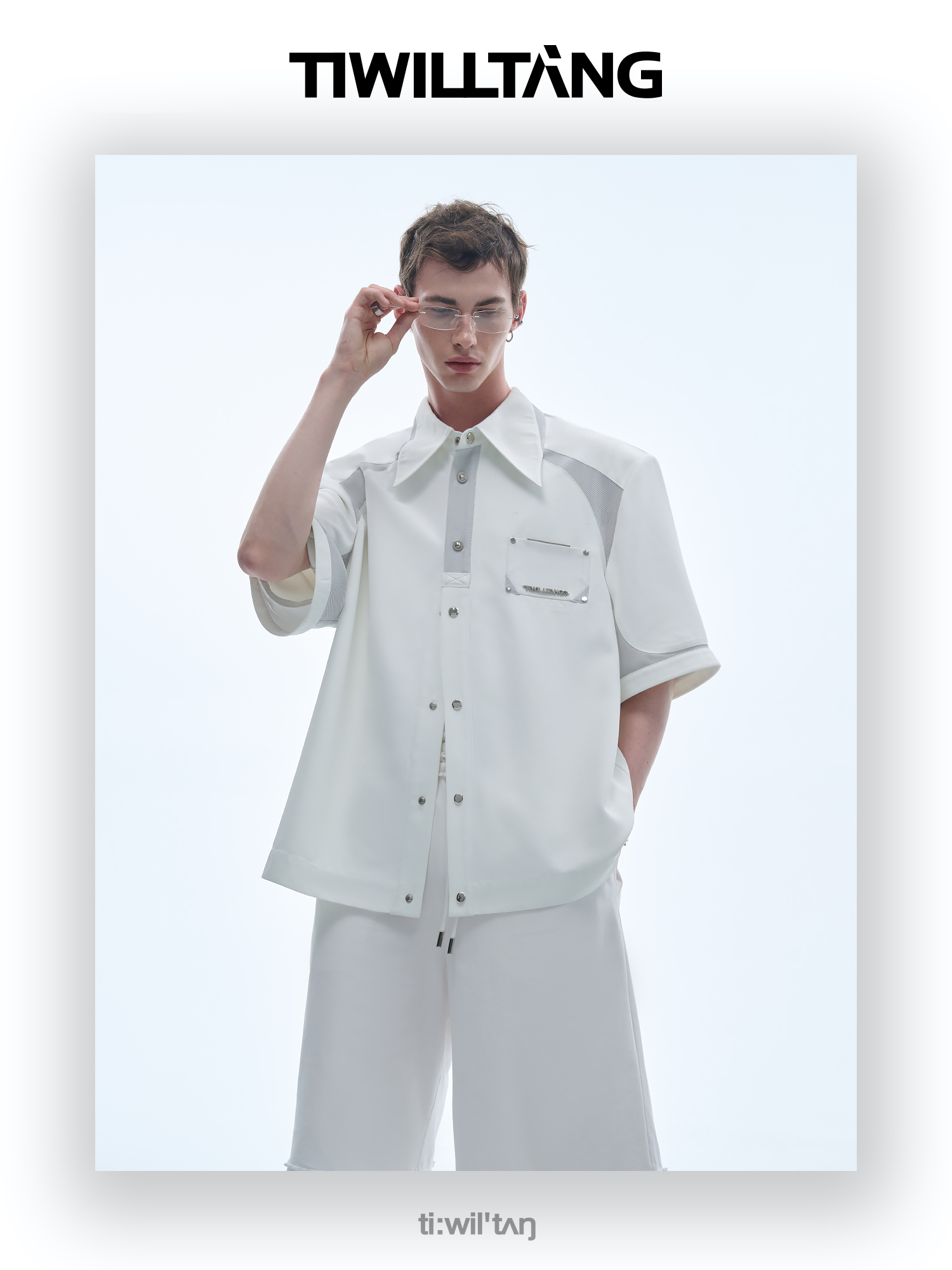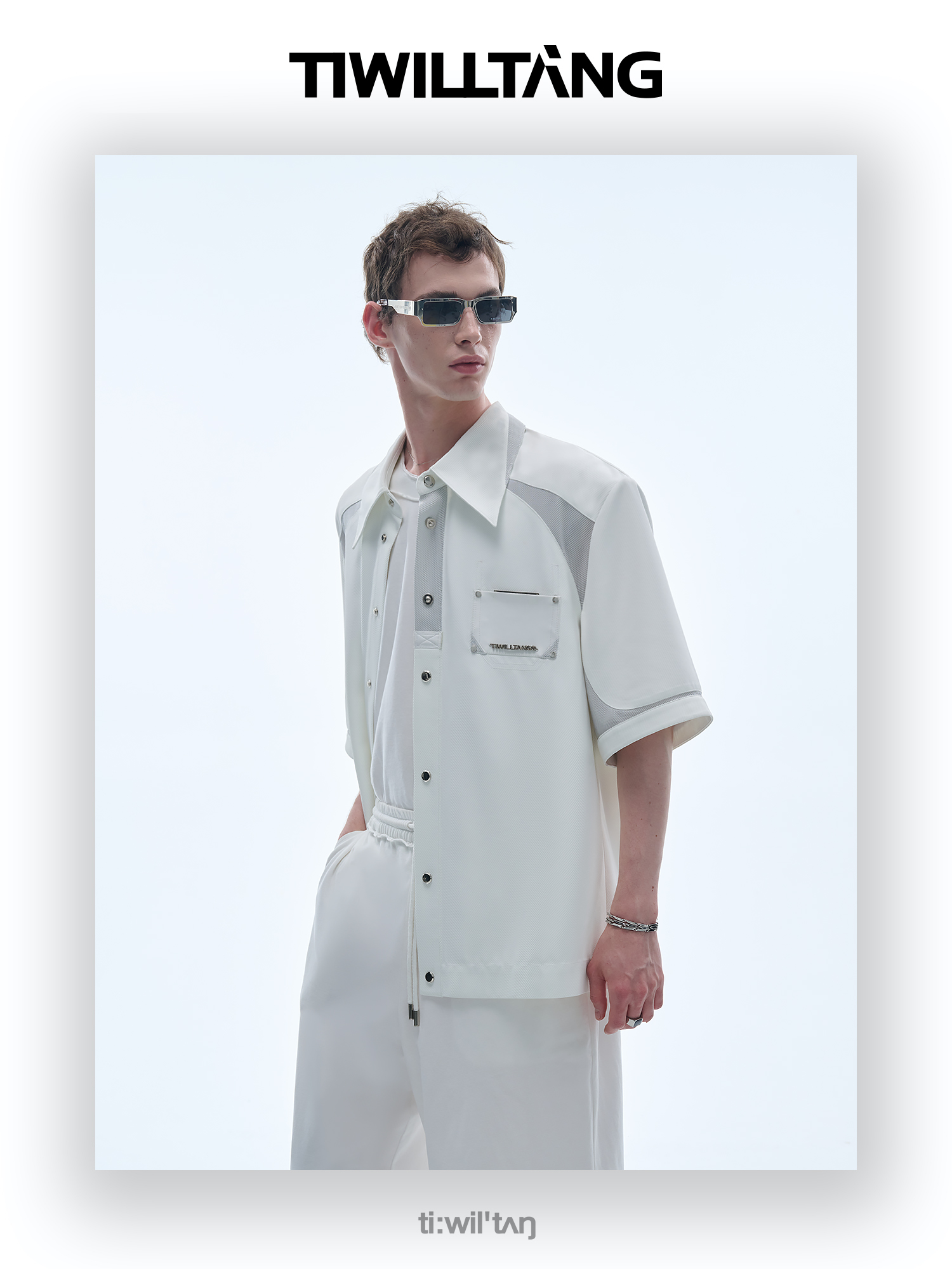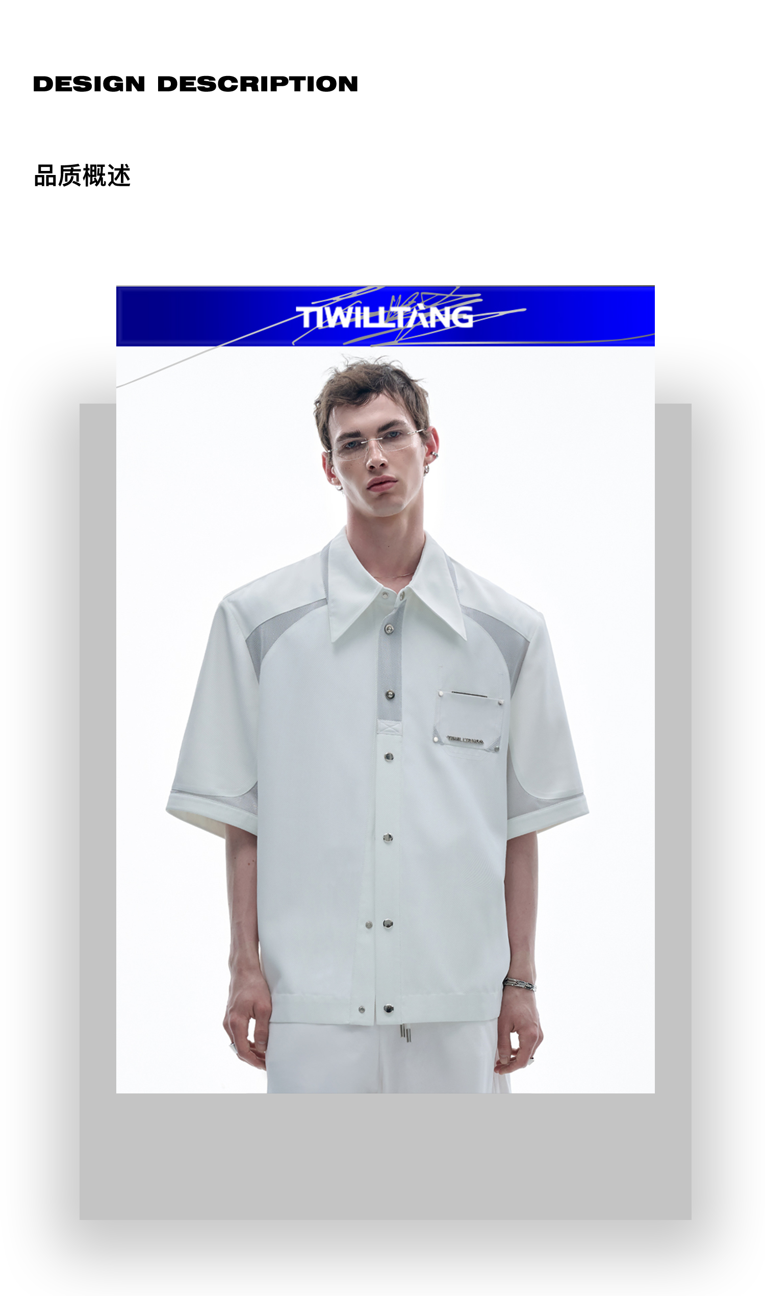 TIWILLTANG 启世录“瀚翊”拼接压线口袋衬衫夏季高级短袖衬衣潮