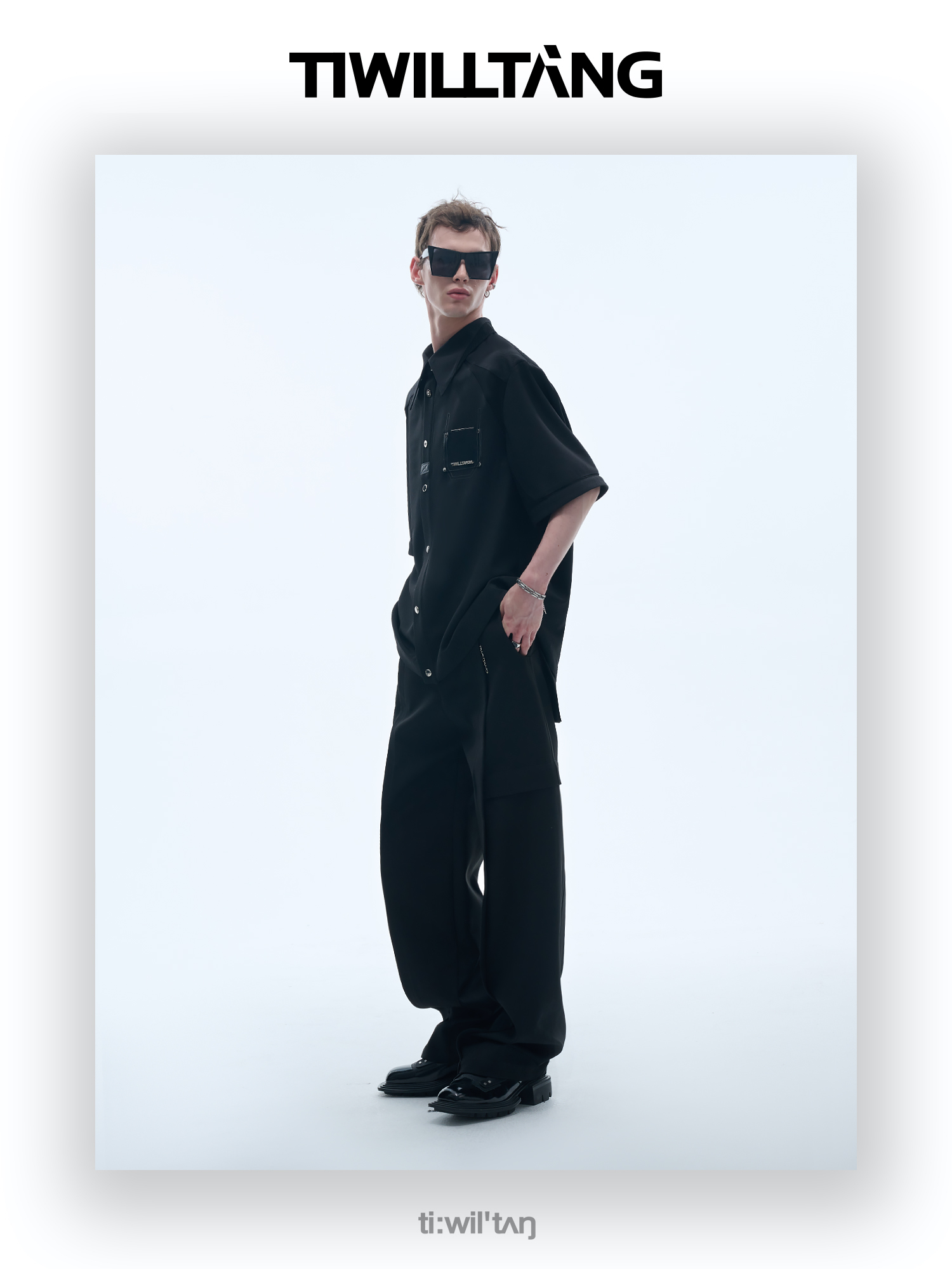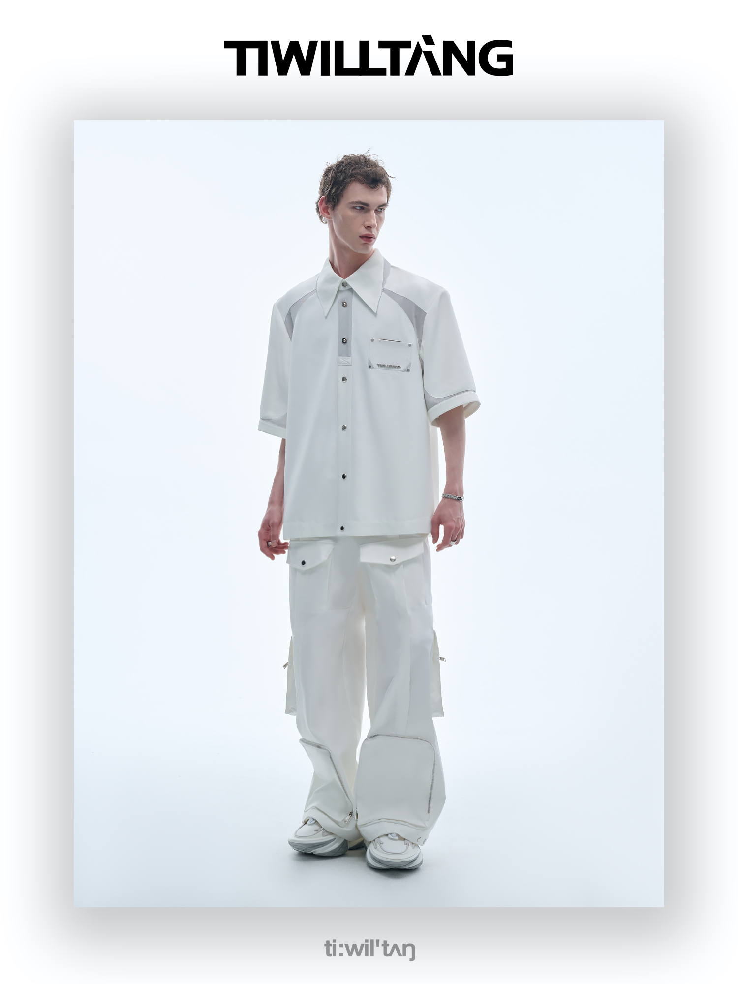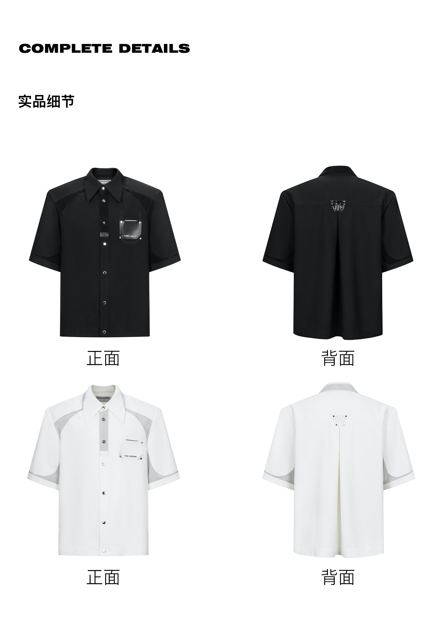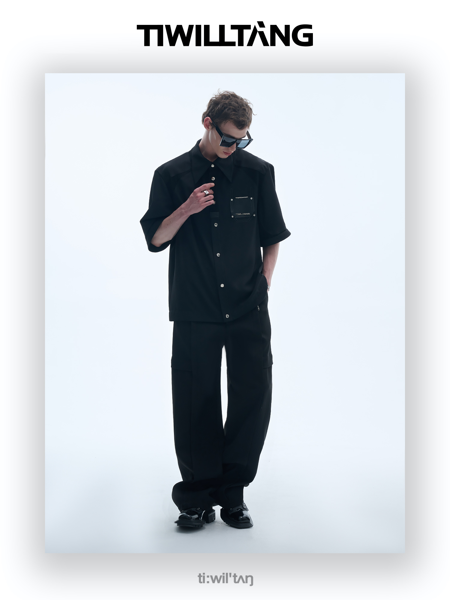 TIWILLTANG 启世录“瀚翊”拼接压线口袋衬衫夏季高级短袖衬衣潮