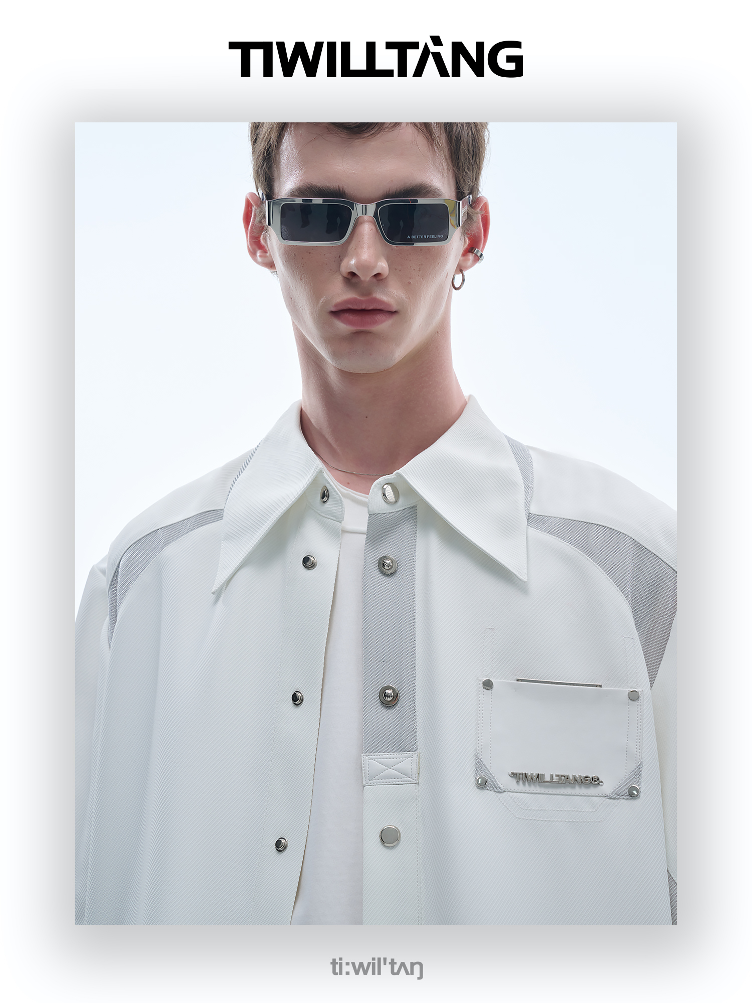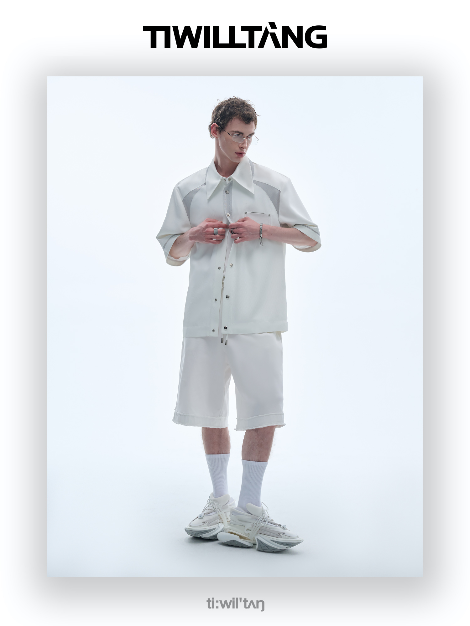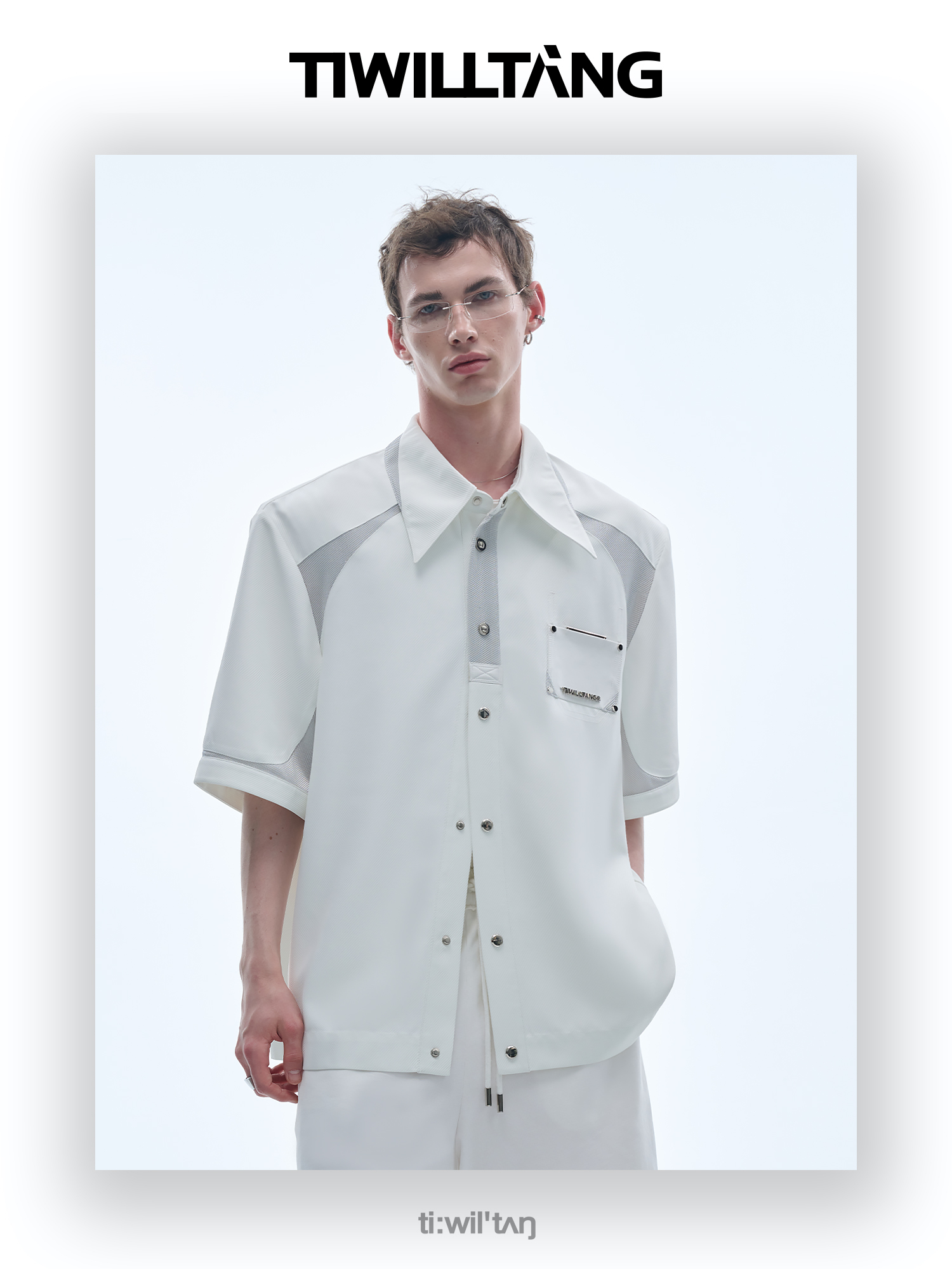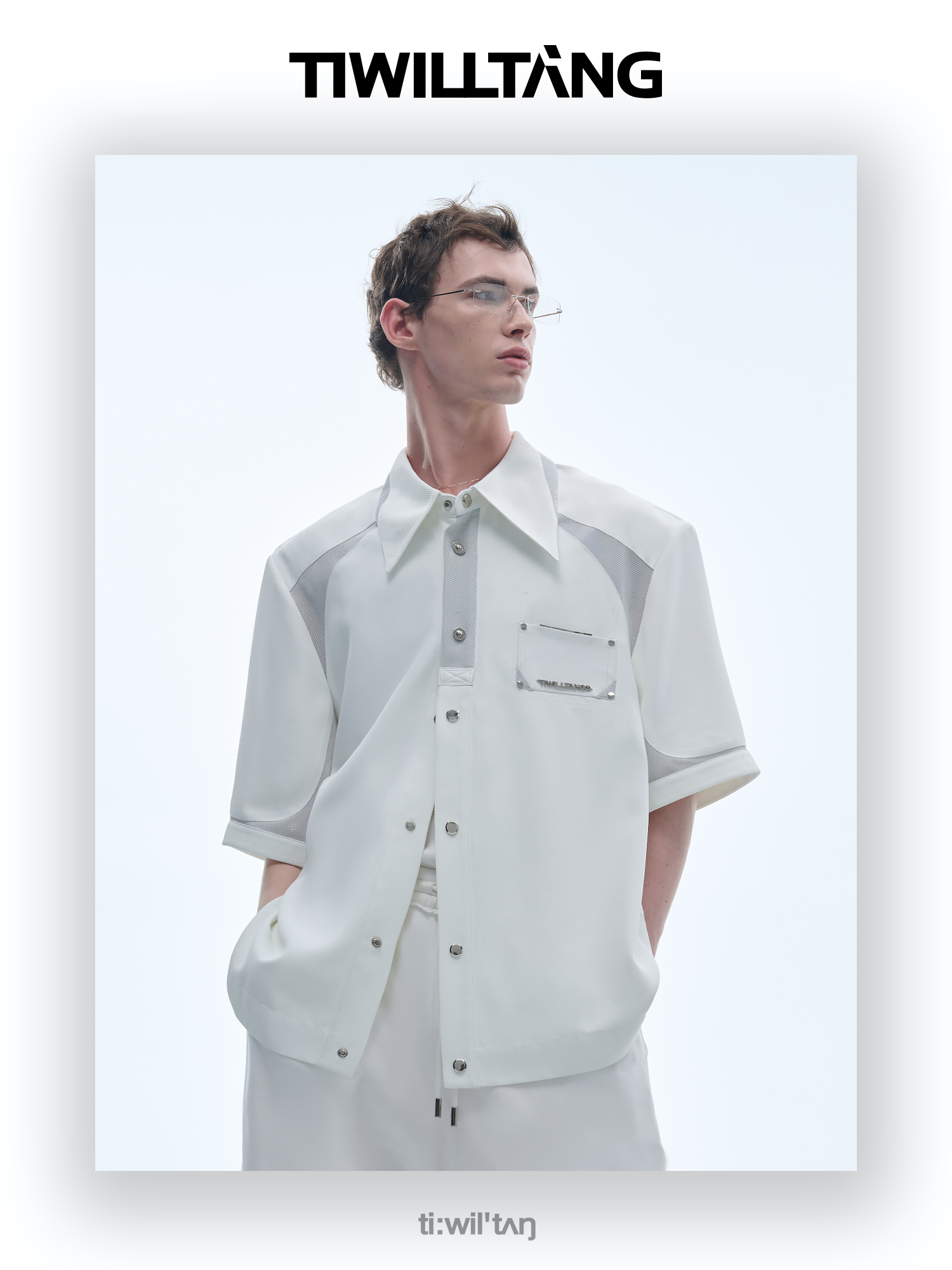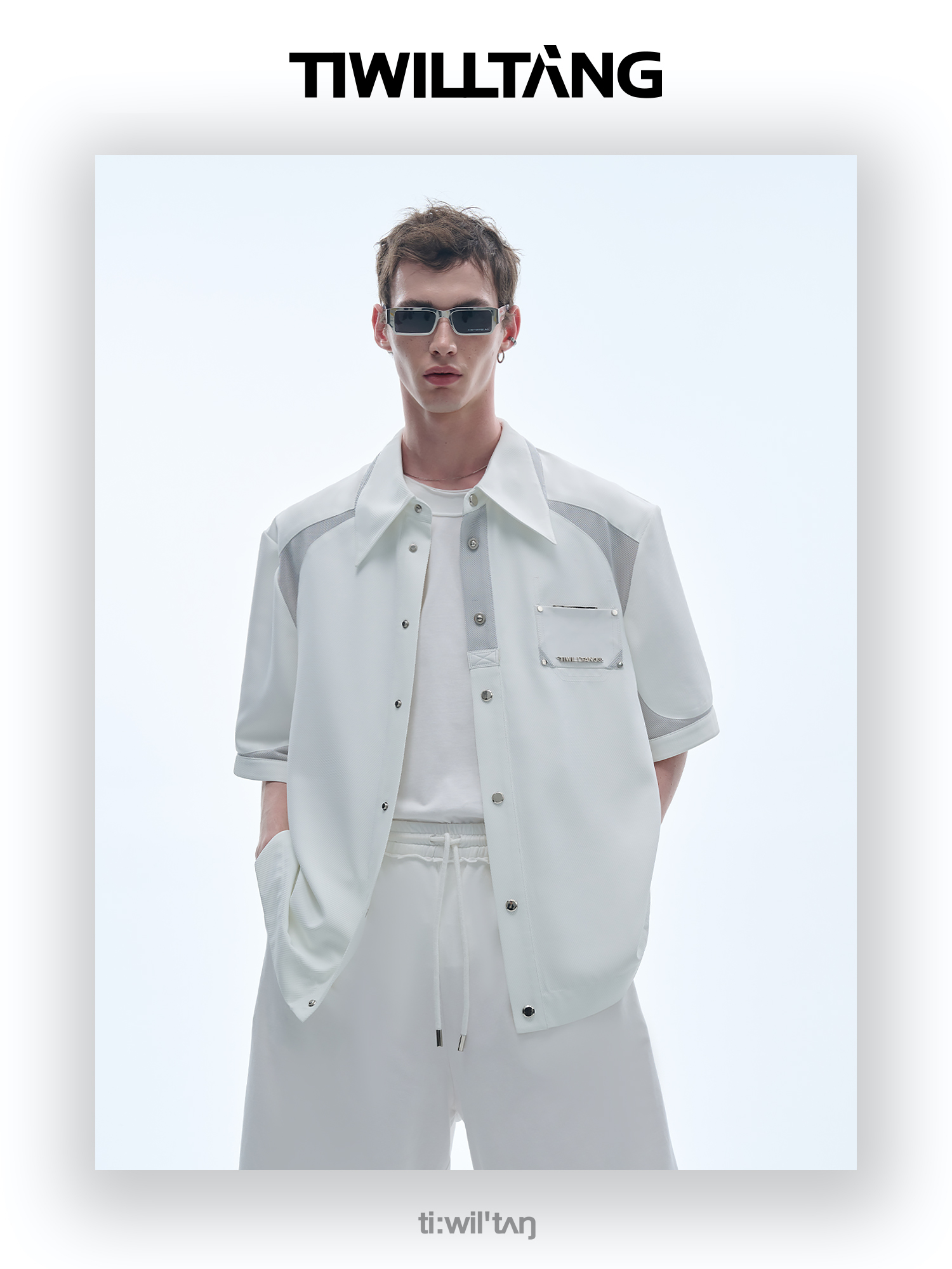 TIWILLTANG 启世录“瀚翊”拼接压线口袋衬衫夏季高级短袖衬衣潮
