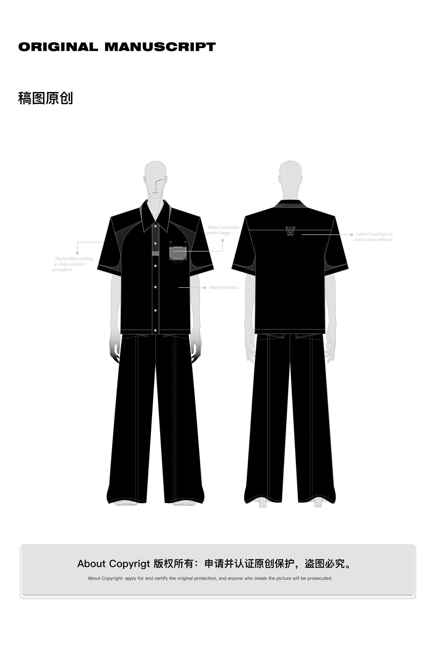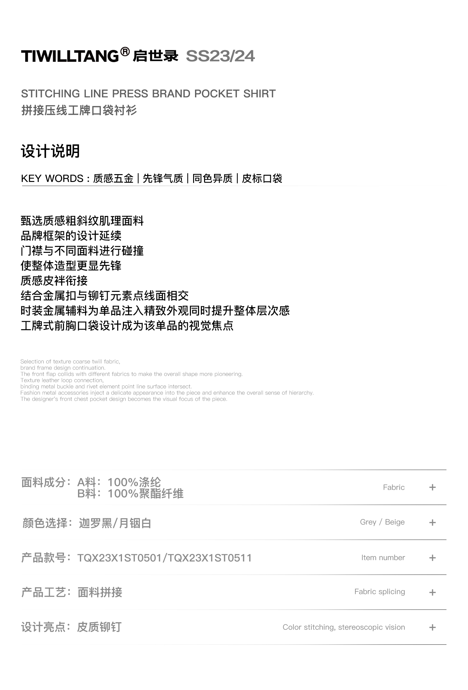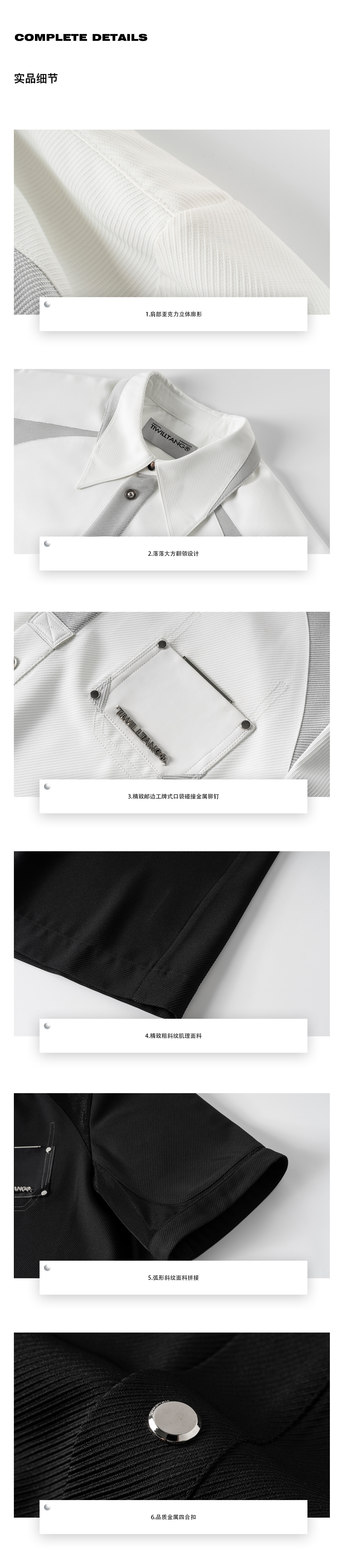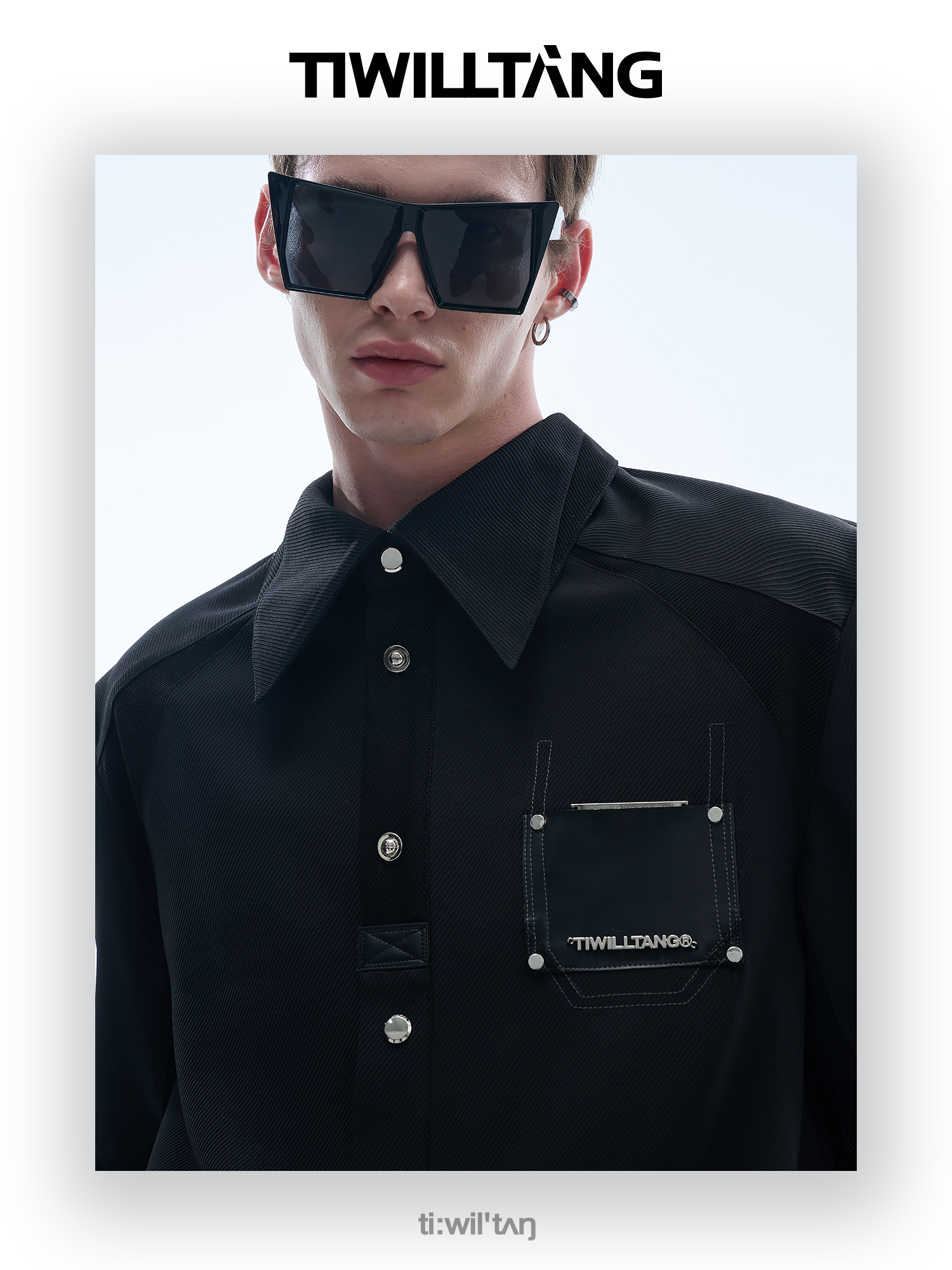 TIWILLTANG 启世录“瀚翊”拼接压线口袋衬衫夏季高级短袖衬衣潮