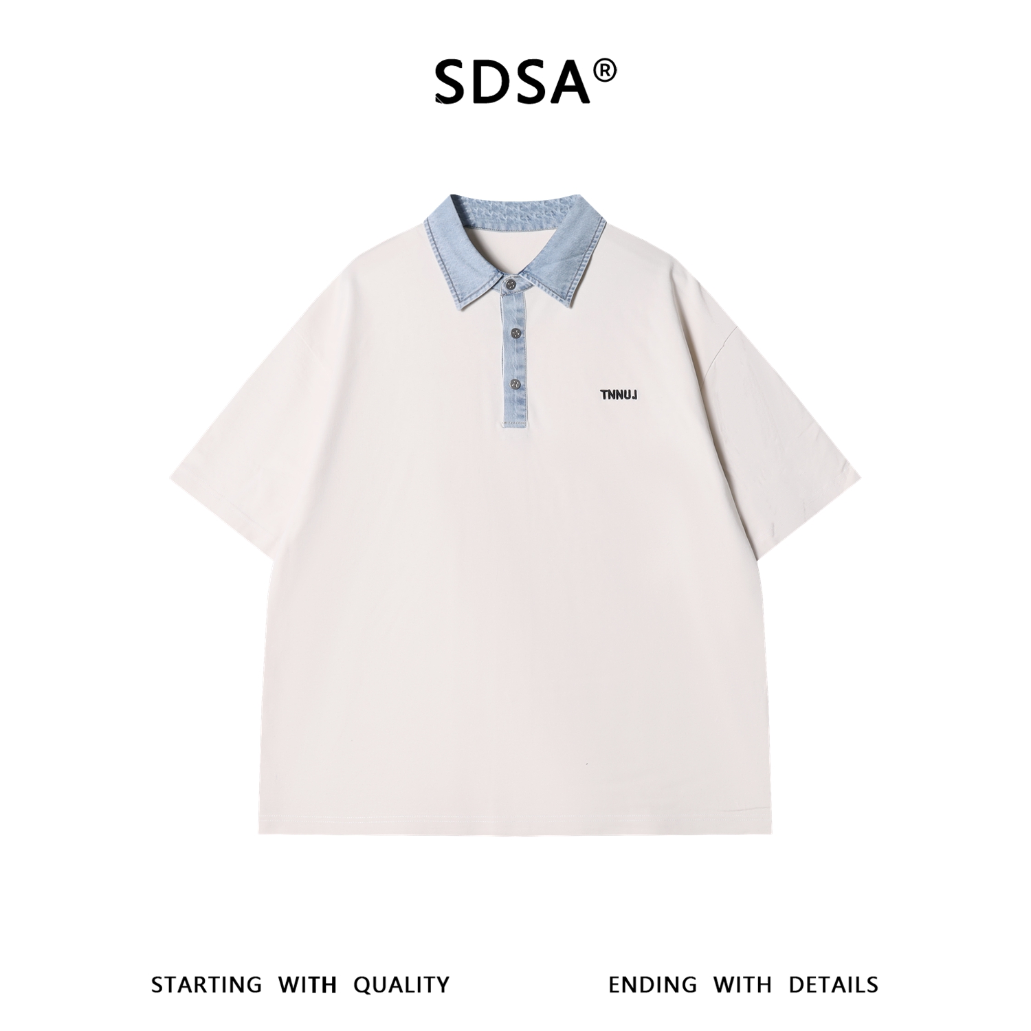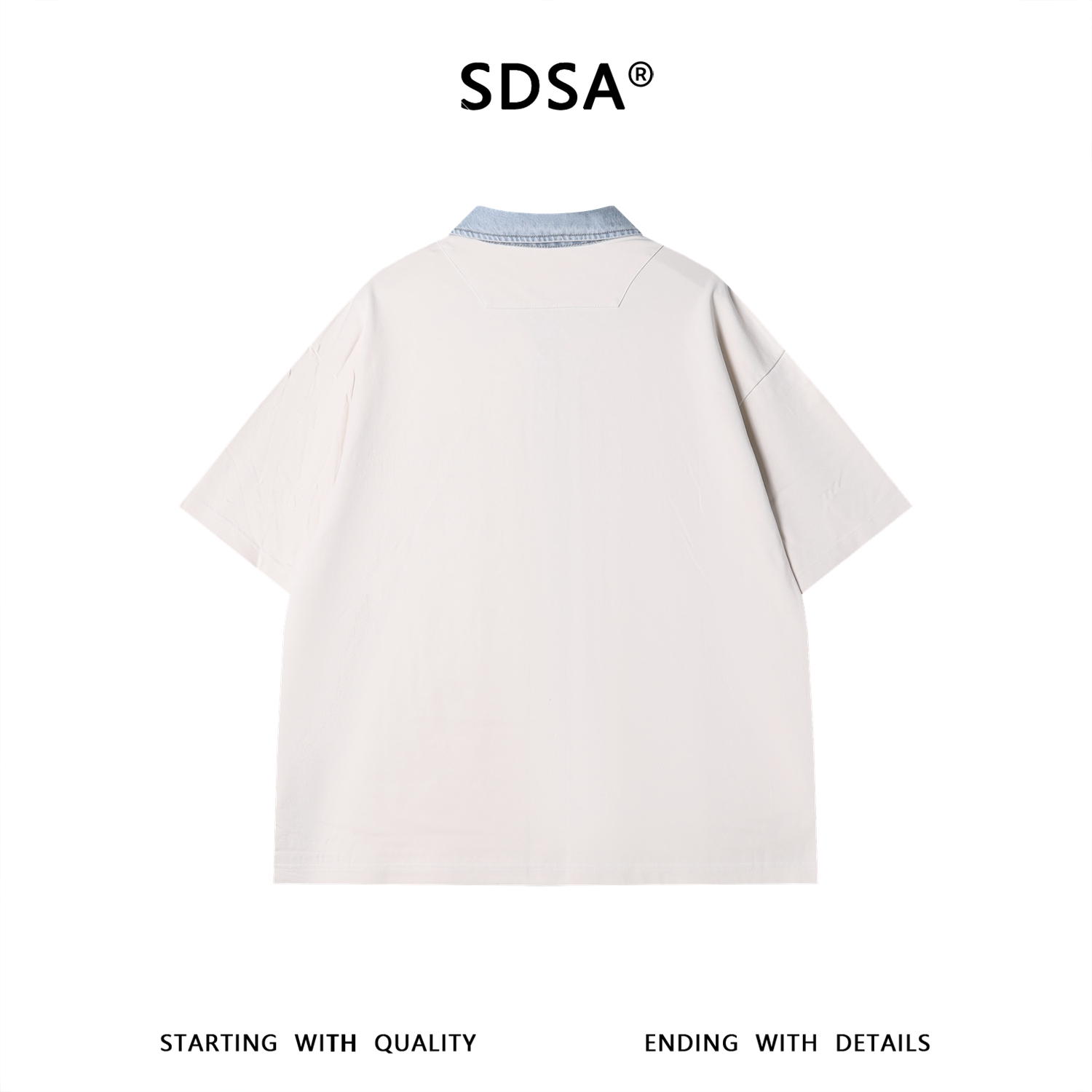 SDSA男装2026新款高贵轻奢美式宽松刺绣字母拼接翻领短袖T恤百搭