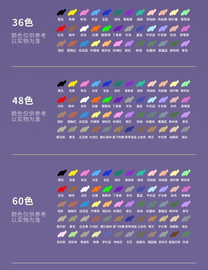 【规格】12色,24色,36色,48色,60色