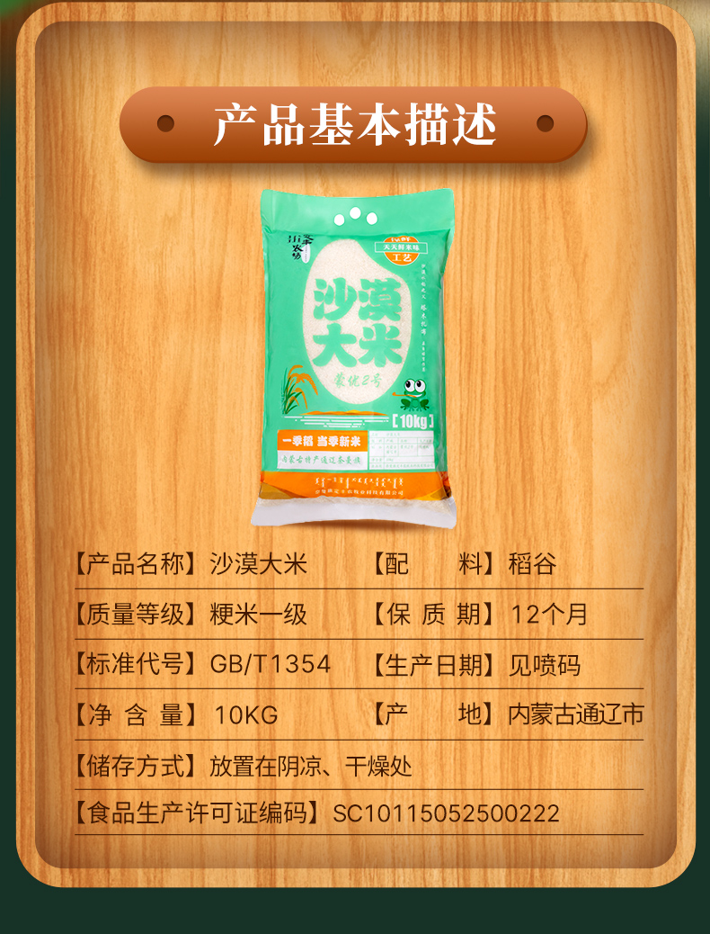 内蒙古通辽市奈曼旗定丰农场蒙优2号沙漠大米10kg/袋