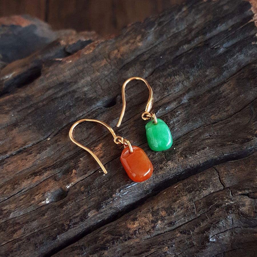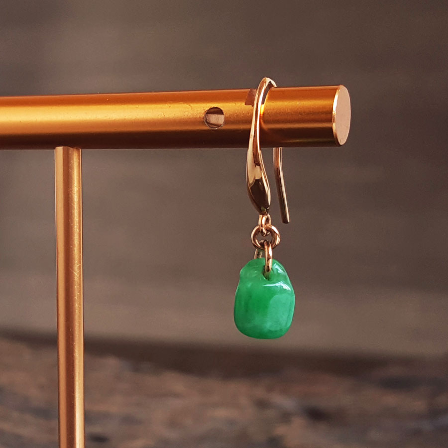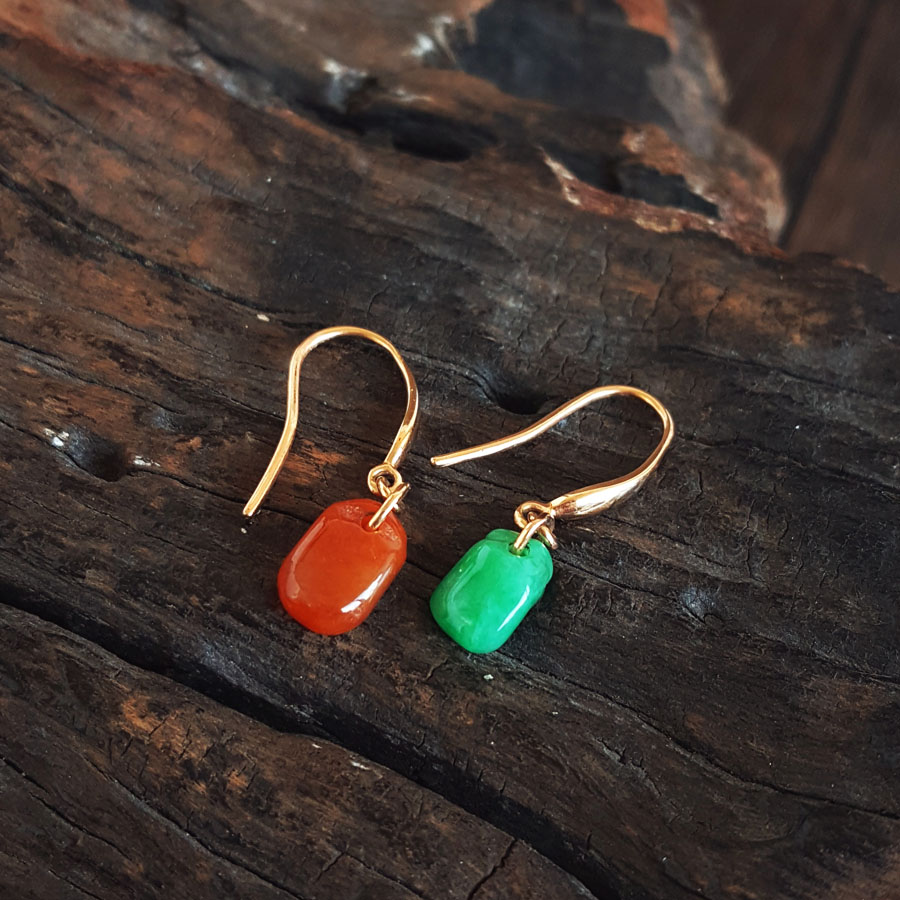 名称 | AU750玫瑰金镶天然细腻糯种方型红翡绿翠鸳鸯款翡翠耳坠 |
