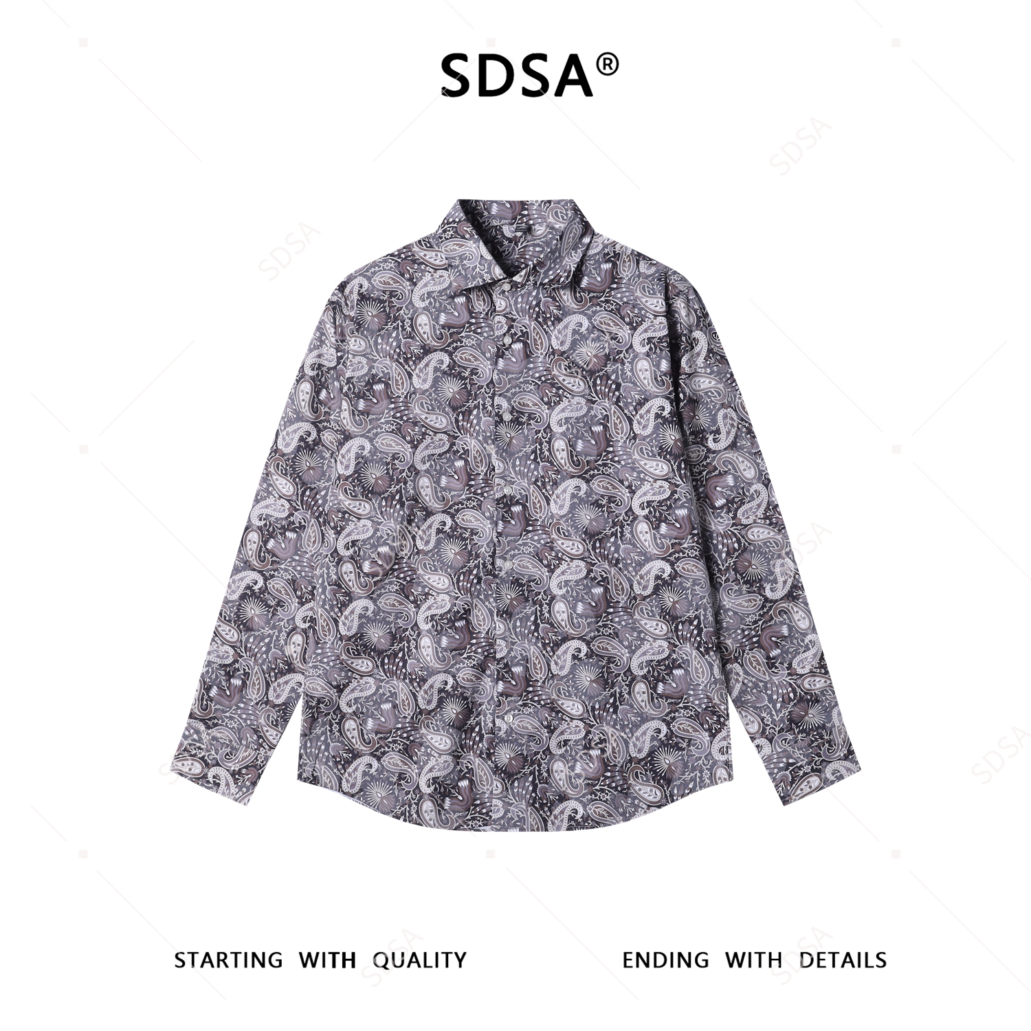 3554SDSA男士秋冬新款痞帅男装复古撞色腰果花卉长袖衬衫百搭时尚衬衣