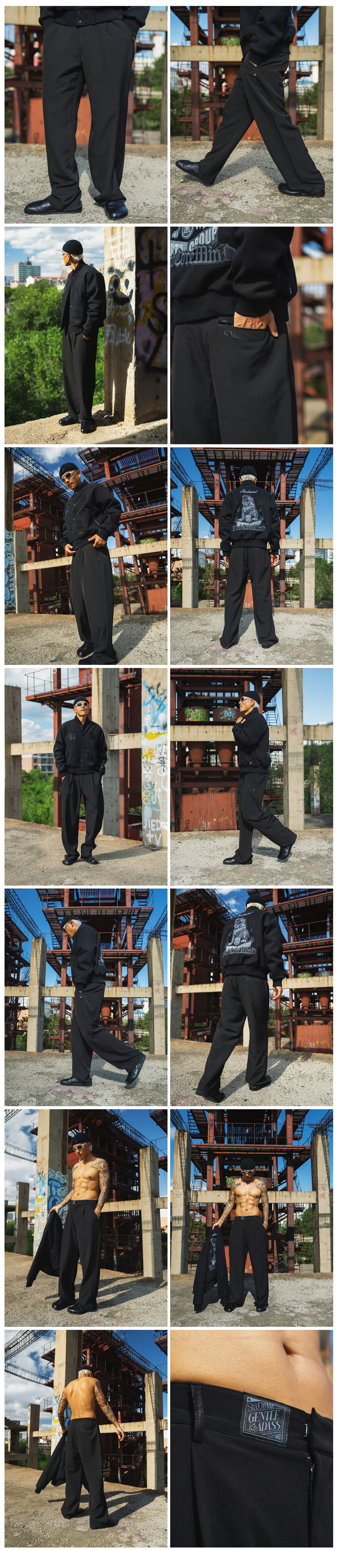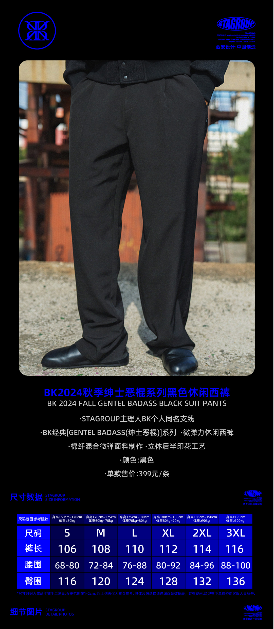 BK2024秋季黑色宽松微弹休闲西裤