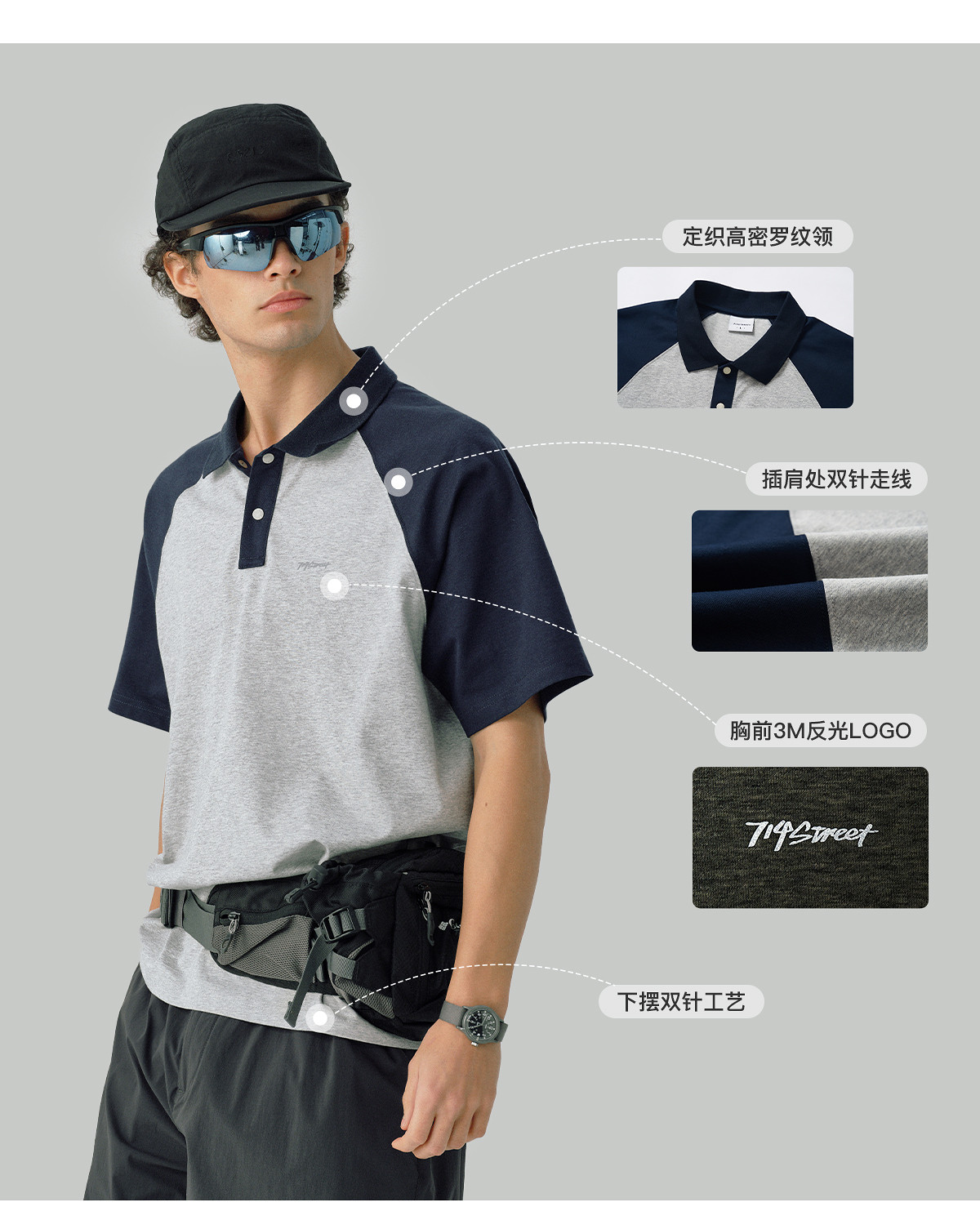 714street撞色插肩索罗娜运动POLO衫男士夏季凉感速干短袖防晒衣
