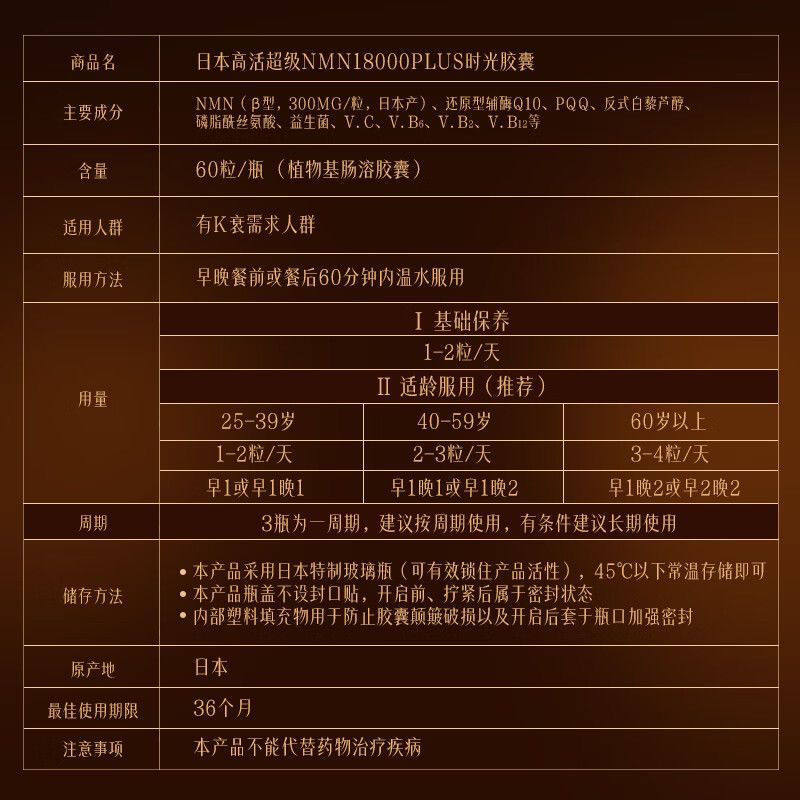 日本高活NMN18000Plus时光胶囊生命基因衰老PQQ补充nad+原装进口