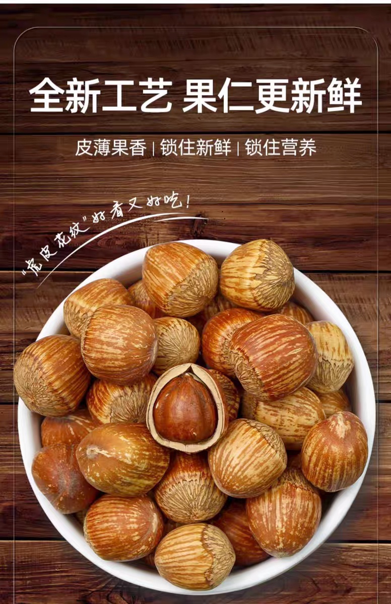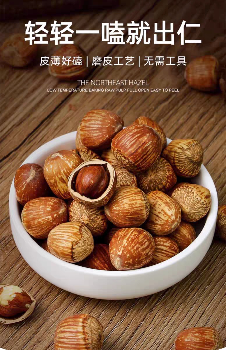 山苑手拍榛子送夹子新货东北特产虎皮大榛子原味达维榛子炒熟即食500g