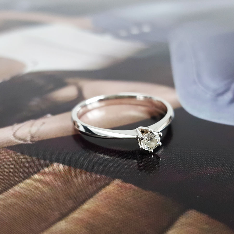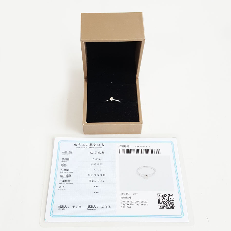 名称 | AU750白金经典简约六爪款0.136克拉钻石戒指 |