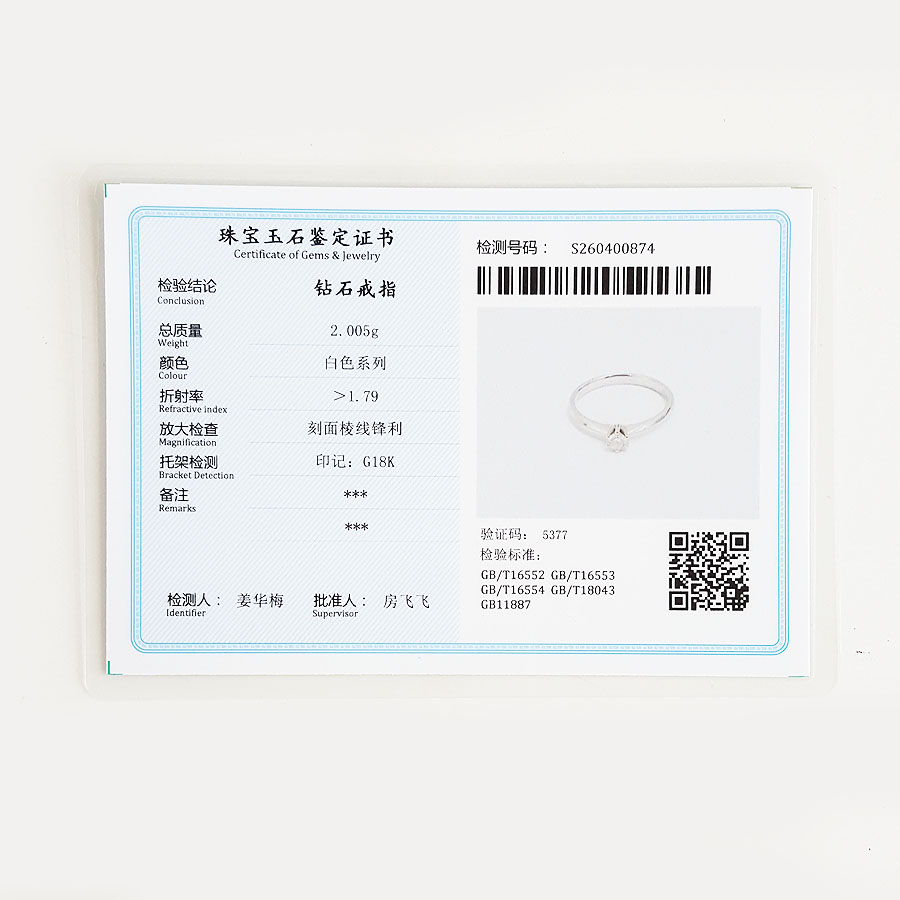 颜色/材质 | 白色/钻石/AU750白金 |