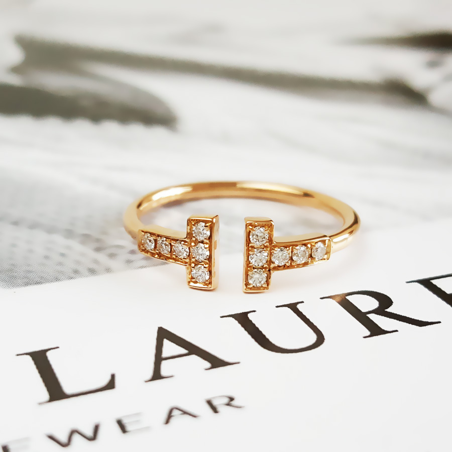 款式 | 18K玫瑰金镶钻双T开口线圈戒指 |