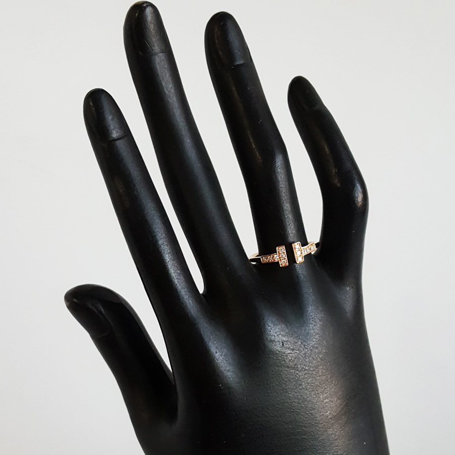 【95新】Tiffany & Co.蒂芙尼Tiffany T系列18K玫瑰金镶钻双T开口线圈戒指55号女士121225TJ18