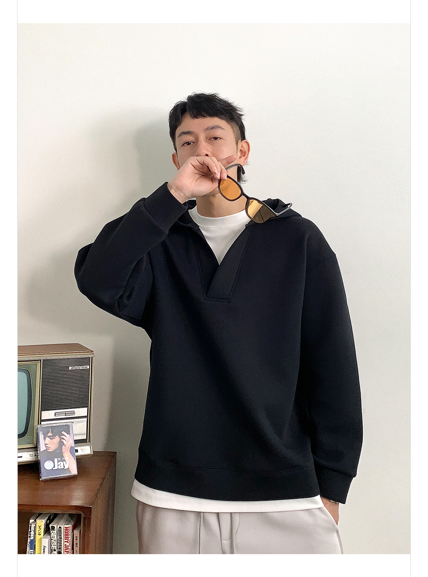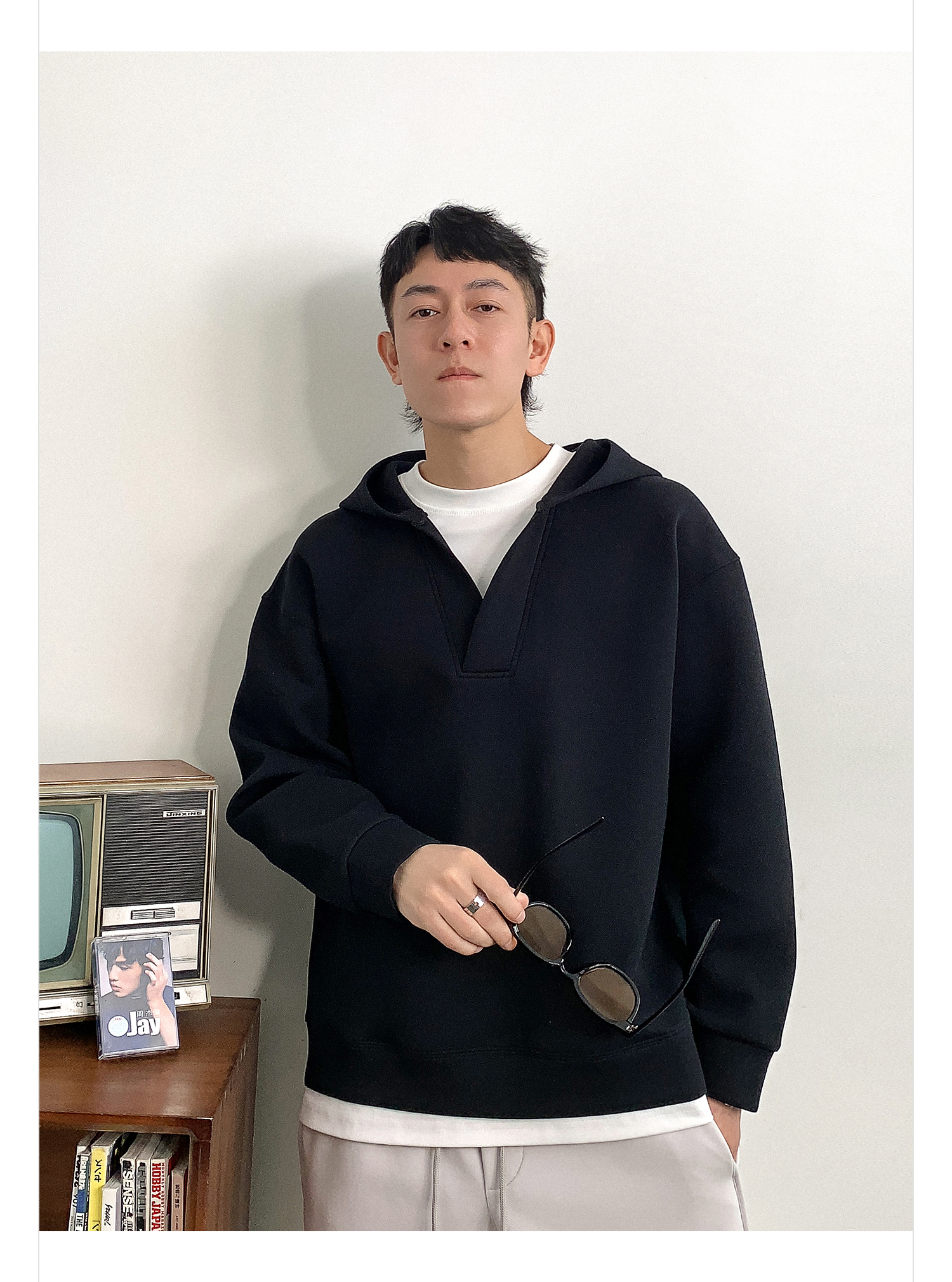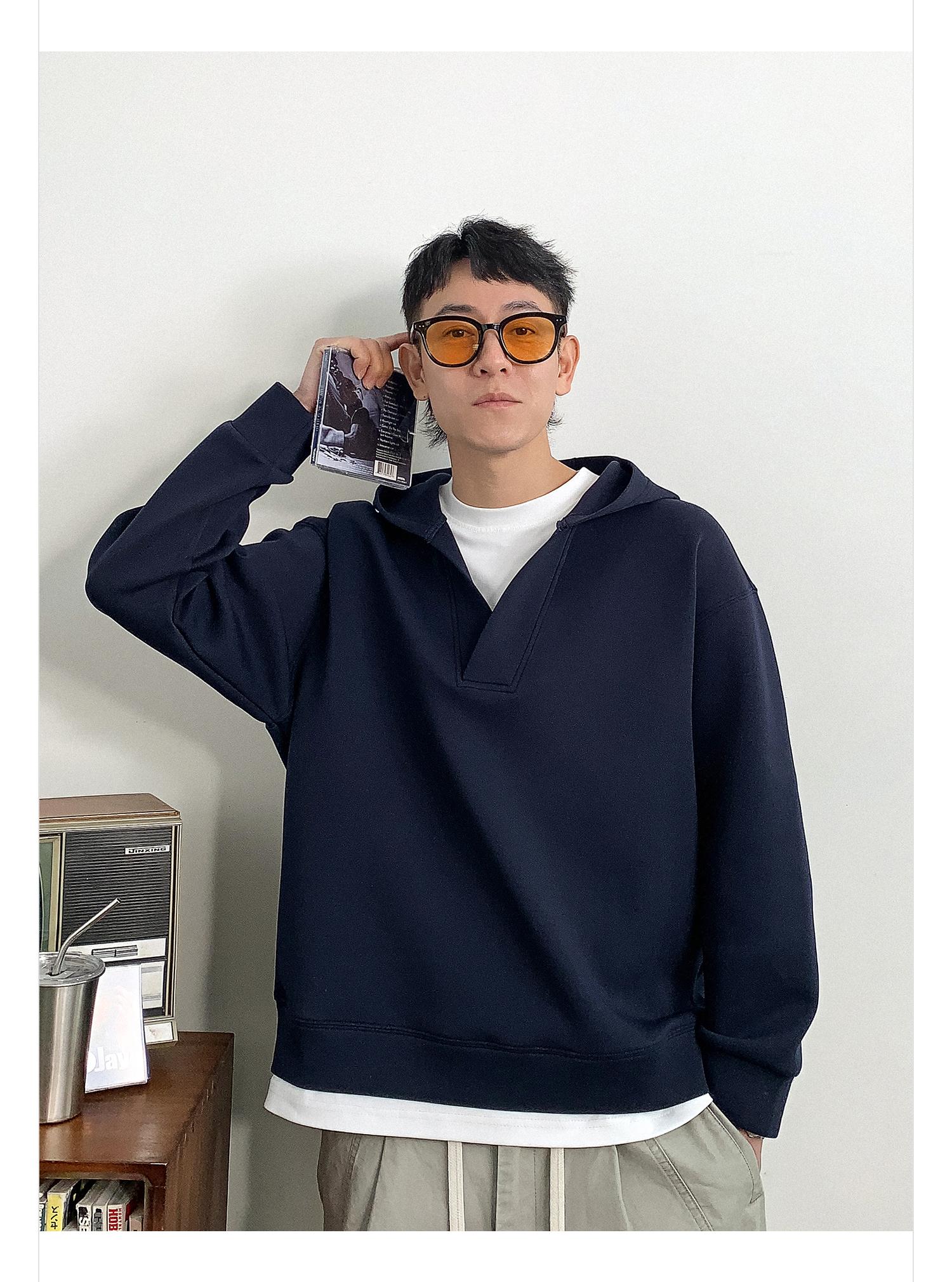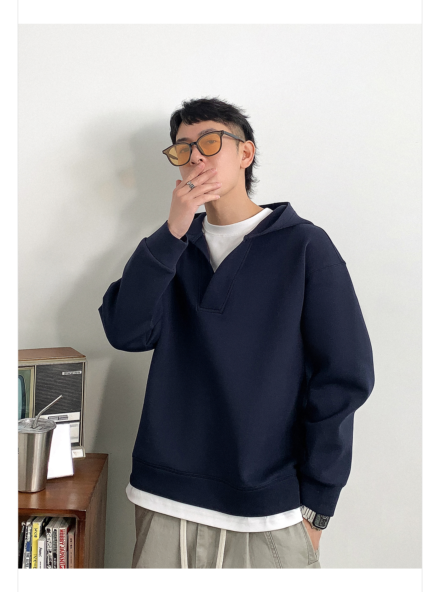 徐太浪简约纯色百搭假两件卫衣男春秋潮牌宽松休闲运动风帽衫外套