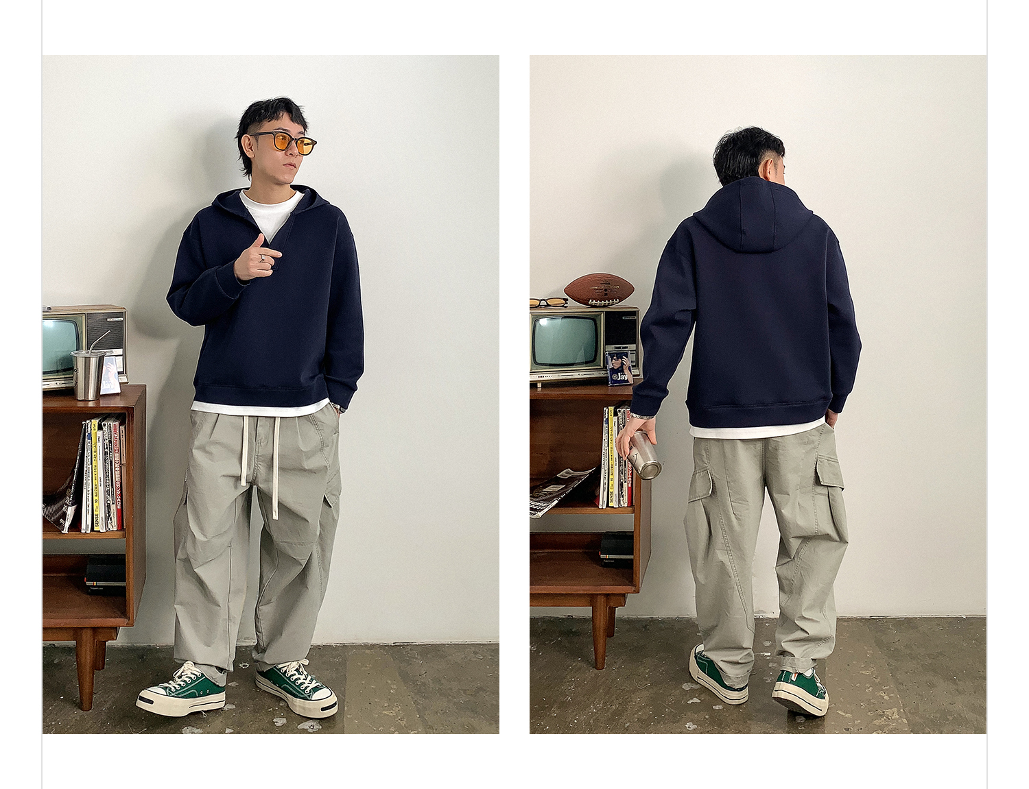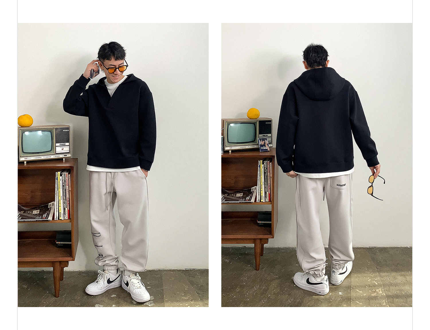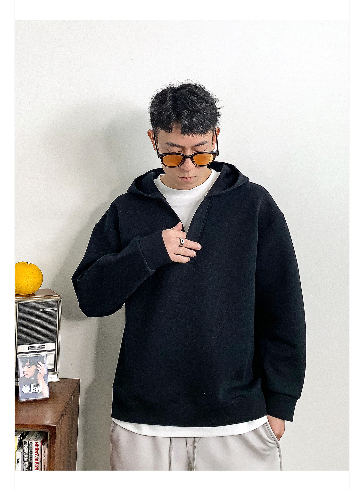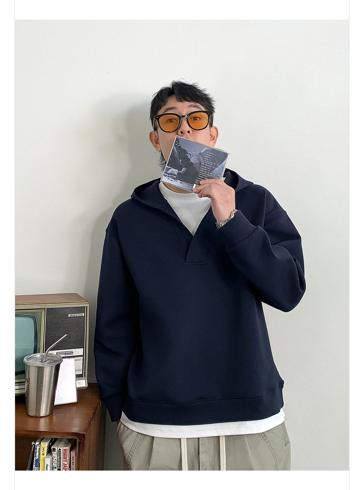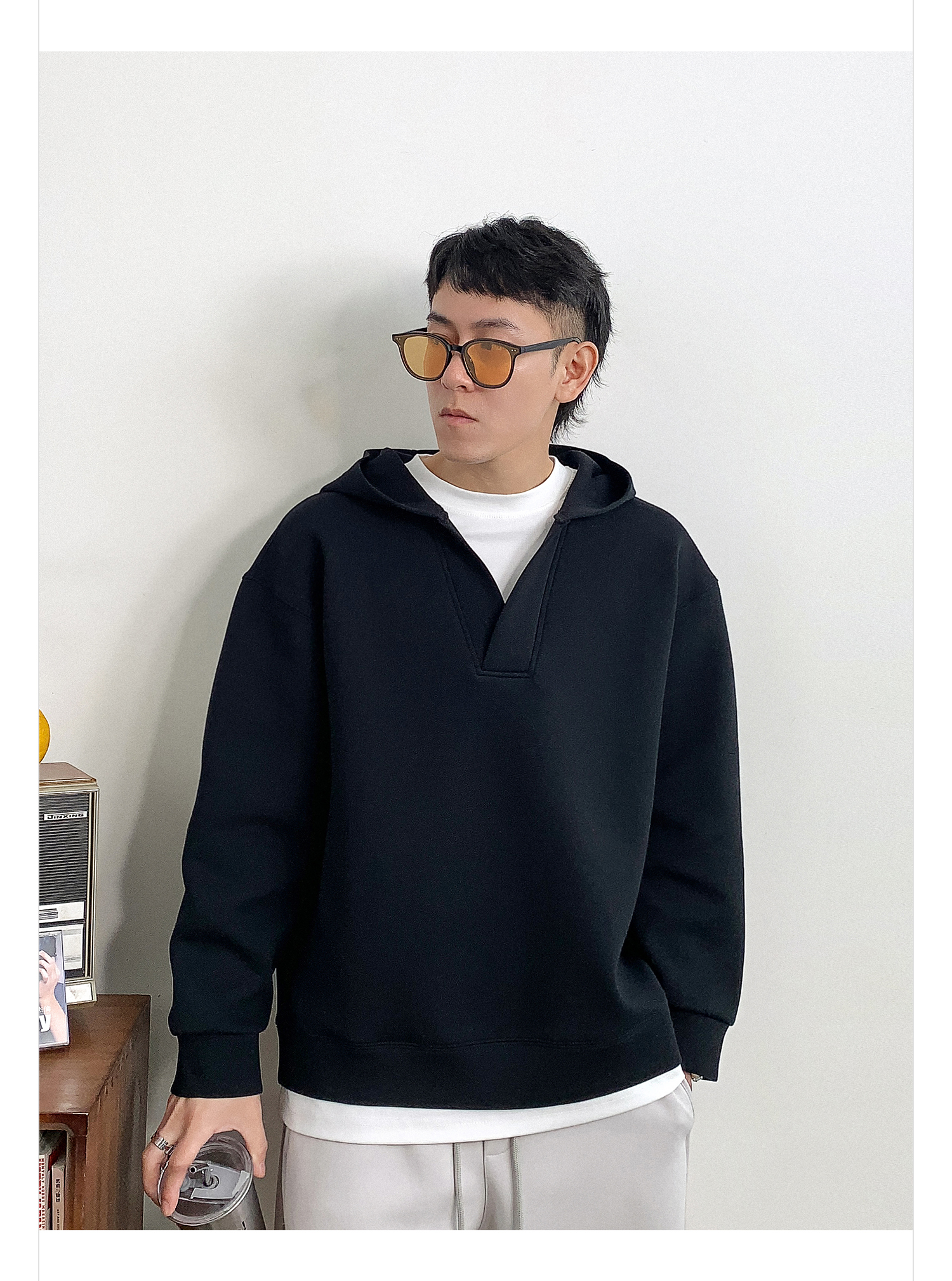 徐太浪简约纯色百搭假两件卫衣男春秋潮牌宽松休闲运动风帽衫外套