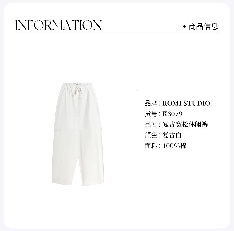ROMI STUDIO复古白宽松显瘦休闲百搭简约裤K3079