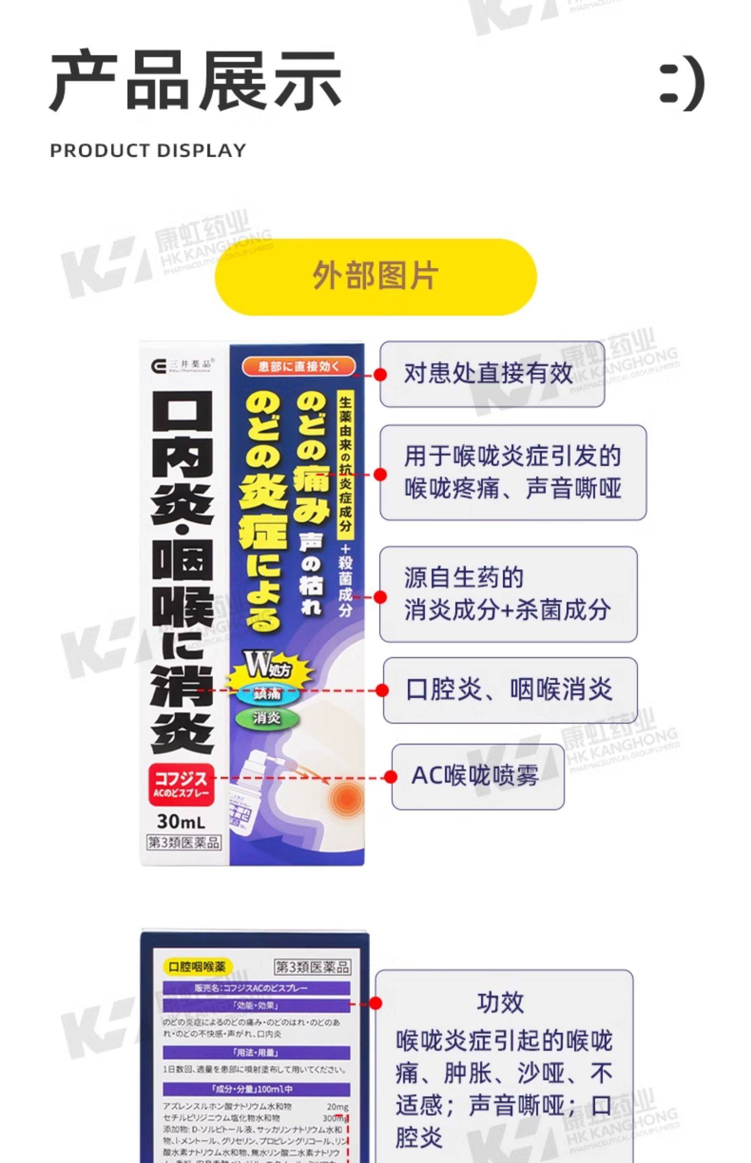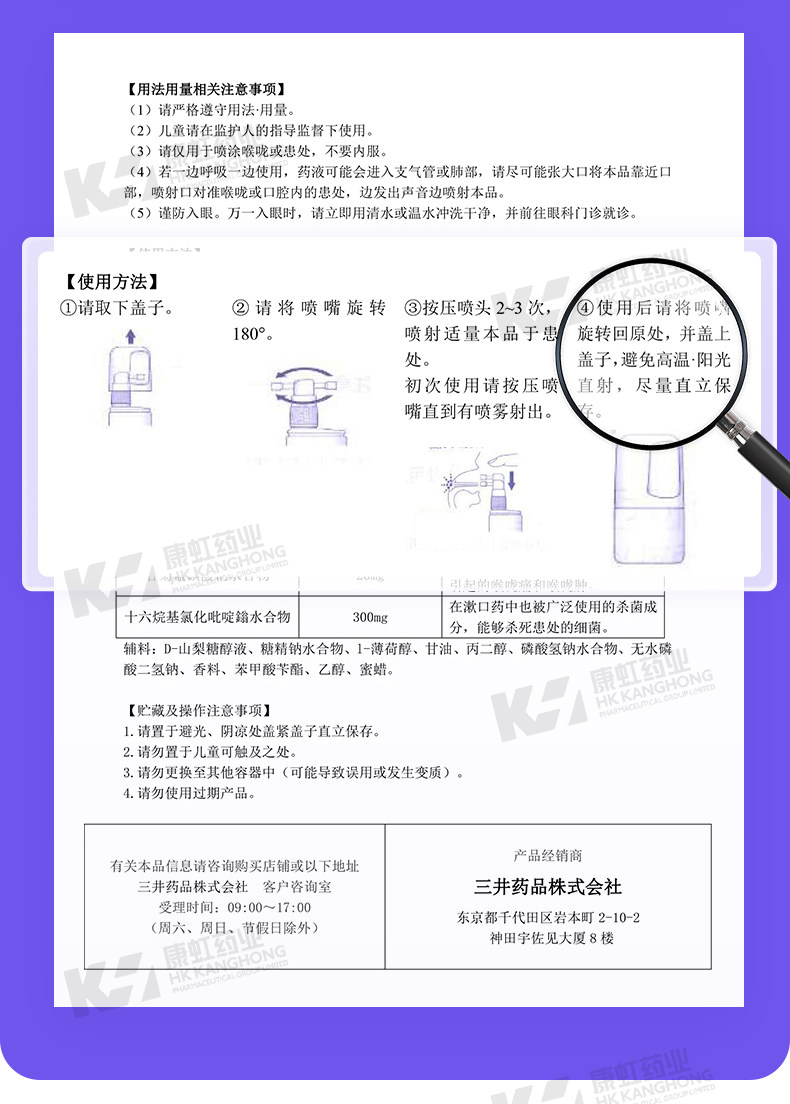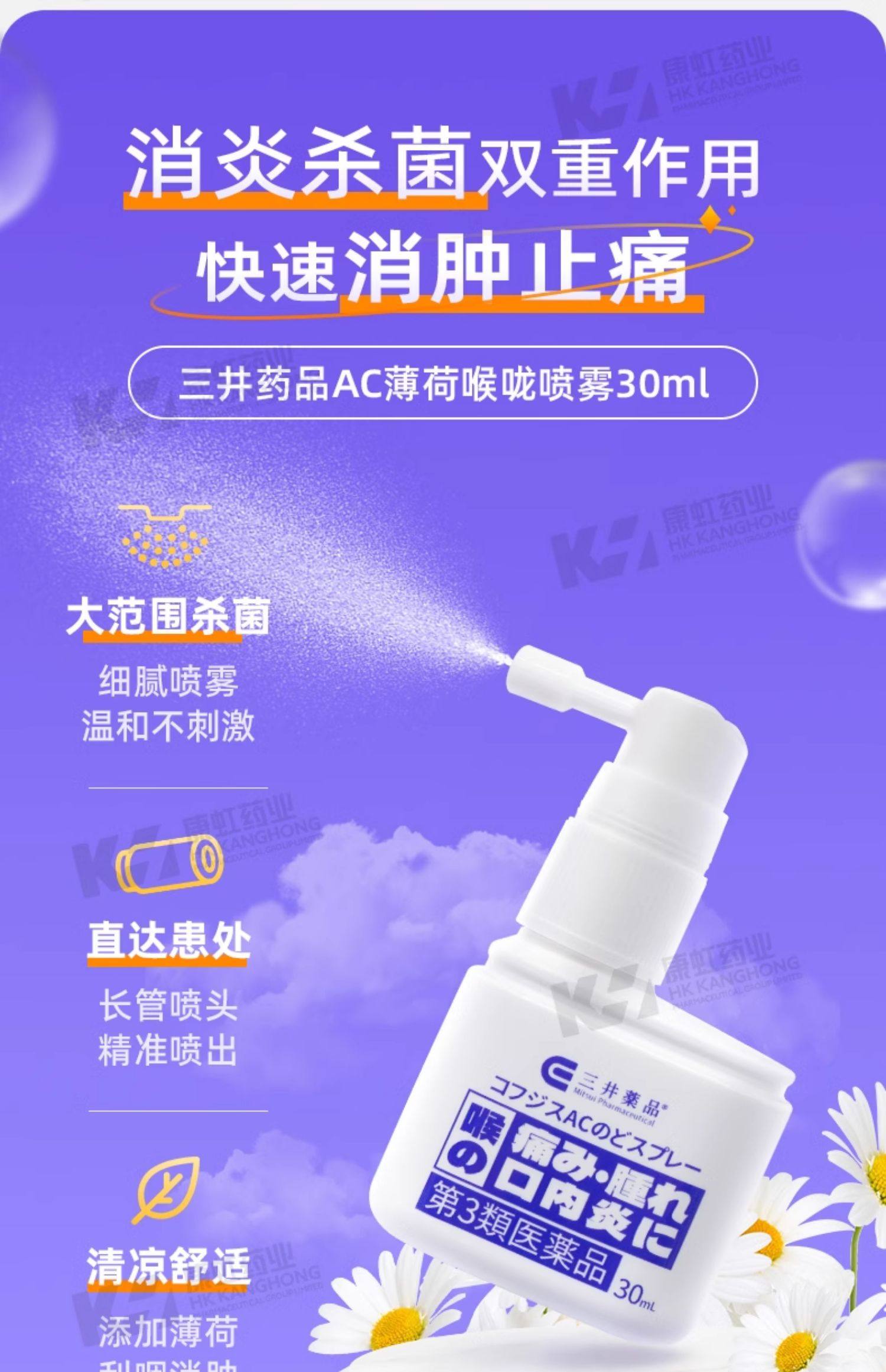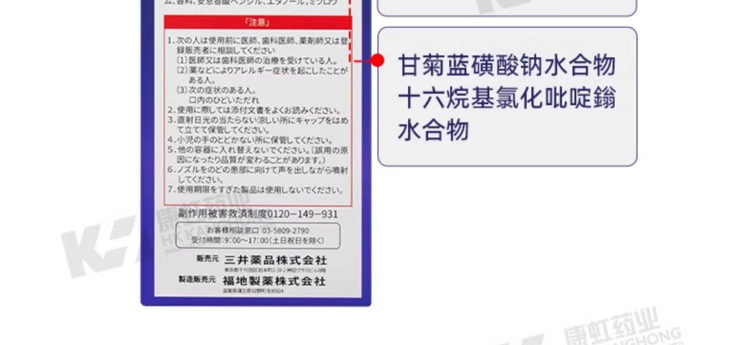 日本三井药品进口急性慢性咽喉炎喷雾口腔溃疡喉咙痛声嘶哑专用药