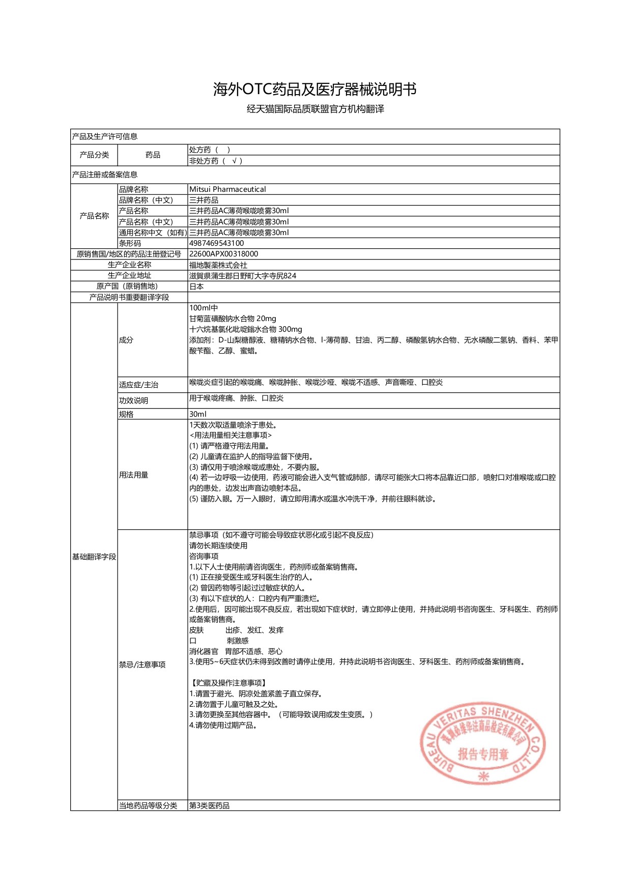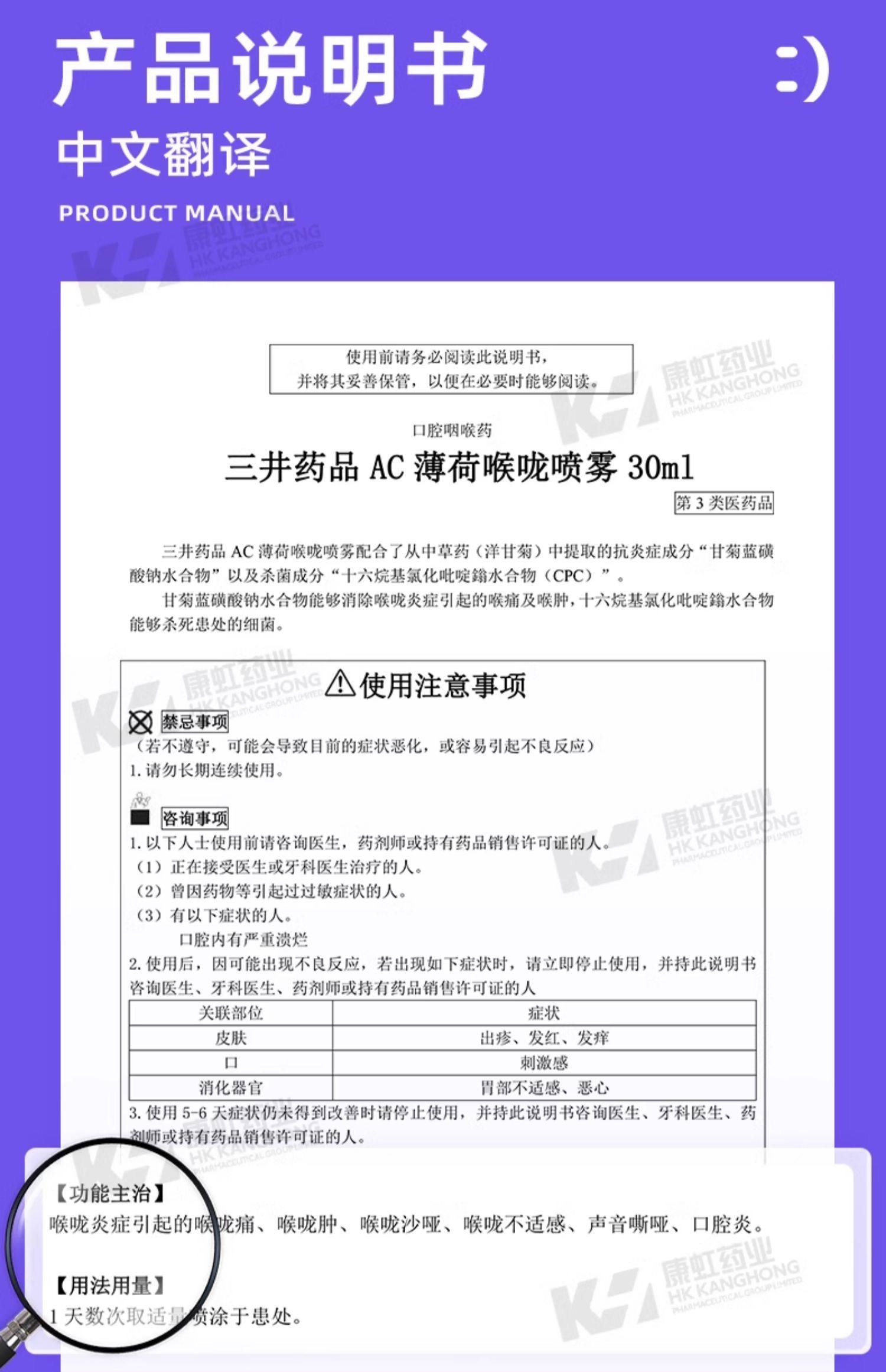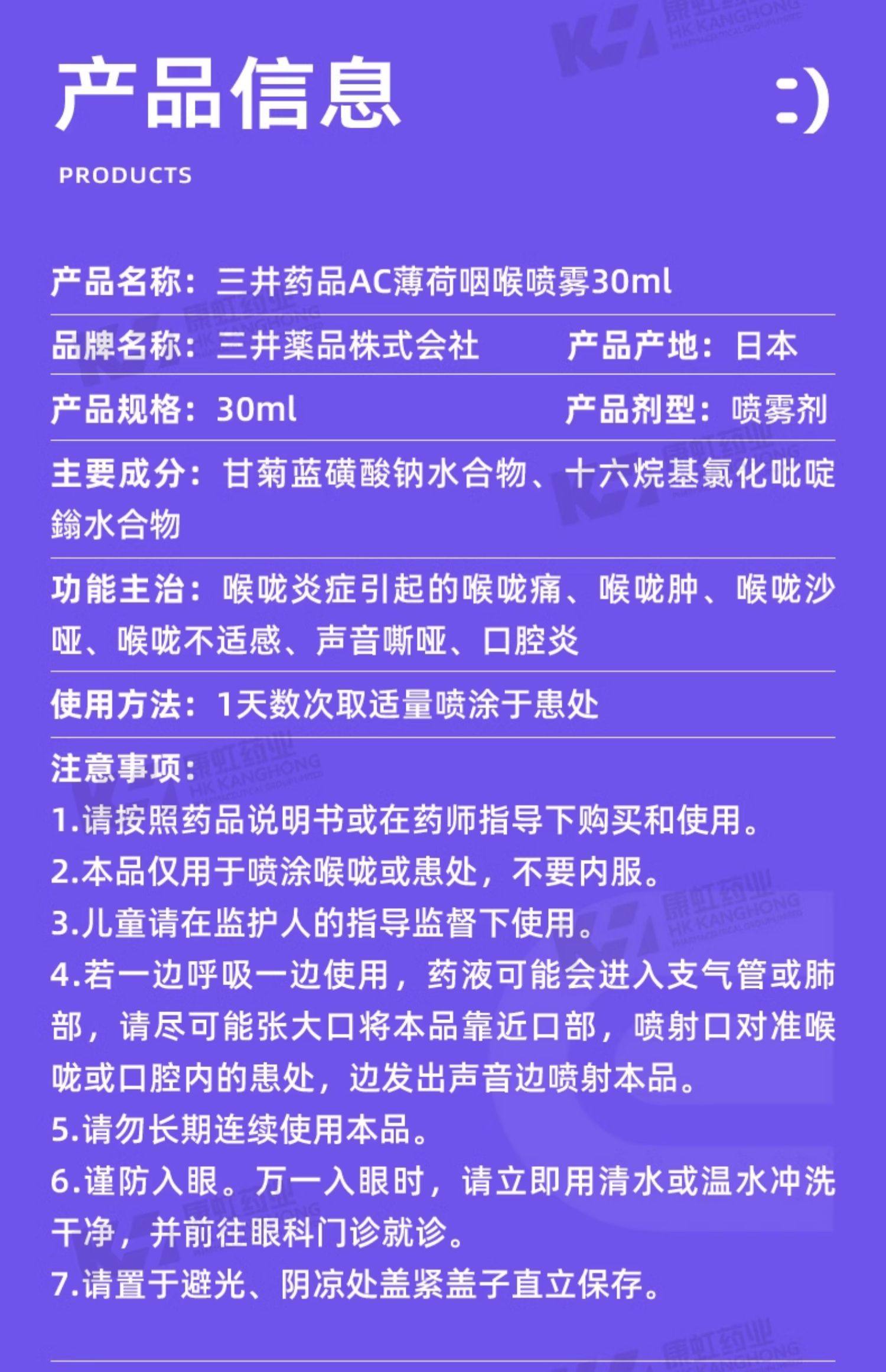 日本三井药品进口急性慢性咽喉炎喷雾口腔溃疡喉咙痛声嘶哑专用药