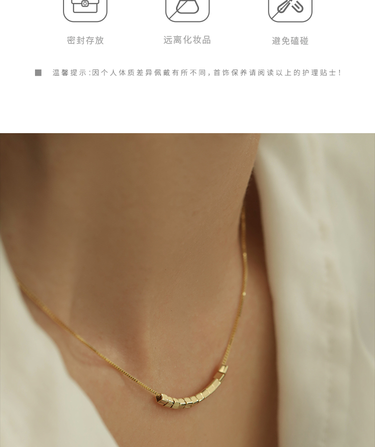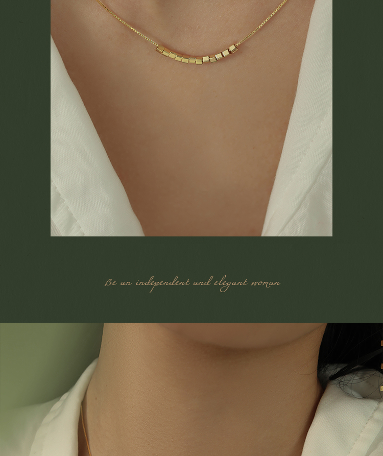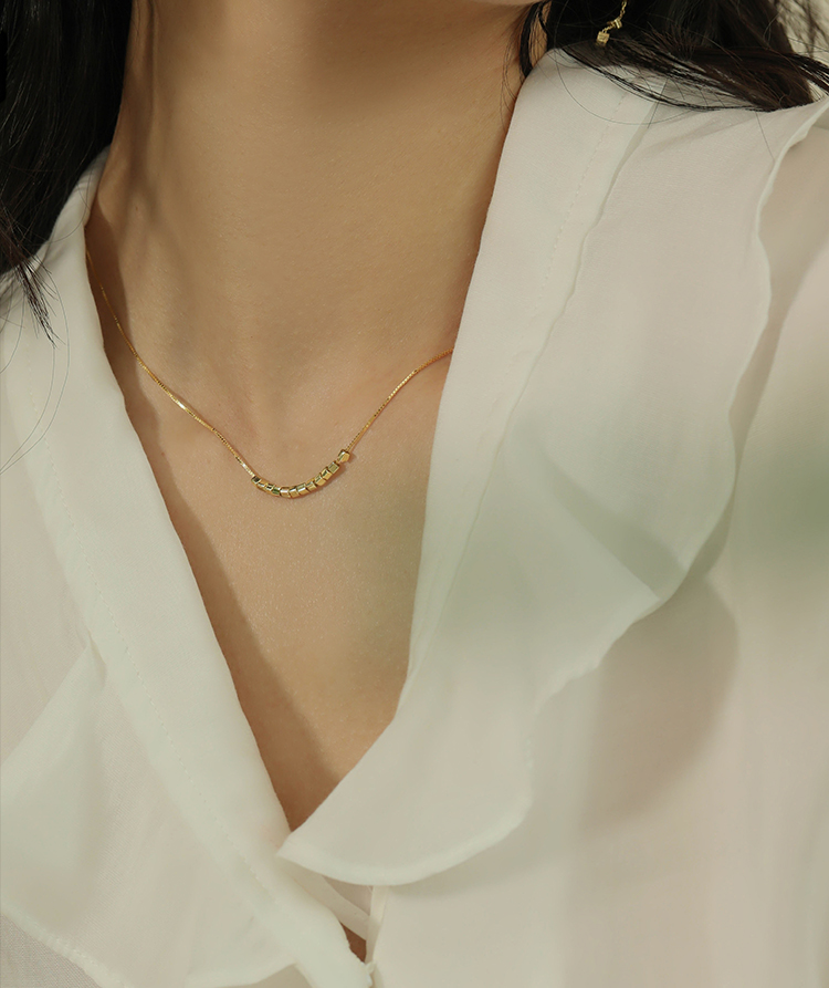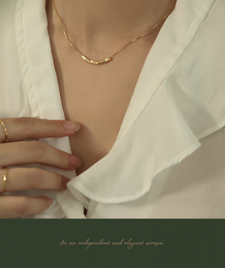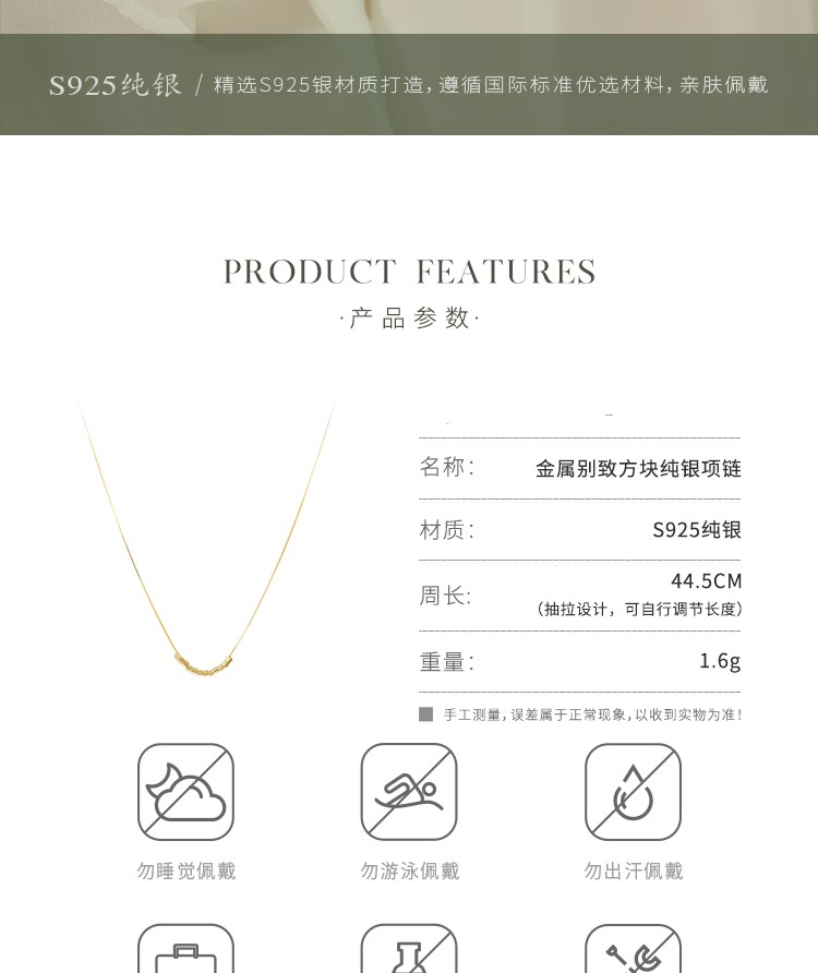 Oflye潮流饰品 925通体银小方糖项链女夏简约轻奢小众设计感锁骨链复古颈链