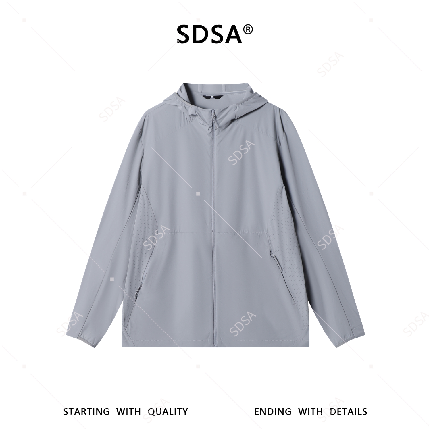 SDSA男装2026新款高贵轻奢简约纯色拉链立领连帽夹克弹力风壳衣